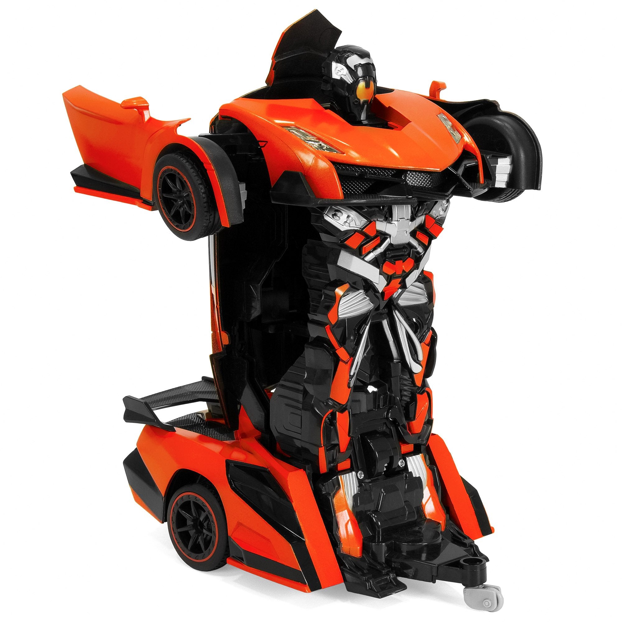 • ONE-BUTTON TRANSFORMATION: 2-in-1 RC toy gives kids the best of both worlds; simply press and hold a button to switch from a slick sports car to a powerful robot in just seconds!