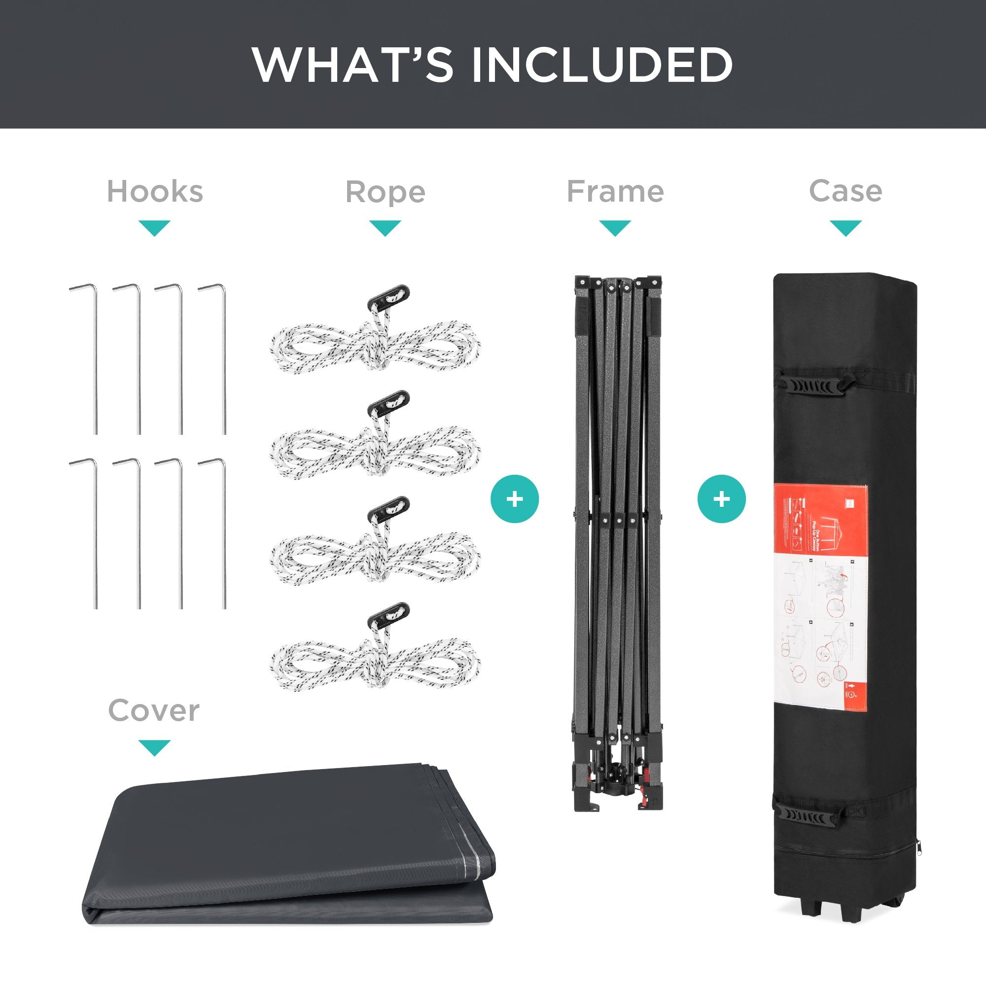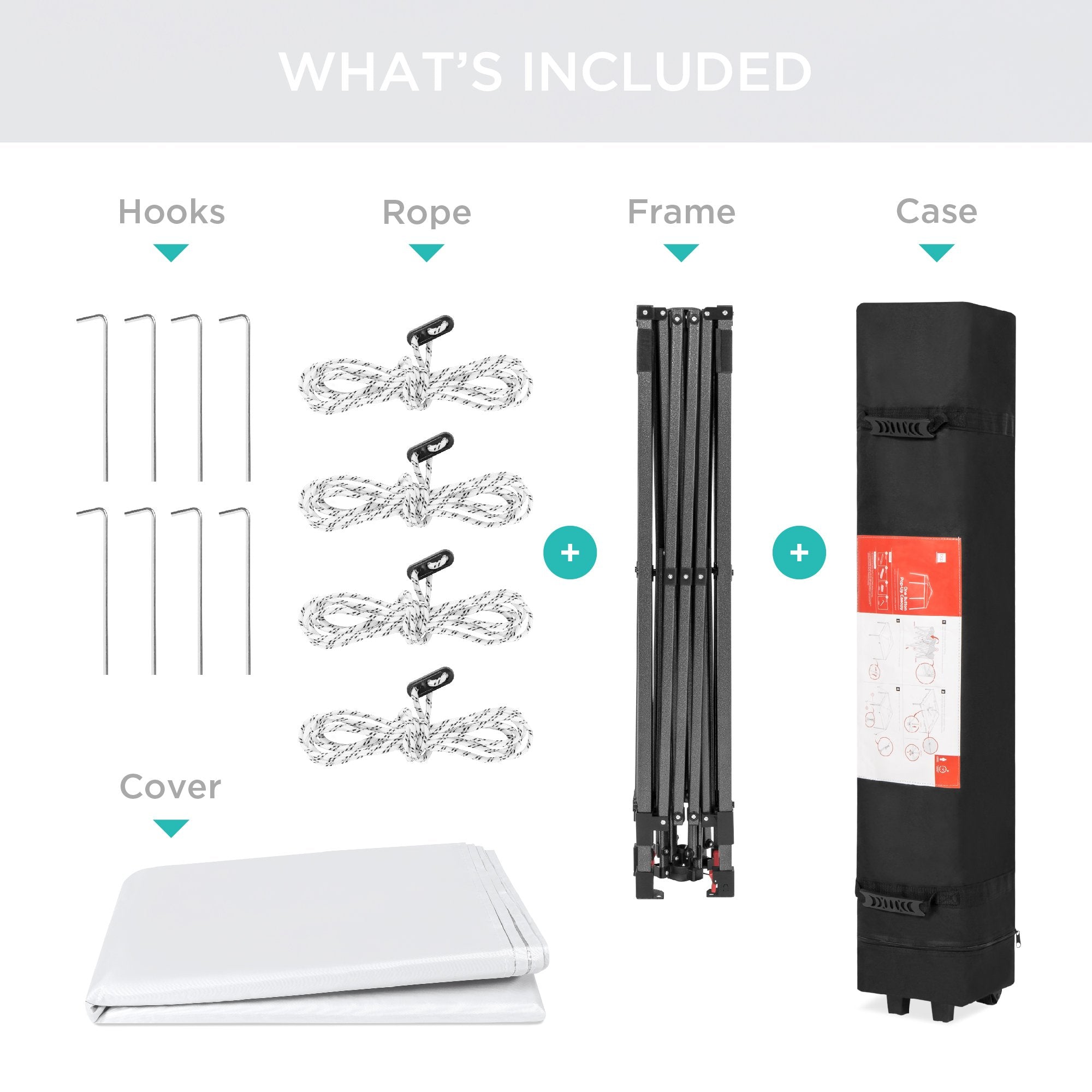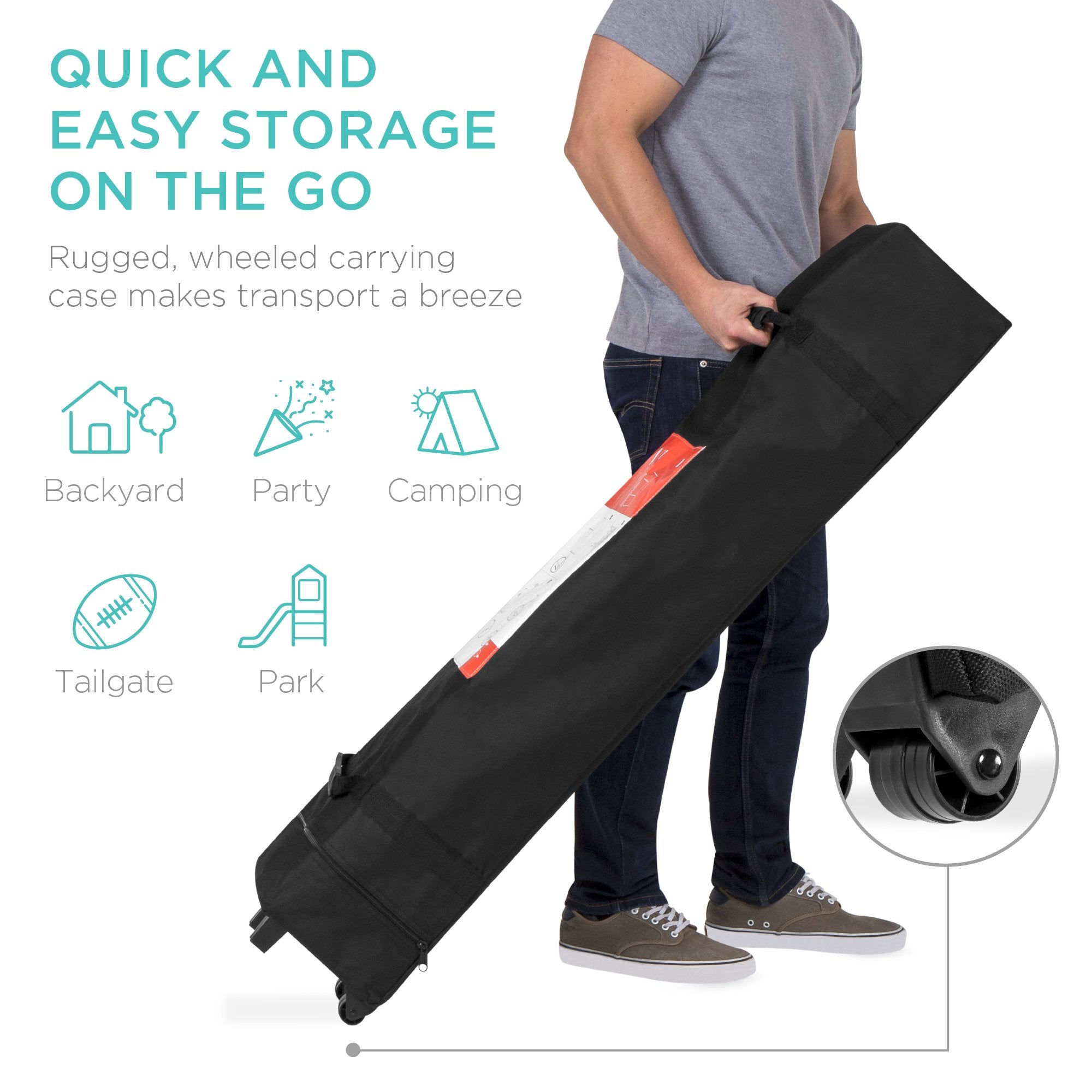PREMIUM ROLLING STORAGE CASE: Compact your canopy with a few clicks of the button and slide it into the zip-up carrying case! Features a set of wheels and a rugged handle to move from party to party