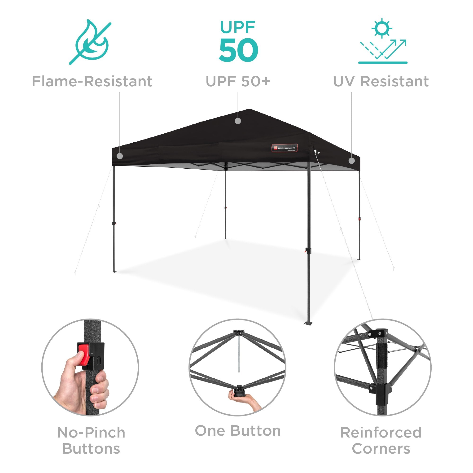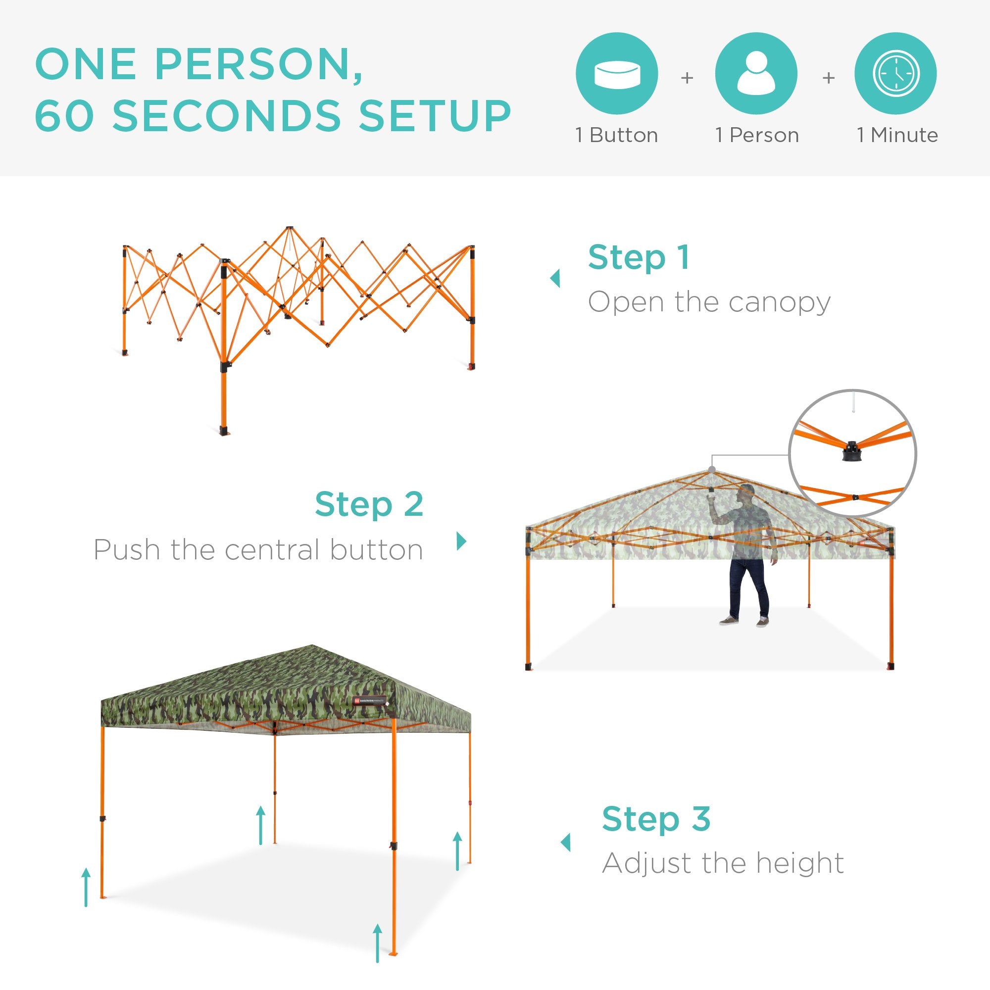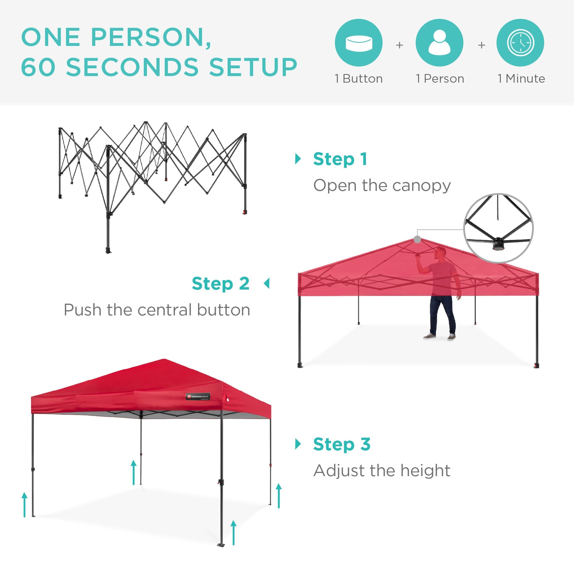 ONE PERSON SETUP: Designed with one central button and no-pinch height adjusters to allow easy, one-person setup and breakdown; just open the canopy, push the button, and adjust the height for instant shade in only a minute!