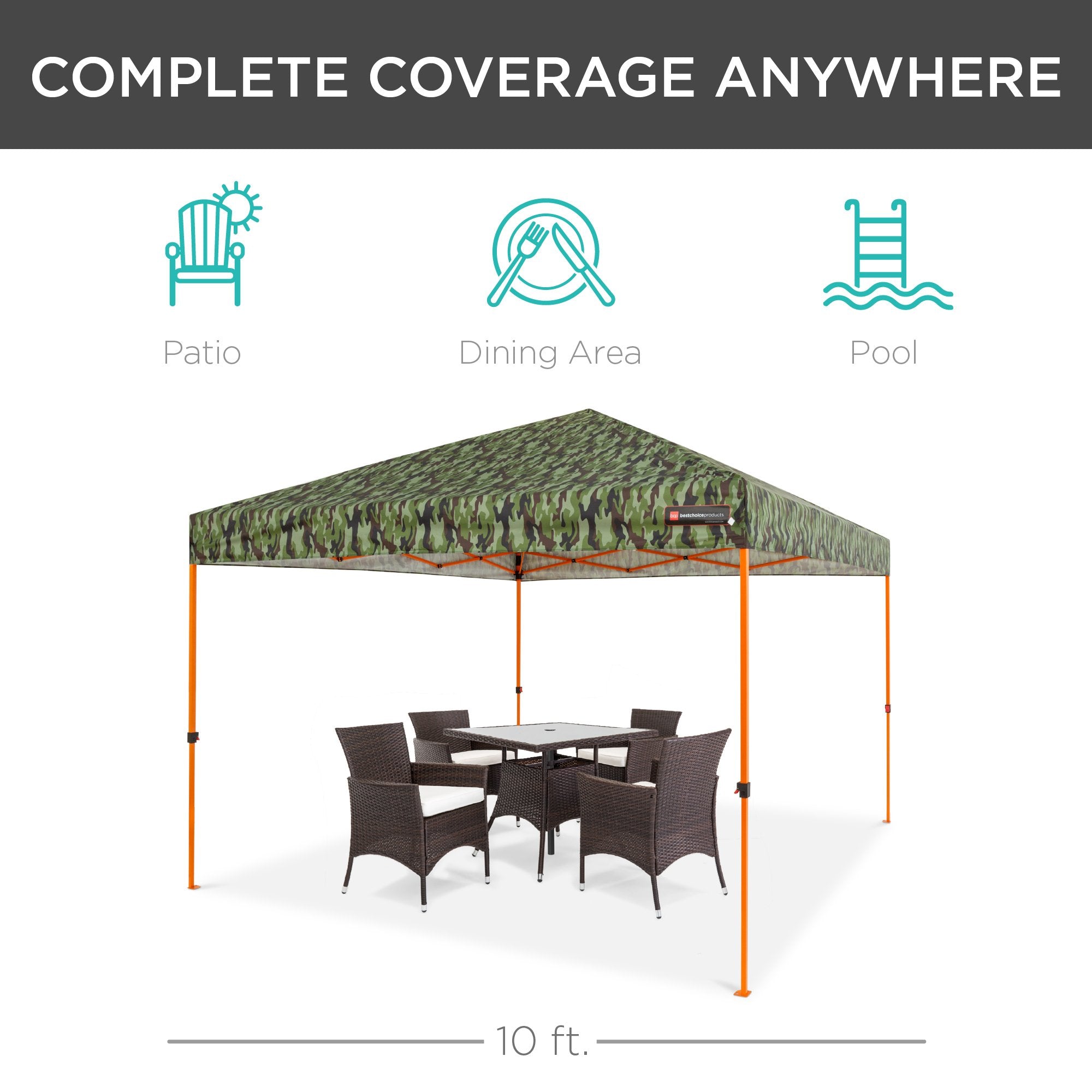 PREMIUM SHADE: Straight leg design provides 100 square feet of shade while easy adjusting sliders let you take advantage of four preset heights