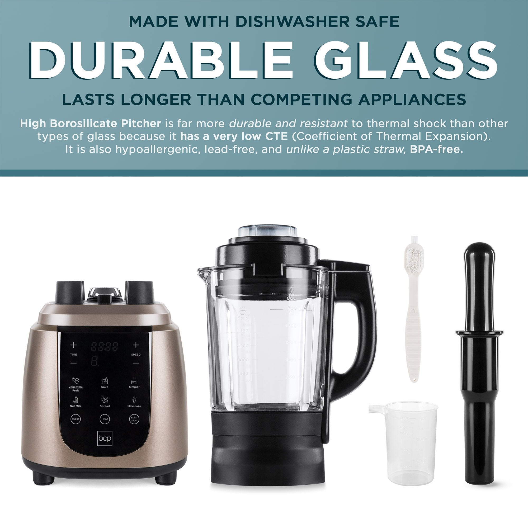 HEAT-RESISTANT GLASS PITCHER: Blender comes with a durable pitcher made of thick, FDA-grade glass, ensuring your mixed foods and beverages are free of harmful toxins normally emitted through plastic pitchers