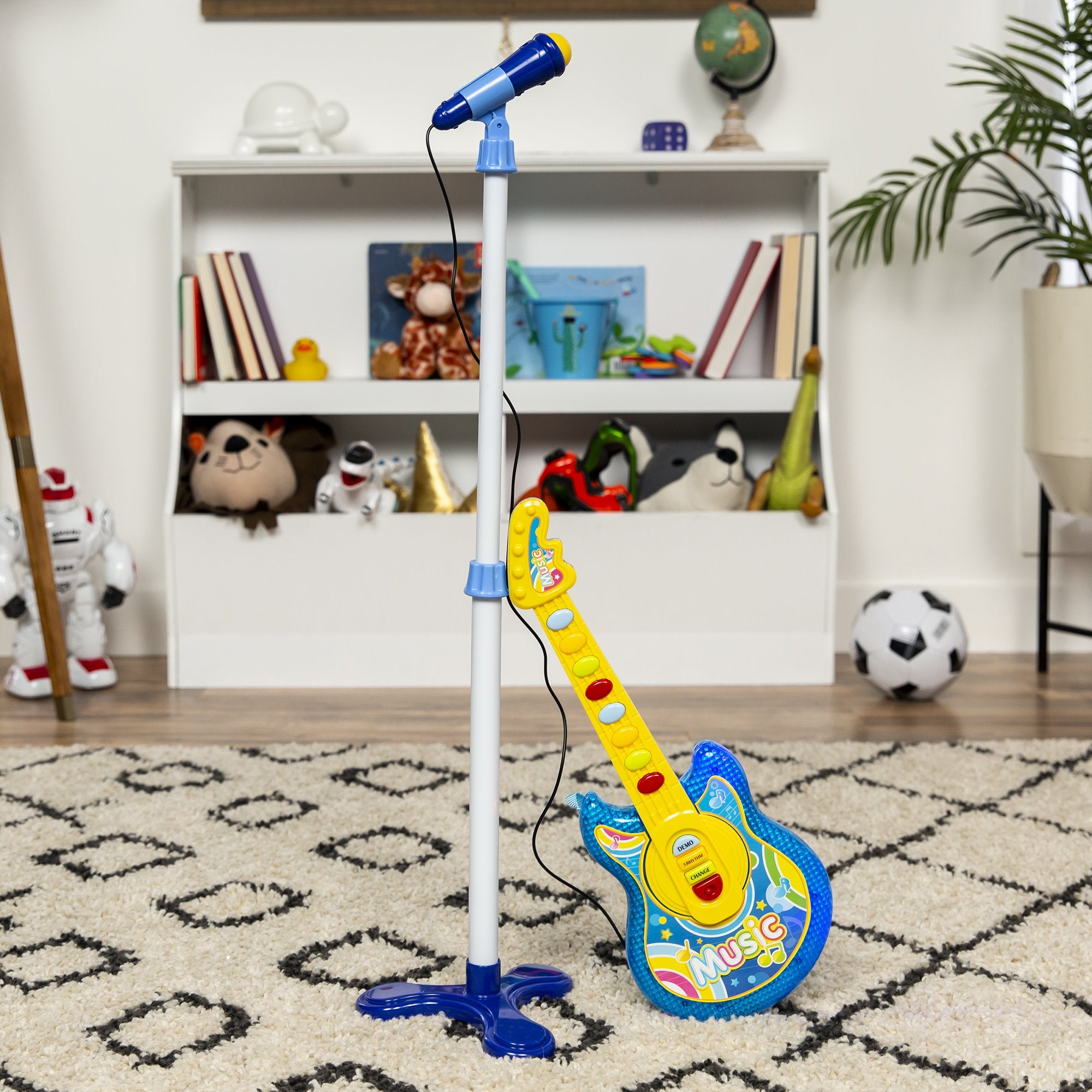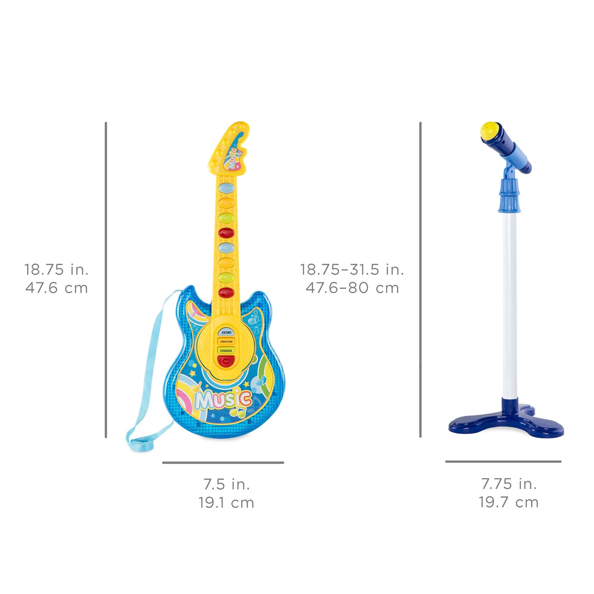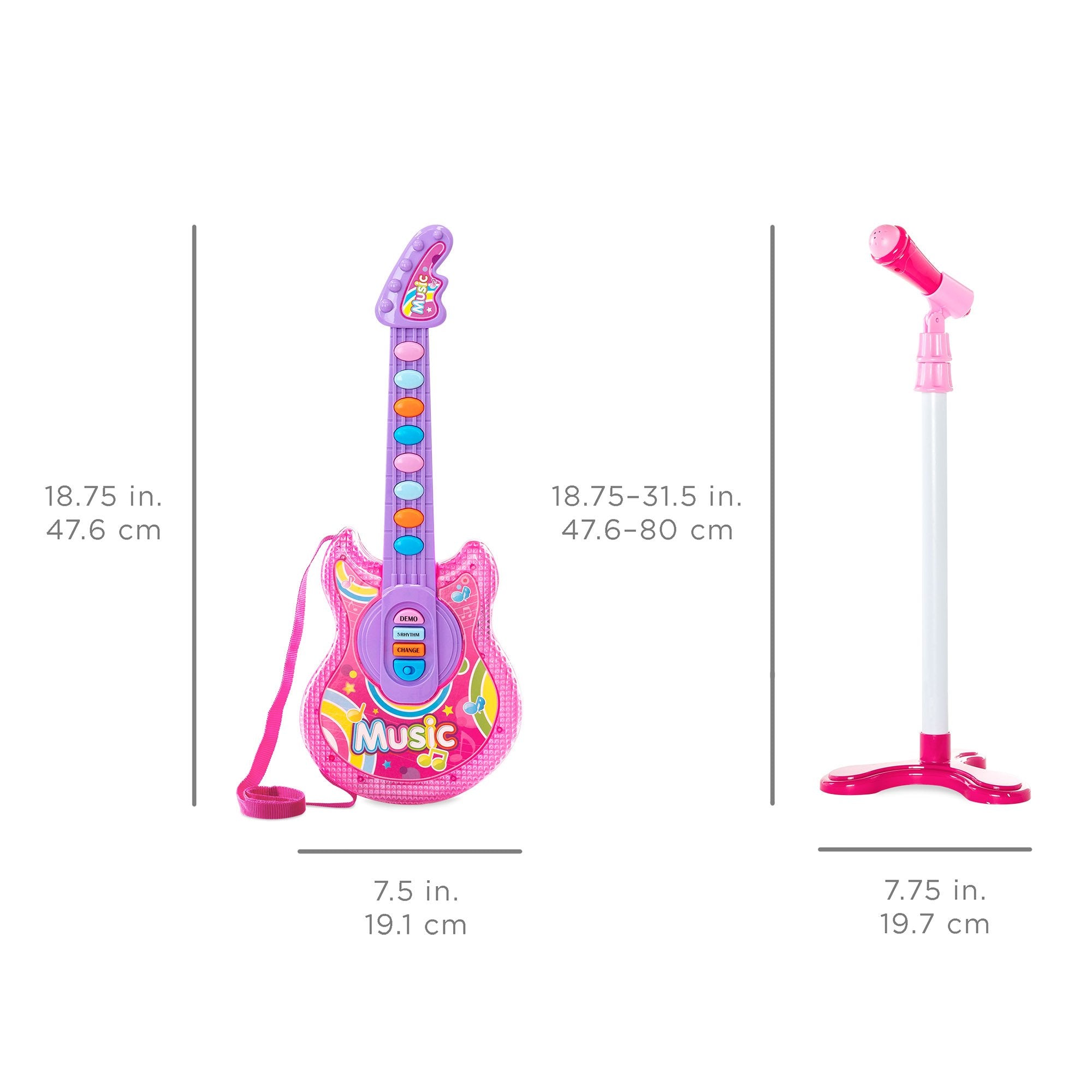 ALL-INCLUSIVE GUITAR SET: Kids electric guitar set comes complete with an easy-to-operate guitar, functioning microphone, and adjustable mic stand to let them keep jammin' as they grow