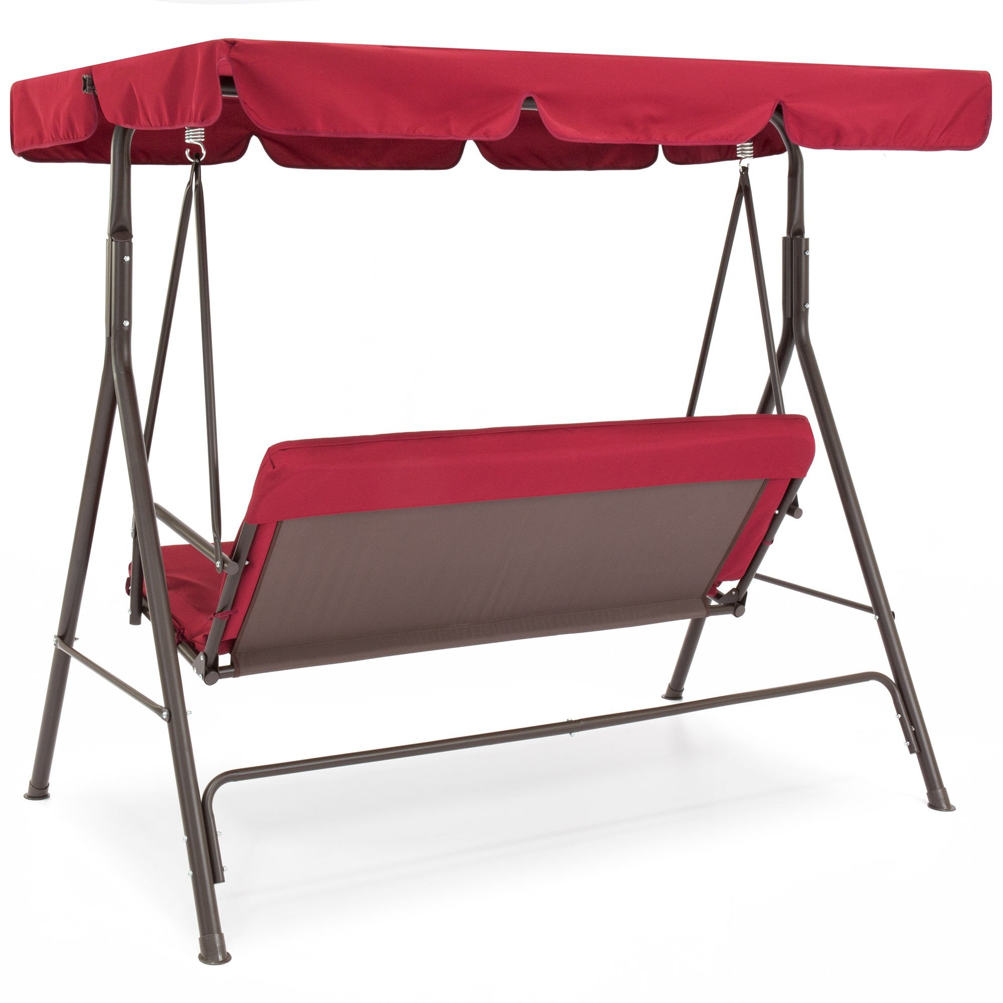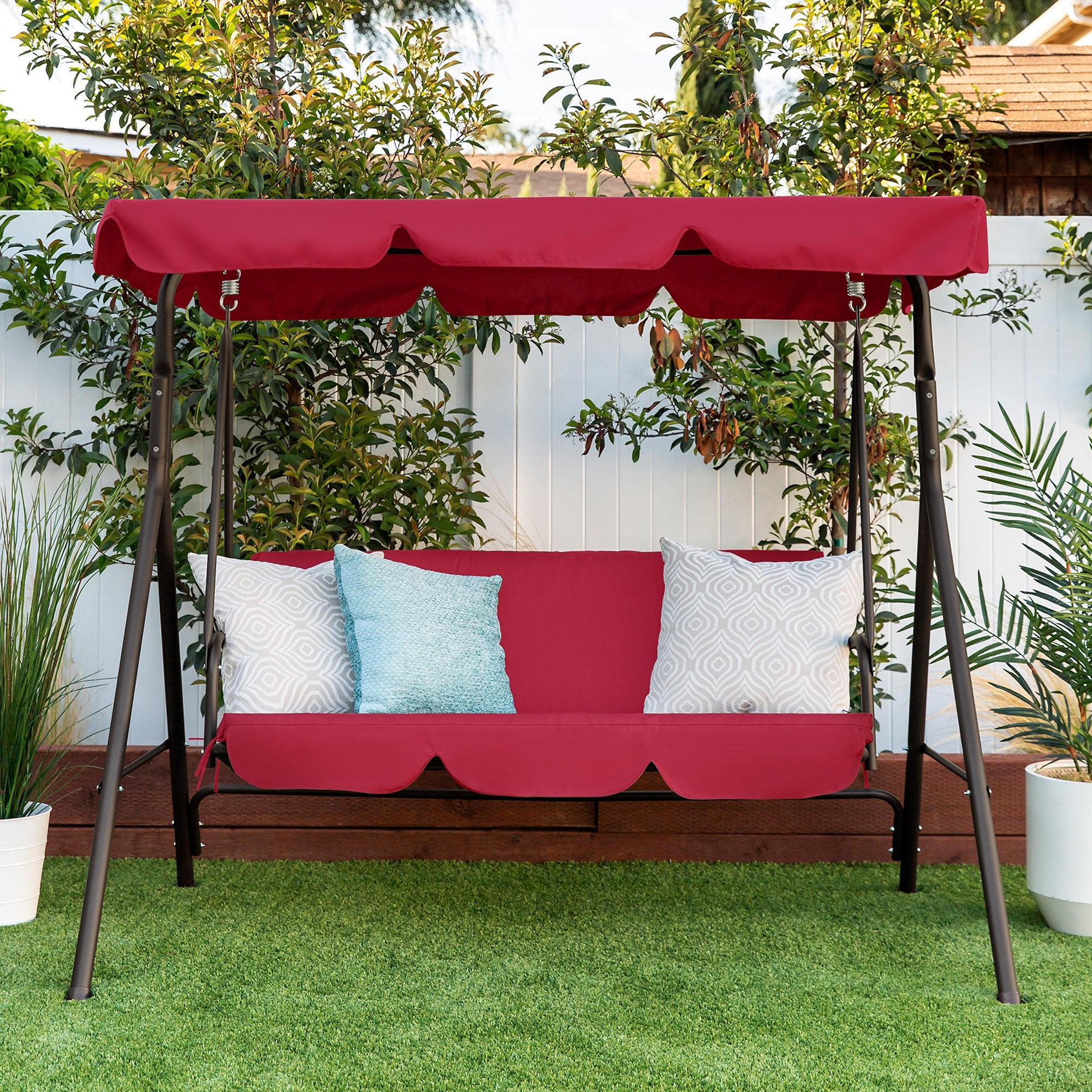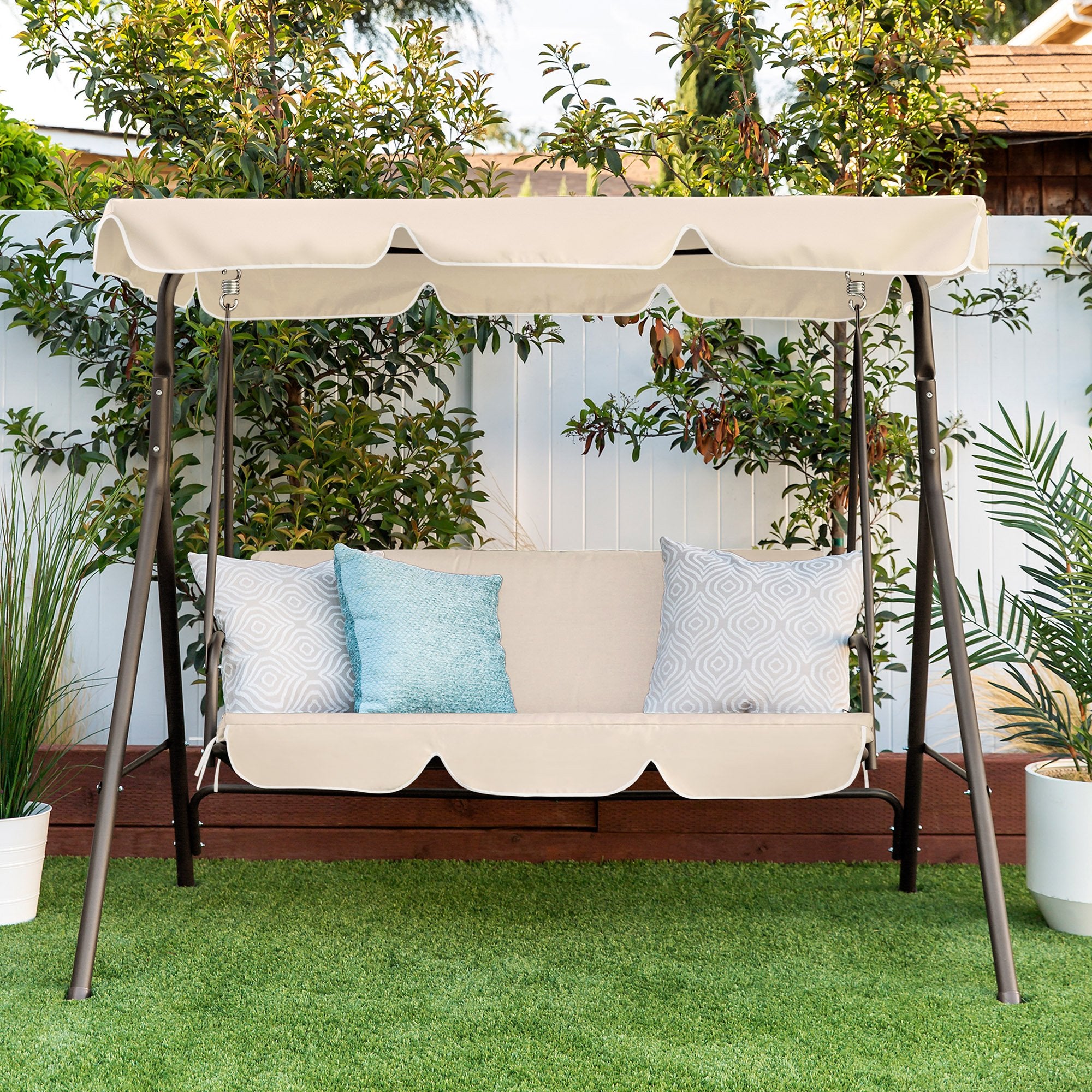 2-Person Outdoor Canopy Swing Glider Furniture w/ Cushions, Steel Frame