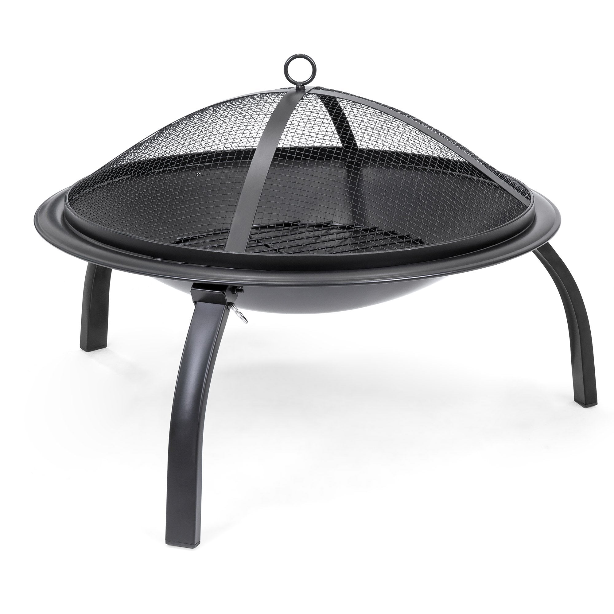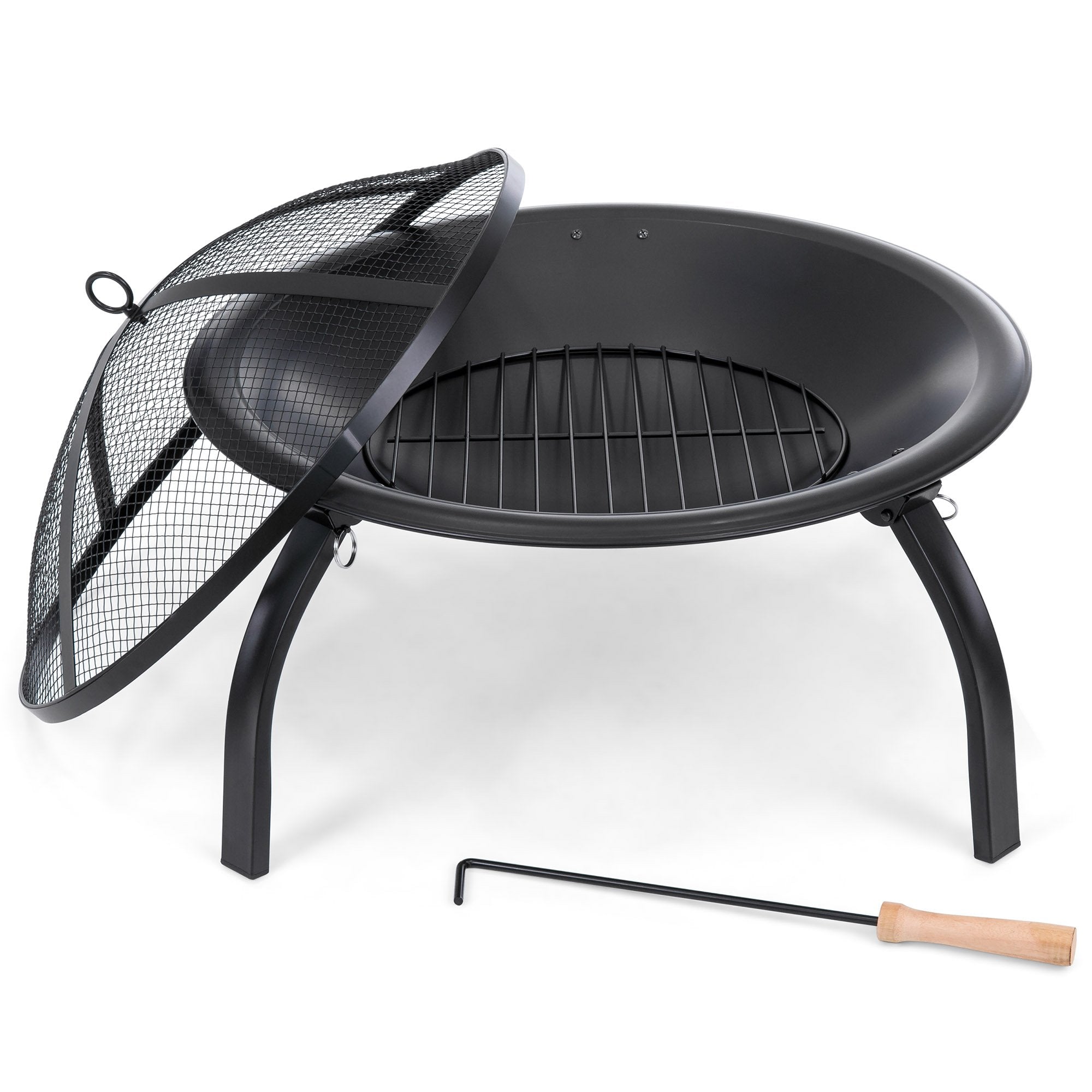 22in Folding Steel Fire Pit Bowl w/ Mesh Cover, Poker