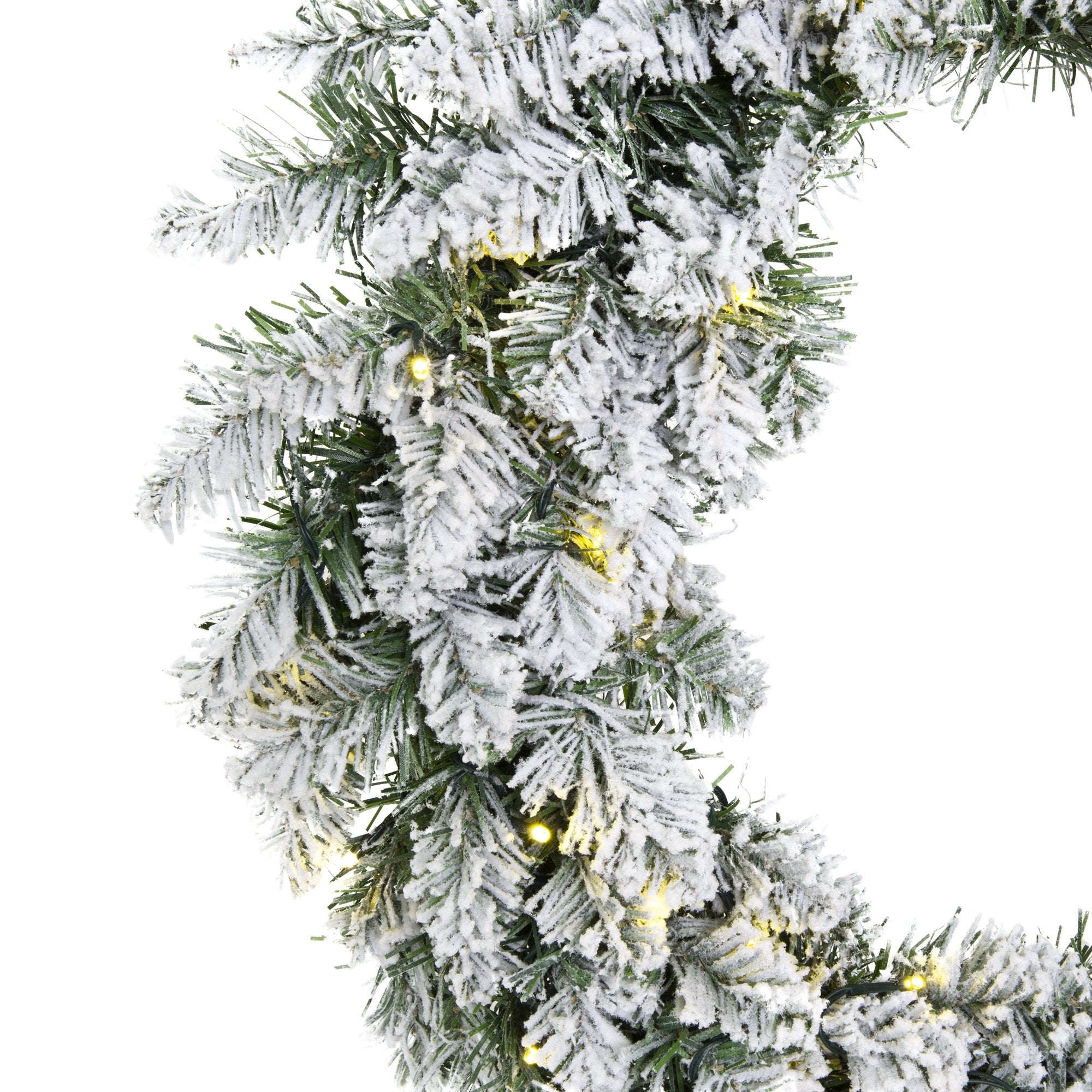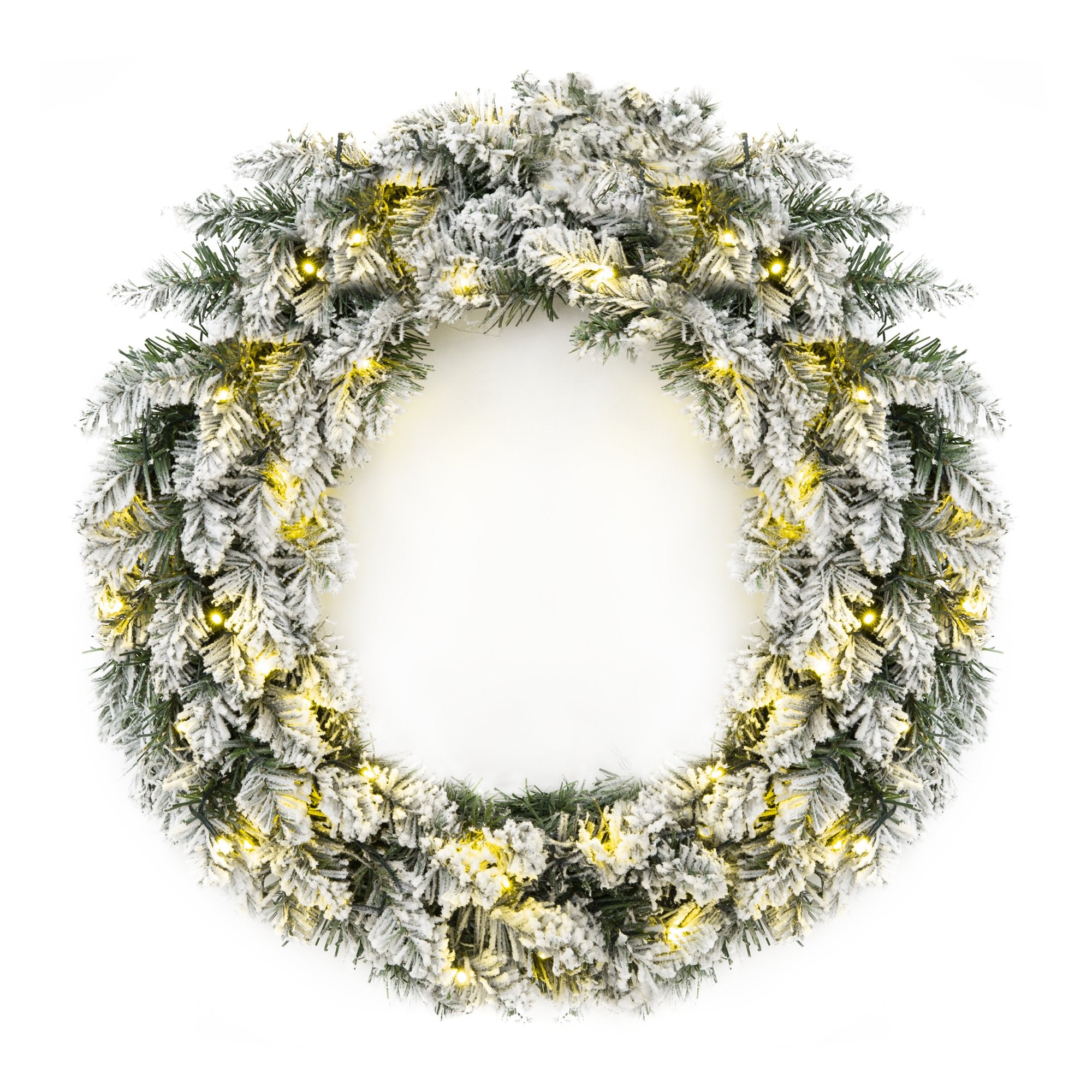 24in Pre-Lit Artificial Flocked Christmas Pine Wreath w/ 50 White LED Lights
