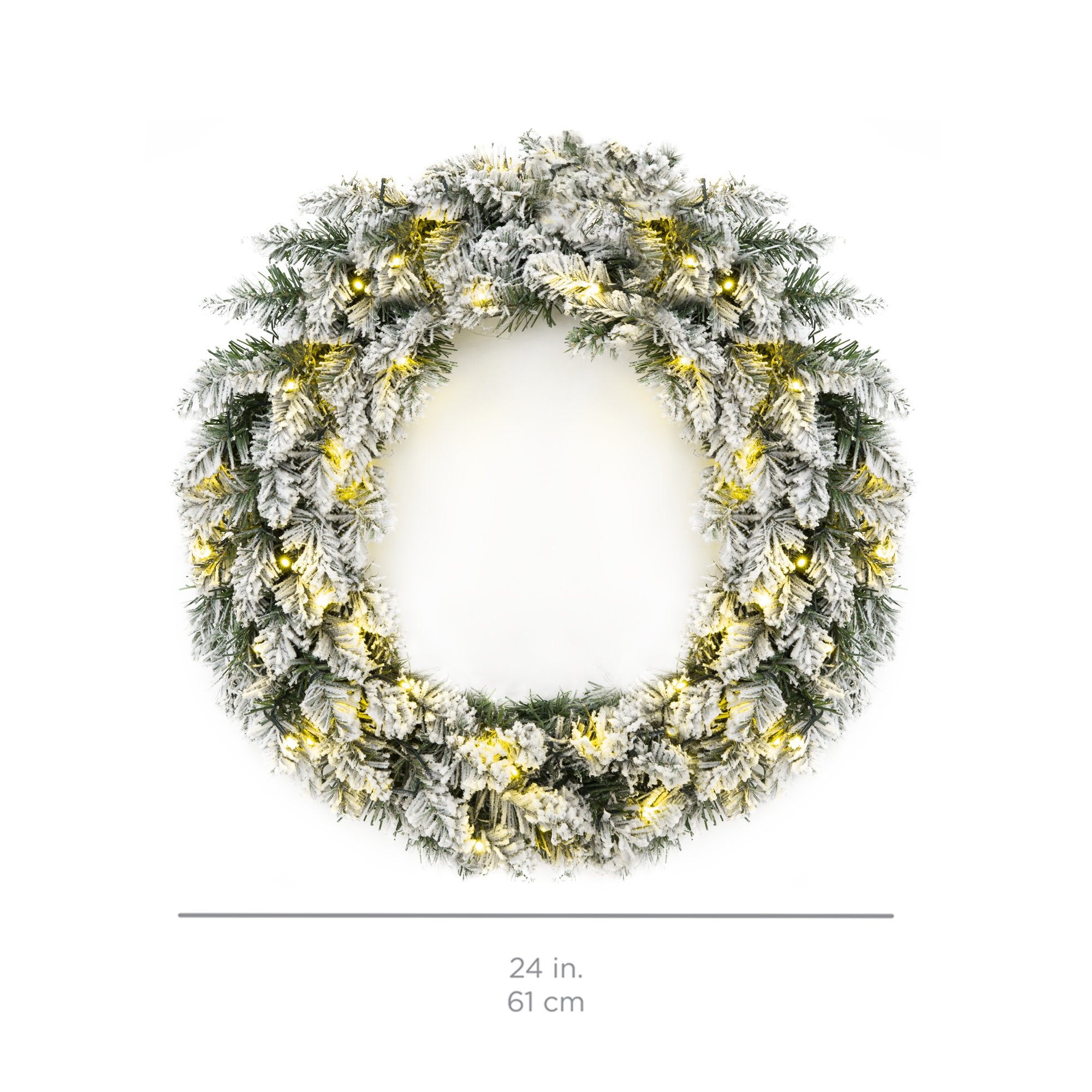 • FESTIVE HOLIDAY DECOR: 24-inch artificial pine wreath is the perfect option for Christmas decor, crafted with flocked leaves and pre-lit with 50 clear LED lights