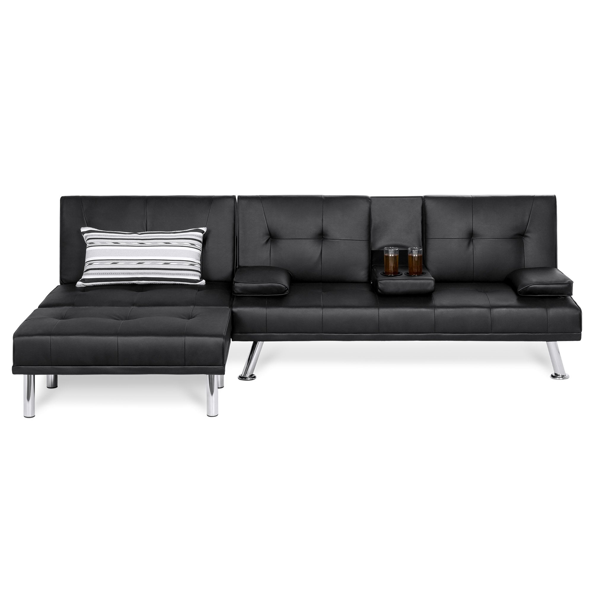 PERFECT FOR GUESTS AND ENTERTAINMENT: The 2-person futon has cupholders and armrests for family movie nights, and it transforms into a guest bed by fully reclining the back and removing the armrest
