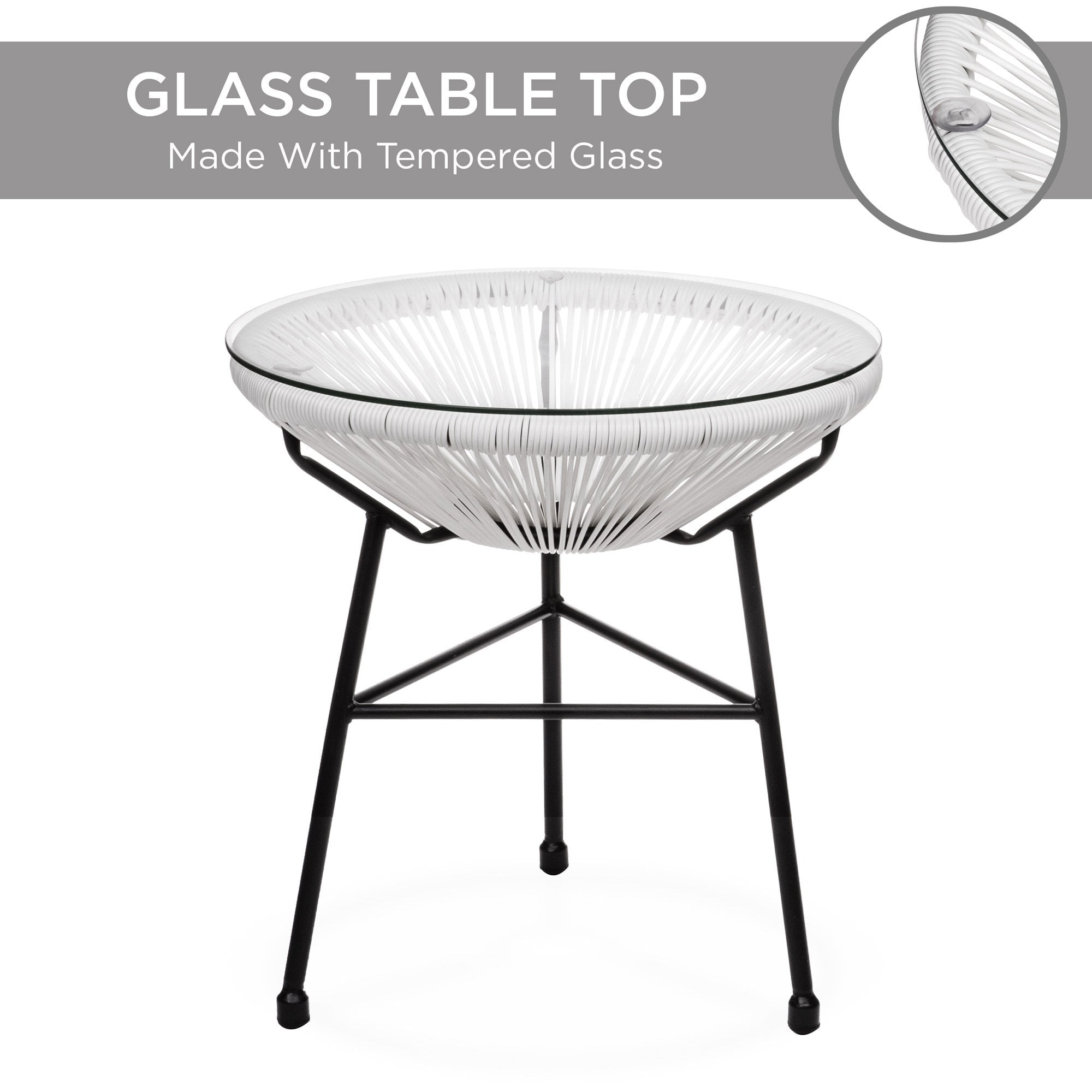 3-Piece All-Weather Patio Acapulco Bistro Set w/ Rope, Glass Top Table