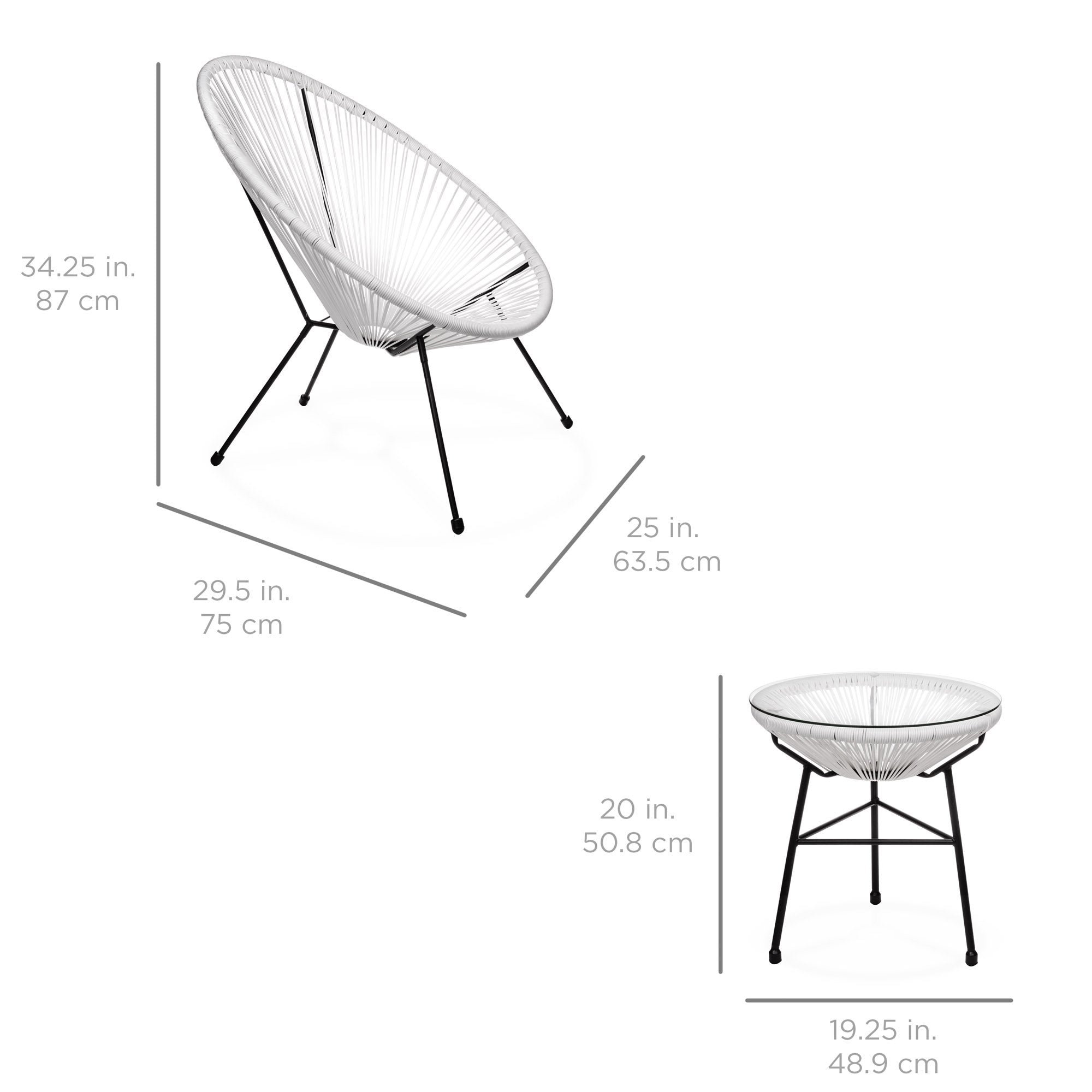 3-PIECE OUTDOOR ACAPULCO SET: 2 comfortable armchairs for you to enjoy lounging with a loved one, as well as a round accent table with a tempered glass top to place decor, snacks, and beverages