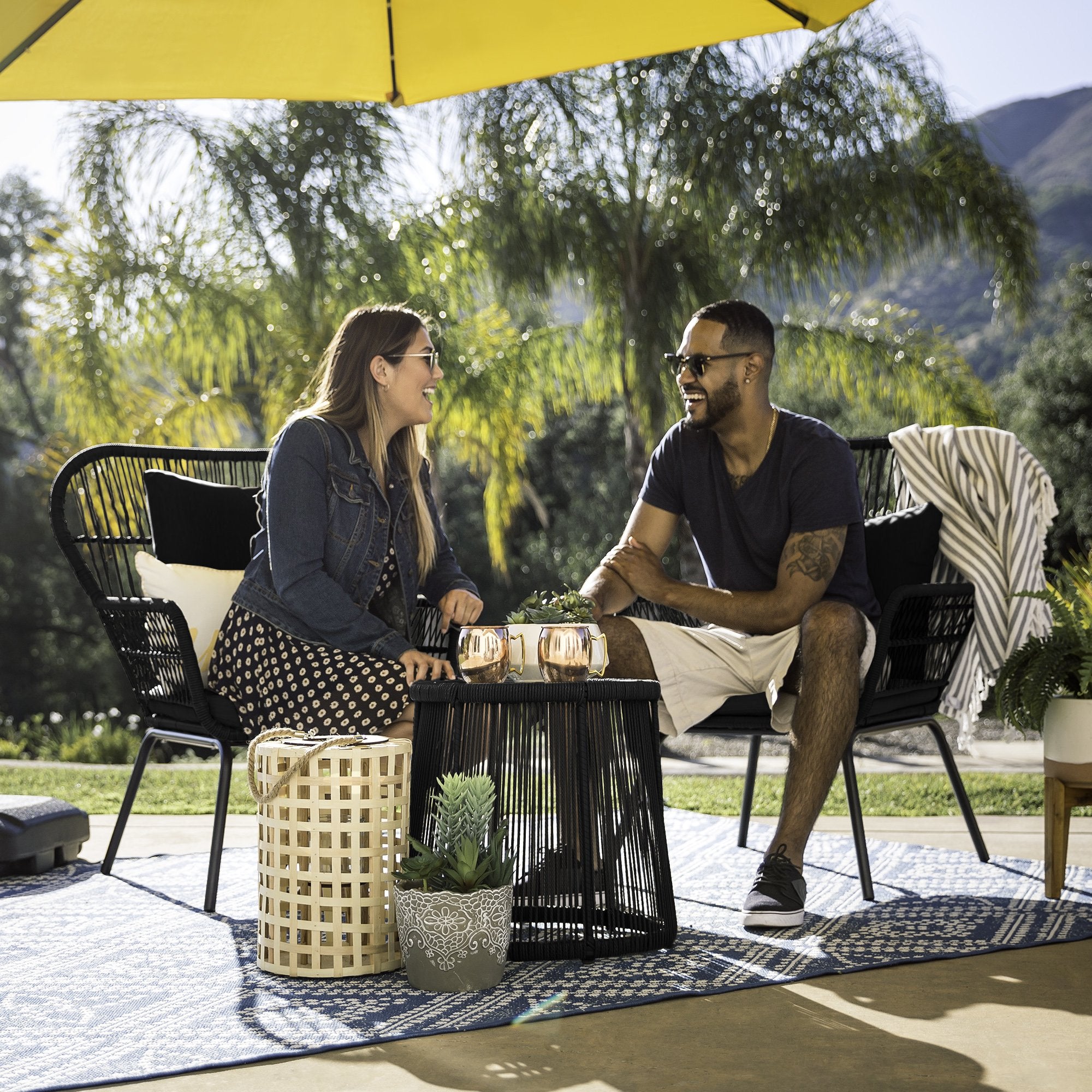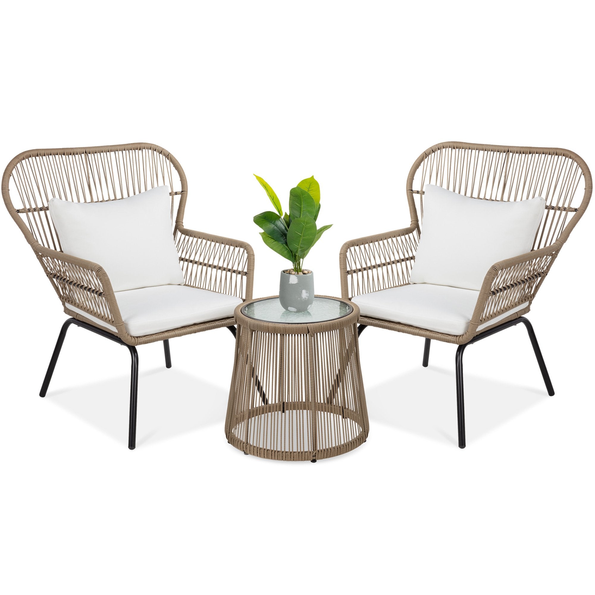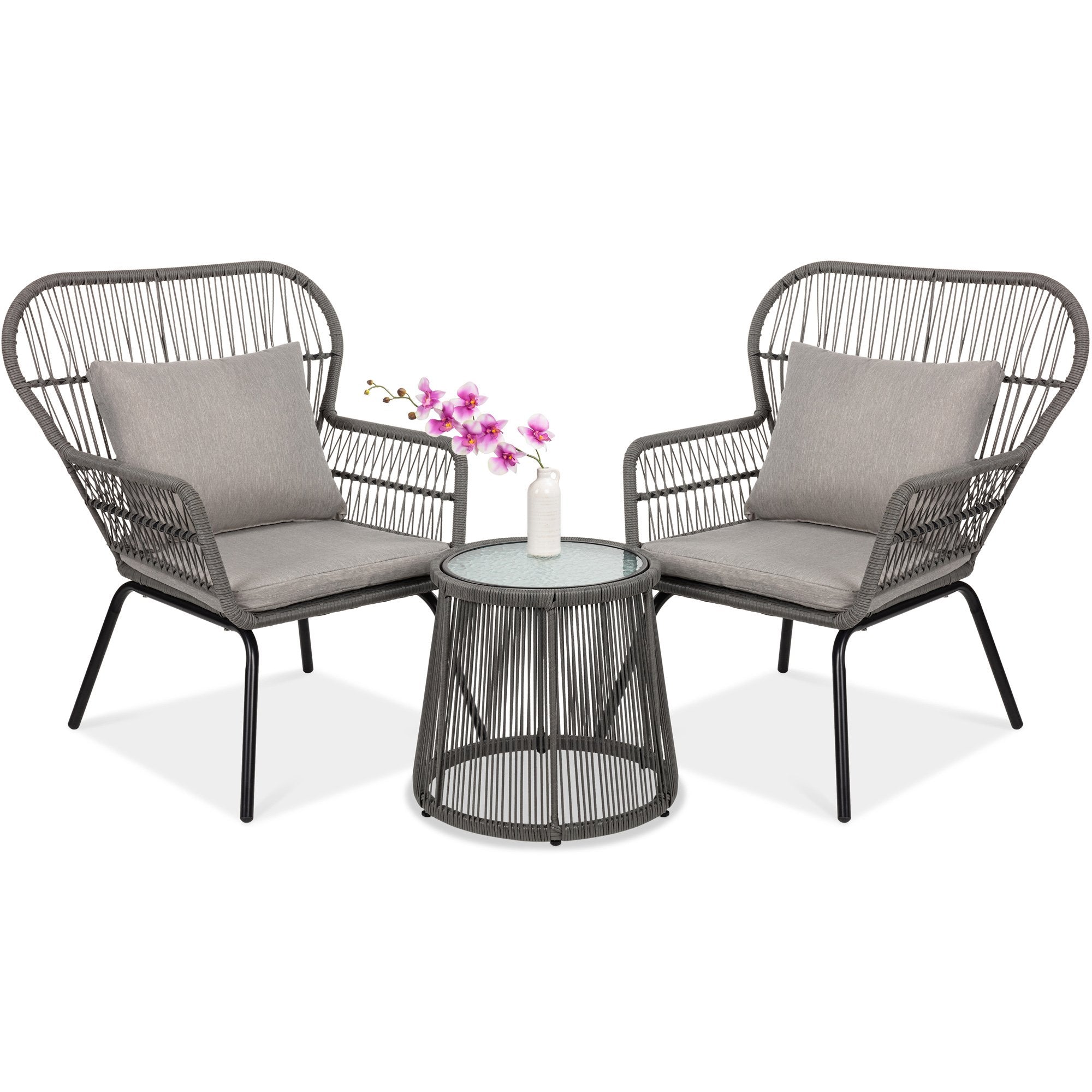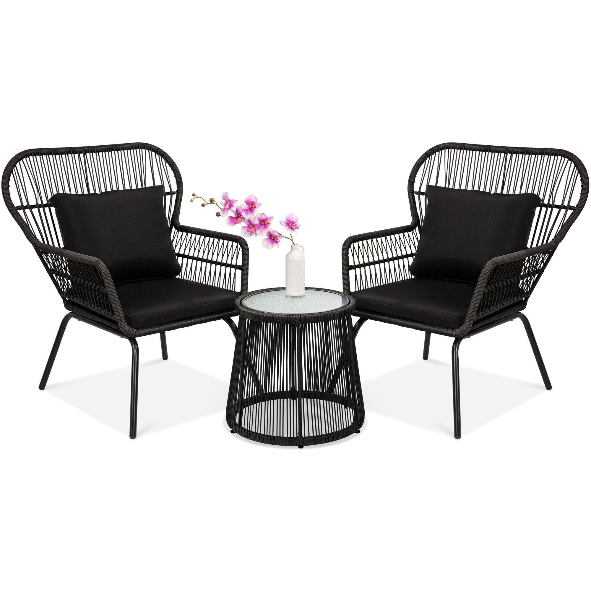 3-PIECE BISTRO SET: This outdoor set is composed of 2 armchairs and a circular accent table to place small decor, snacks, and beverages