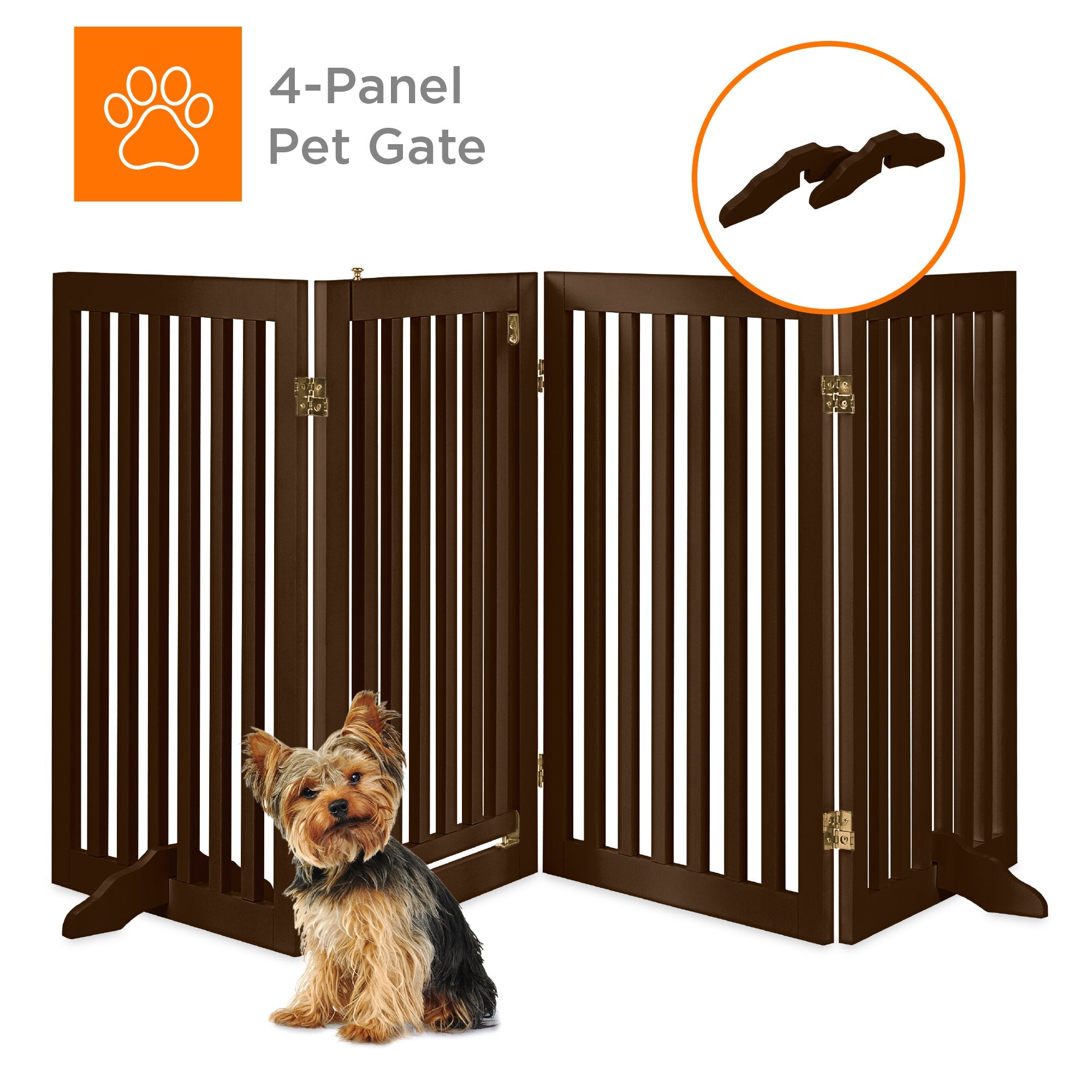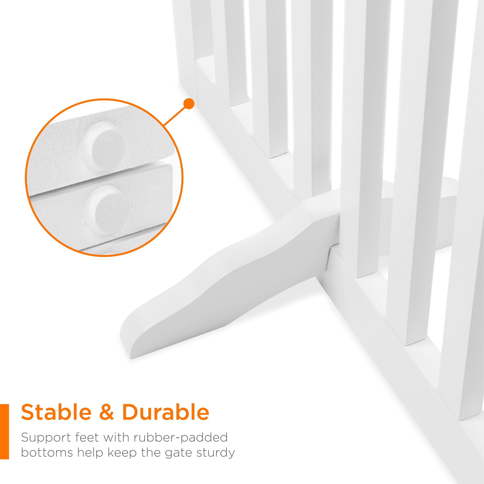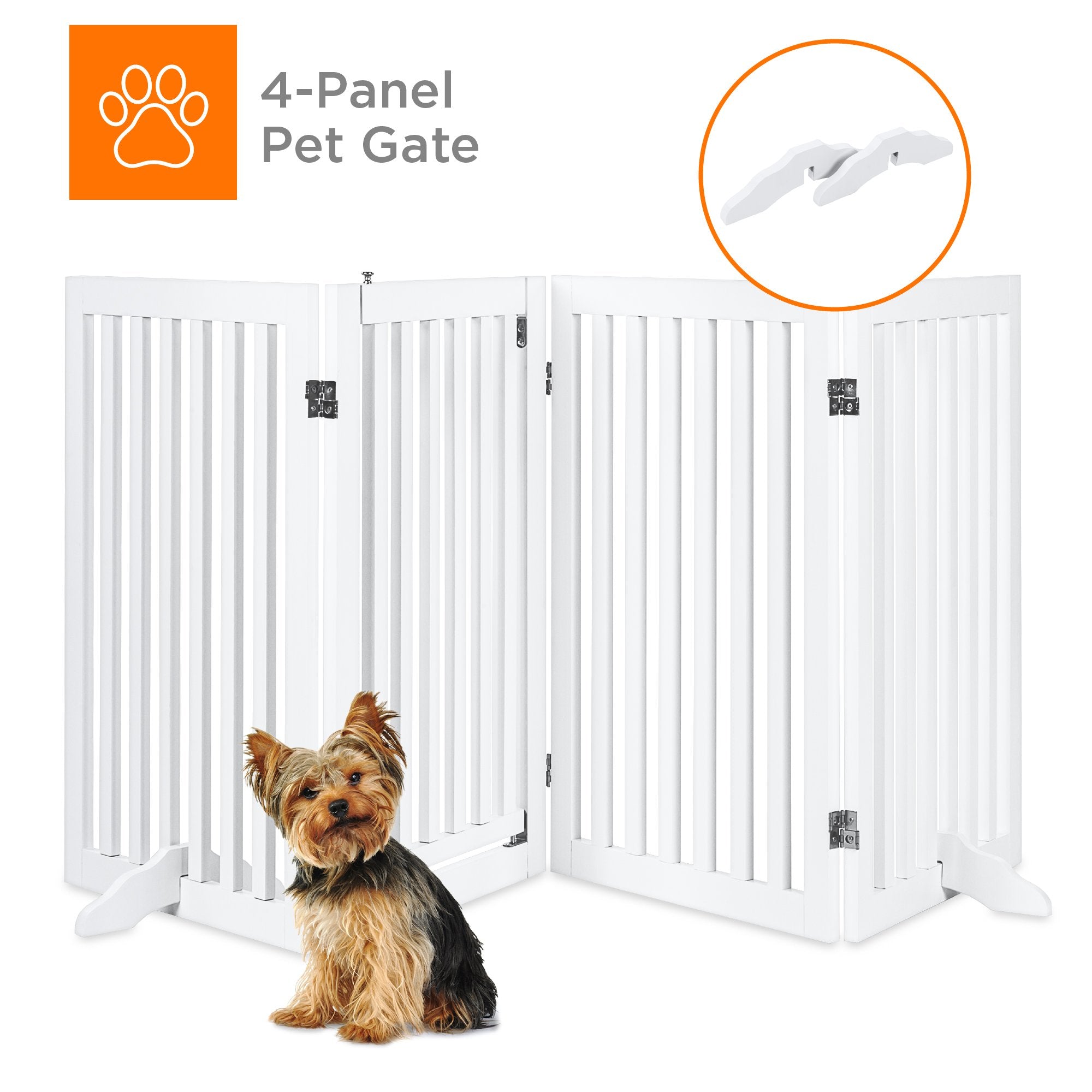 31.5in 4-Panel Freestanding Wooden Pet Gate w/ Door, Support Feet