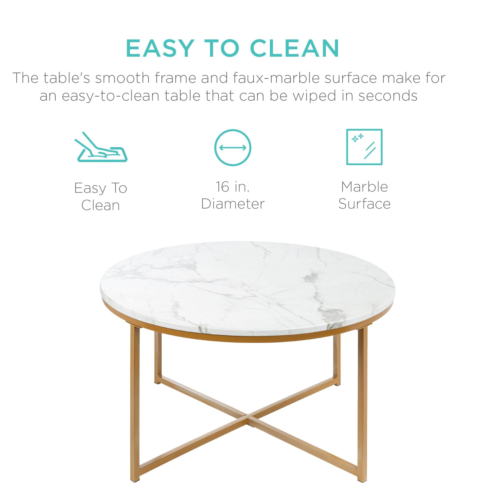 Round Coffee Table w/ Faux Marble Top, Metal Frame