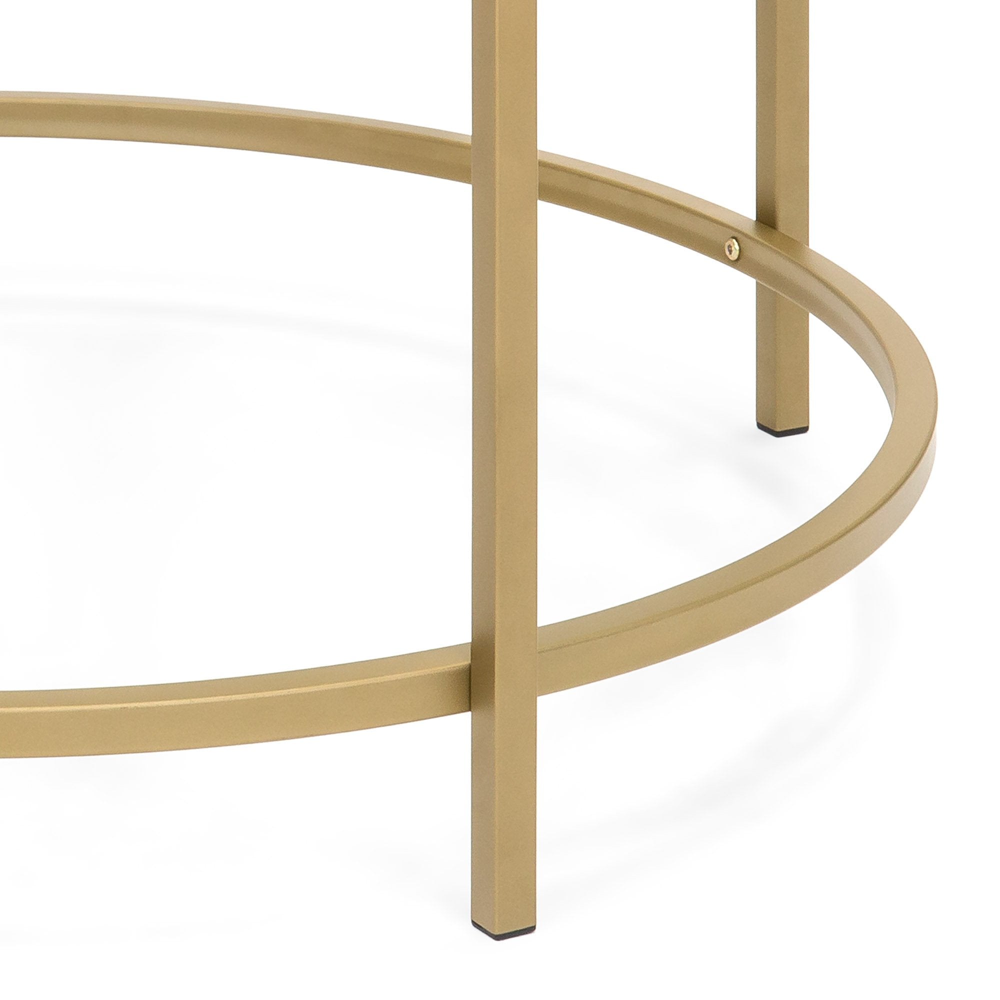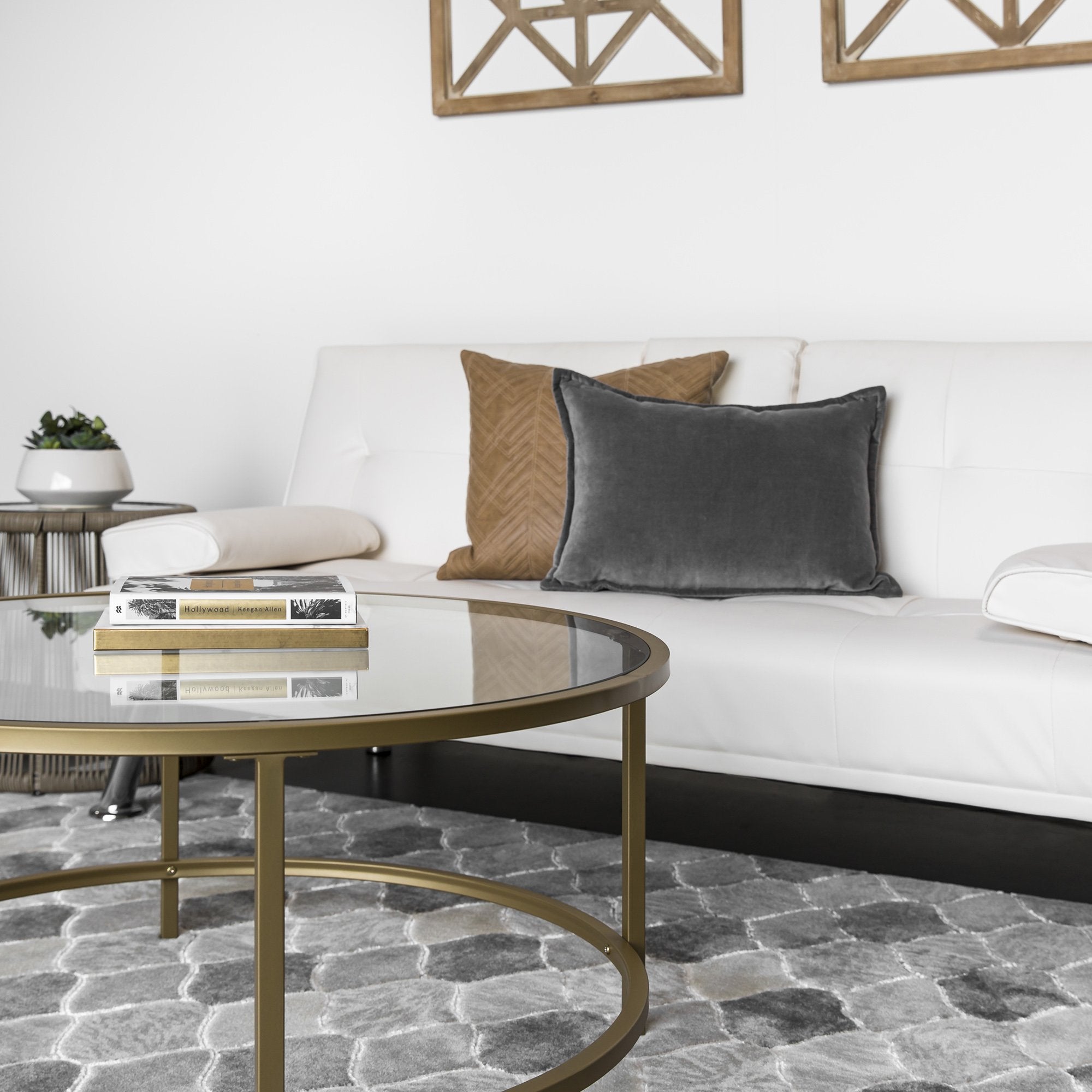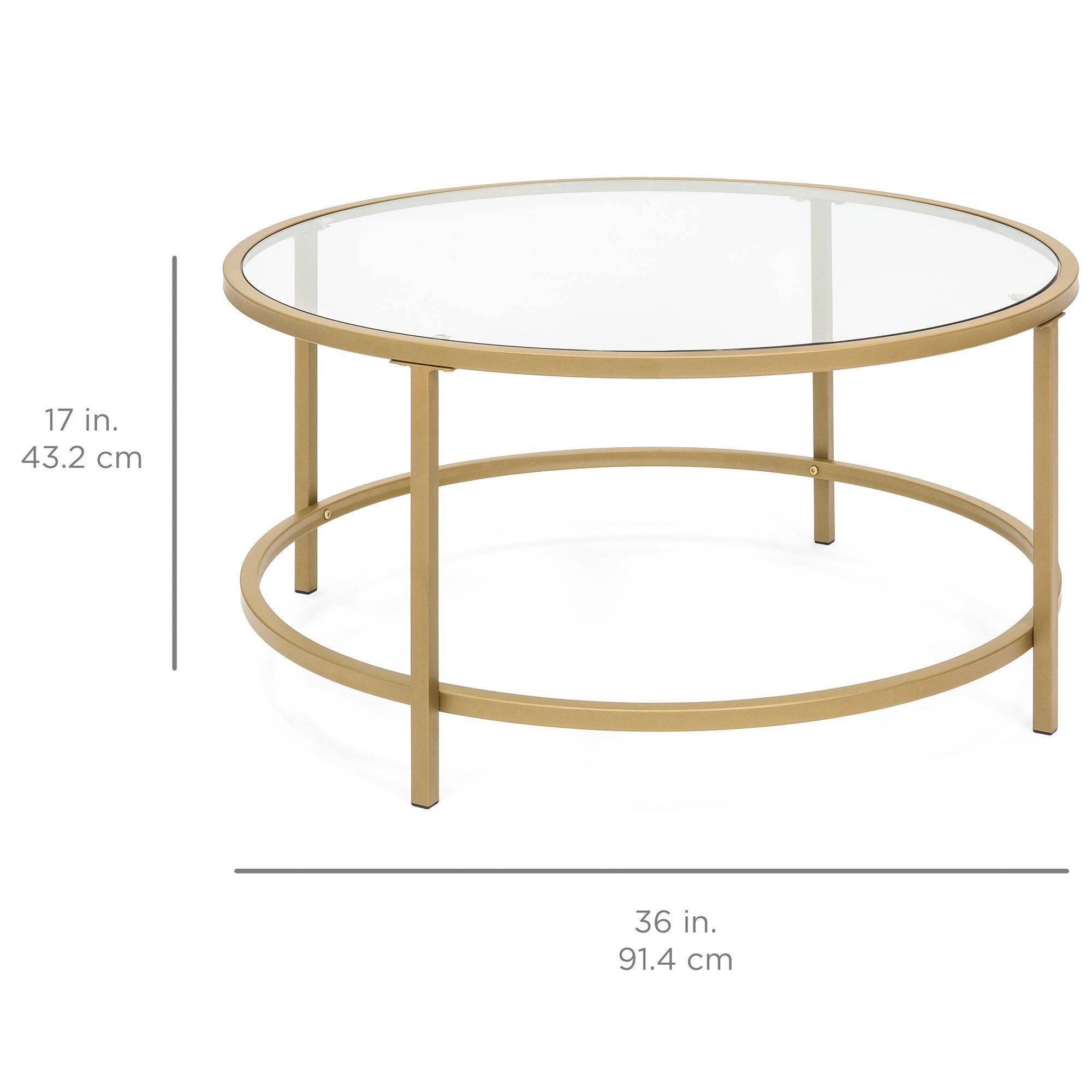 ELEGANT GLASS DESIGN: This round table's glass top makes it a modest yet elegant living room addition for placing magazines, snacks, beverages, or a decorative centerpiece