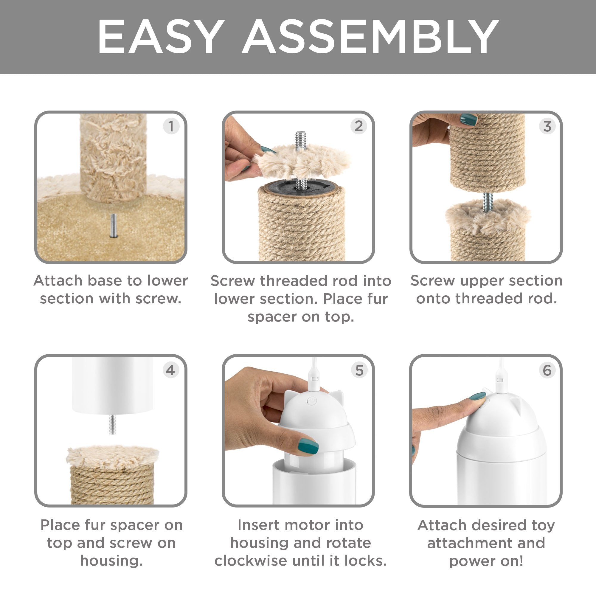 2-IN-1 INTERACTIVE POST: Designed for your little bundle of fur to enjoy scratching the post or playing with interactive, 360-degree rotating toys; auto shutoff function turns the rotator off after approximately 10 minutes