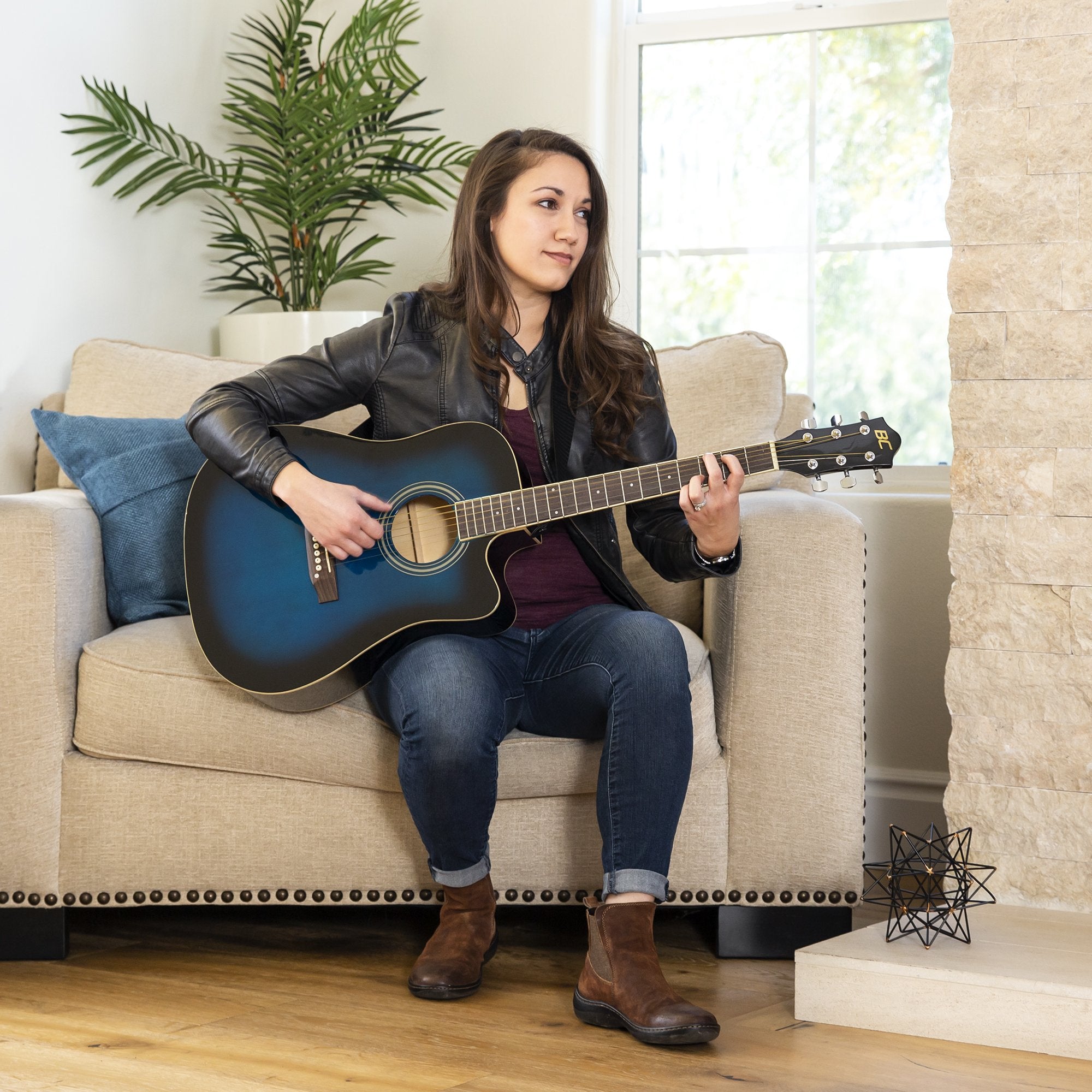 BRIGHT, RICH SOUND: Play like the pros, as this guitar's dreadnought body and cutaway design contribute to a vibrant tone suitable for all styles of music