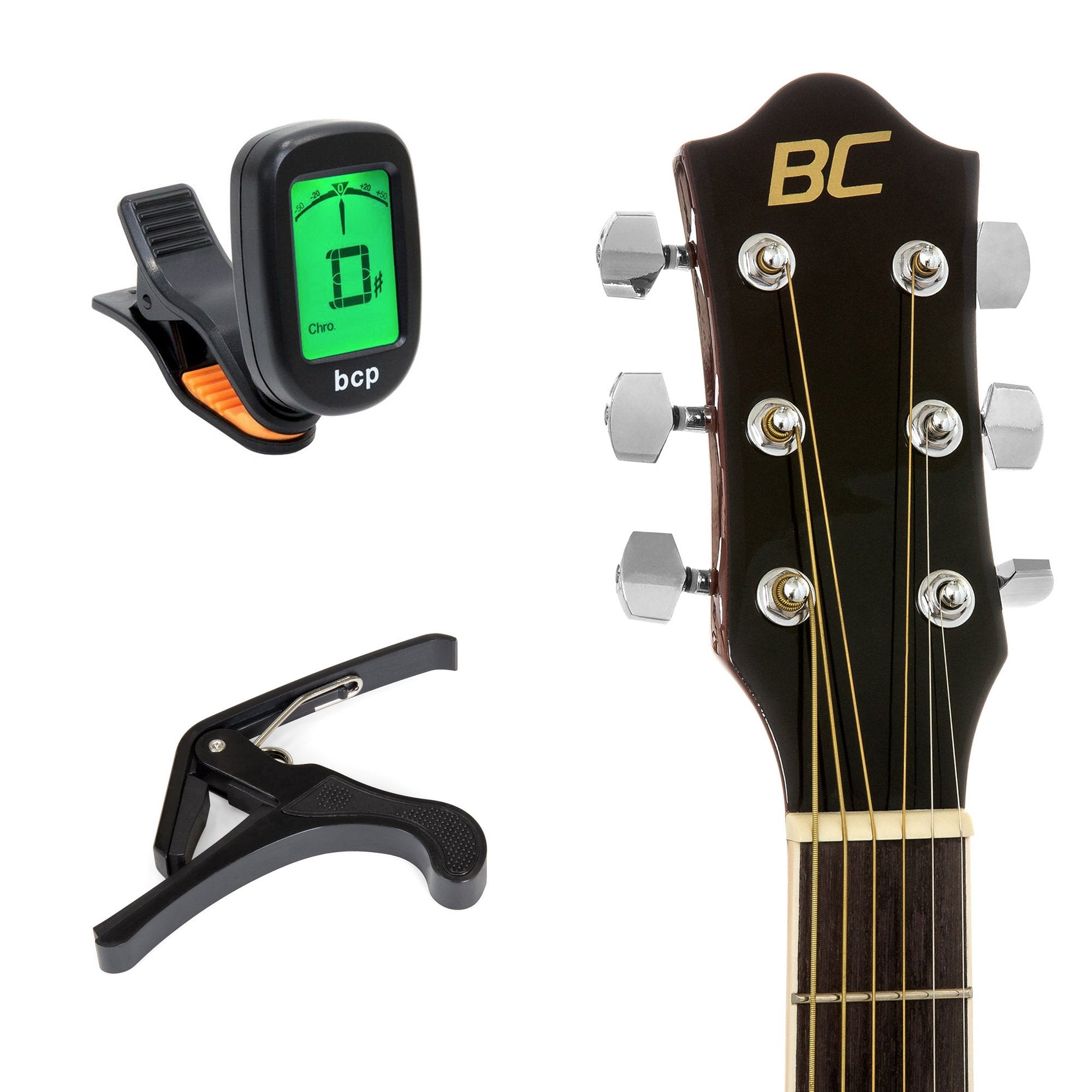 ALL-INCLUSIVE GUITAR SET: Beginner acoustic guitar set comes complete with a strap, capo, digital tuner, polishing cloth, set of 4 guitar picks, and additional strings