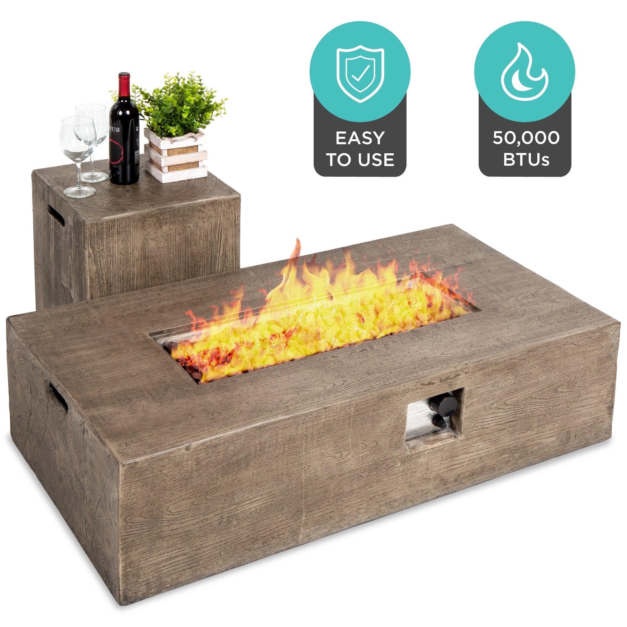 48x27in 50,000 BTU Propane Fire Pit Table w/ Side Table Tank Storage, Cover