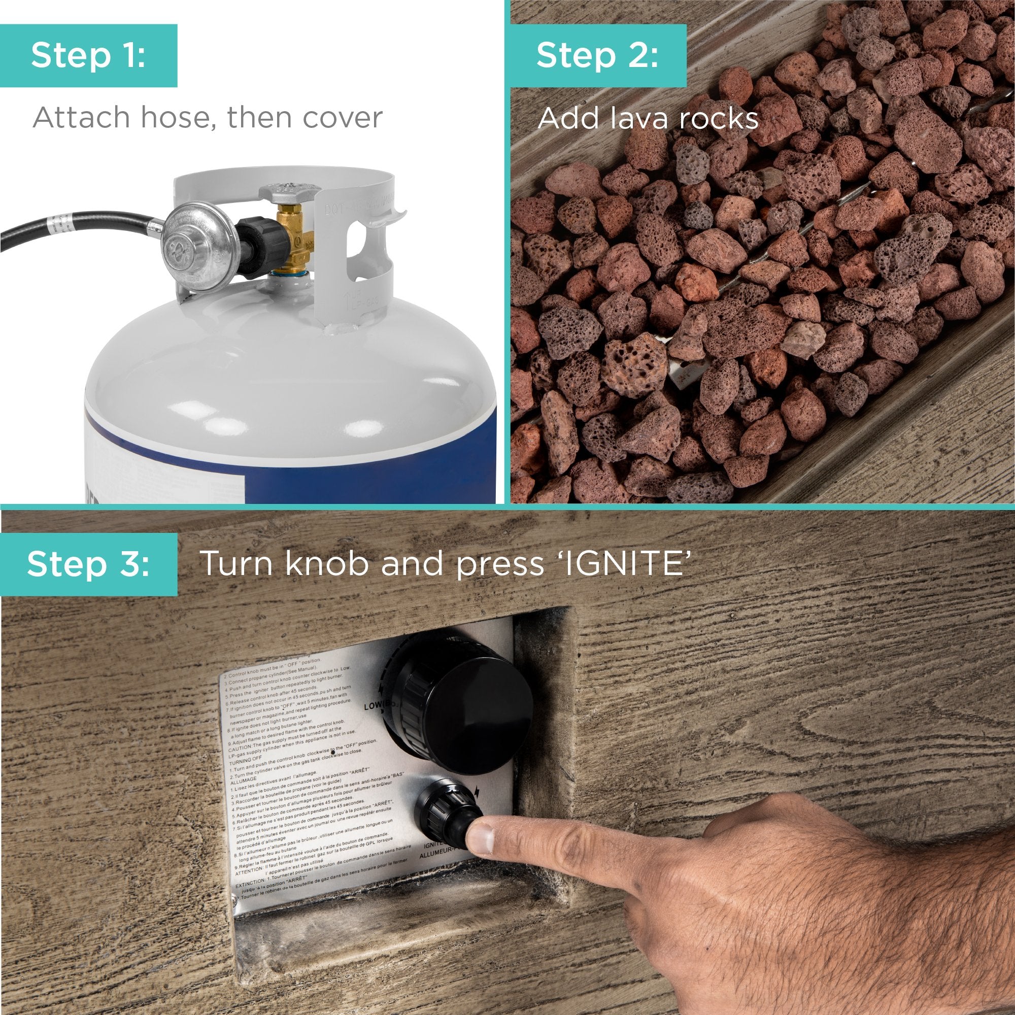 EASY TO USE: Simply turn the knob to create flames that radiate brightly against the lava rocks to provide a pleasant ambiance. A weather-resistant pit cover protects it from the elements, and a hose is included for the propane tank. (NOTE: Propane tank is not included; Cover for side table is not included)