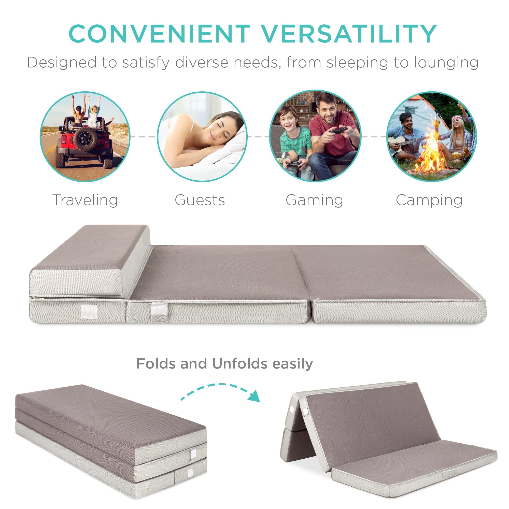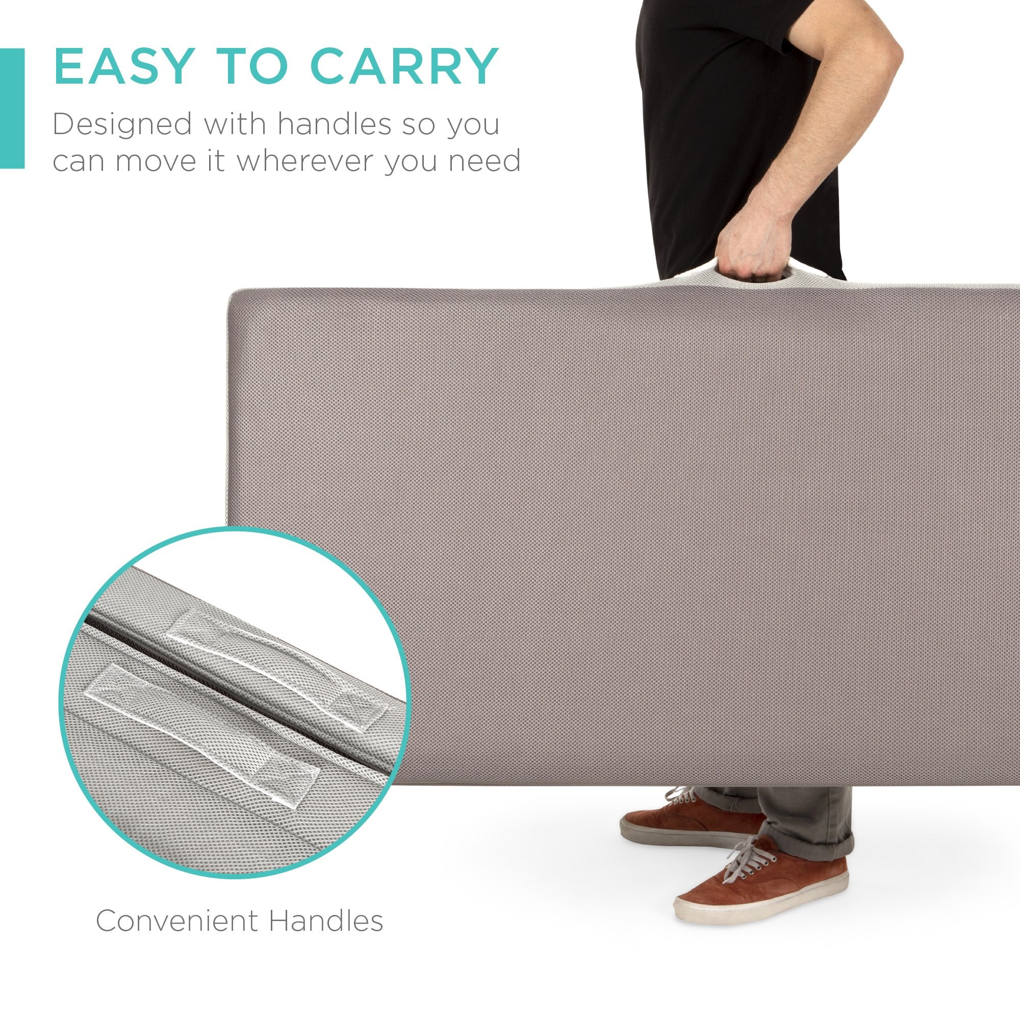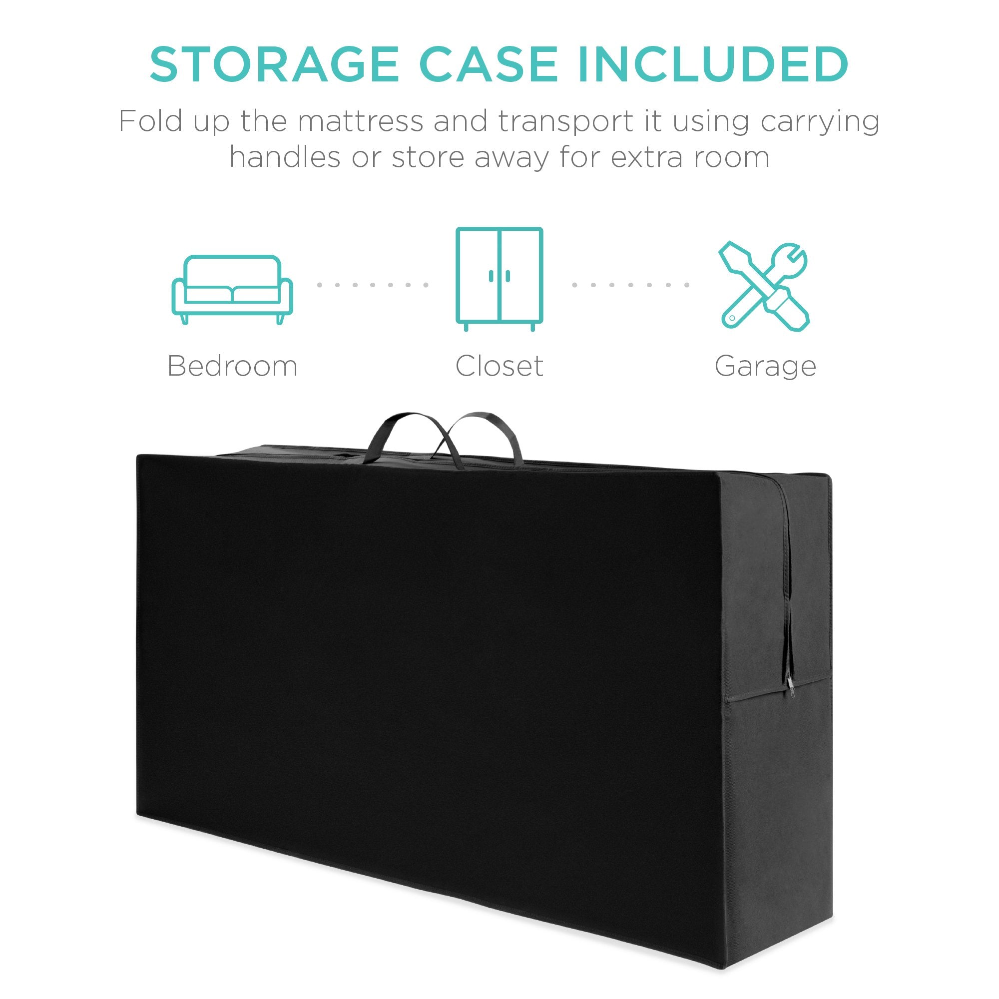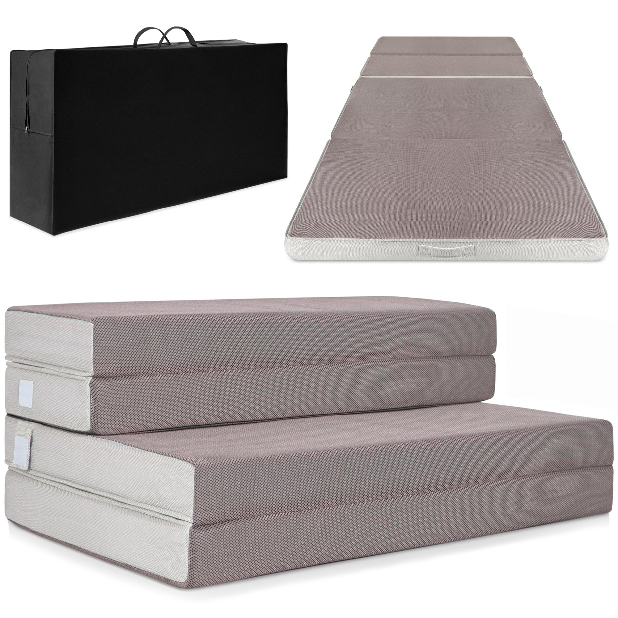 PORTABLE AND SPACE-SAVING: Simply slip the included carrying case over the portable, tri-fold mattress and zip it up to keep it neat and secure while you travel