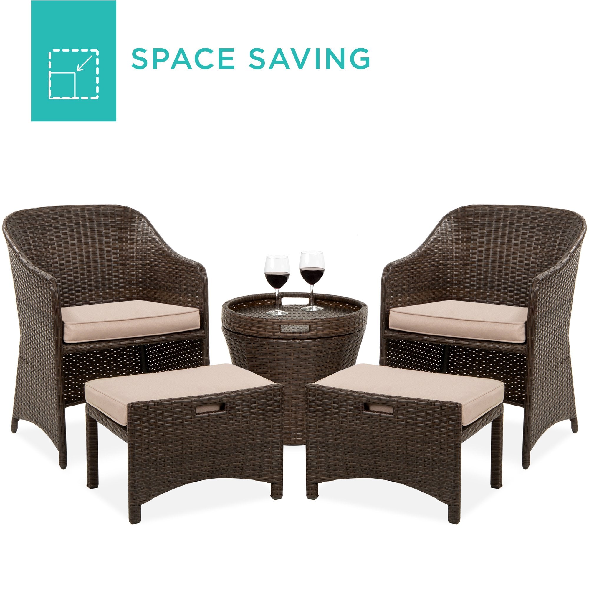 5-Piece Outdoor Wicker Bistro Set w/ Side Storage Table, No Assembly
