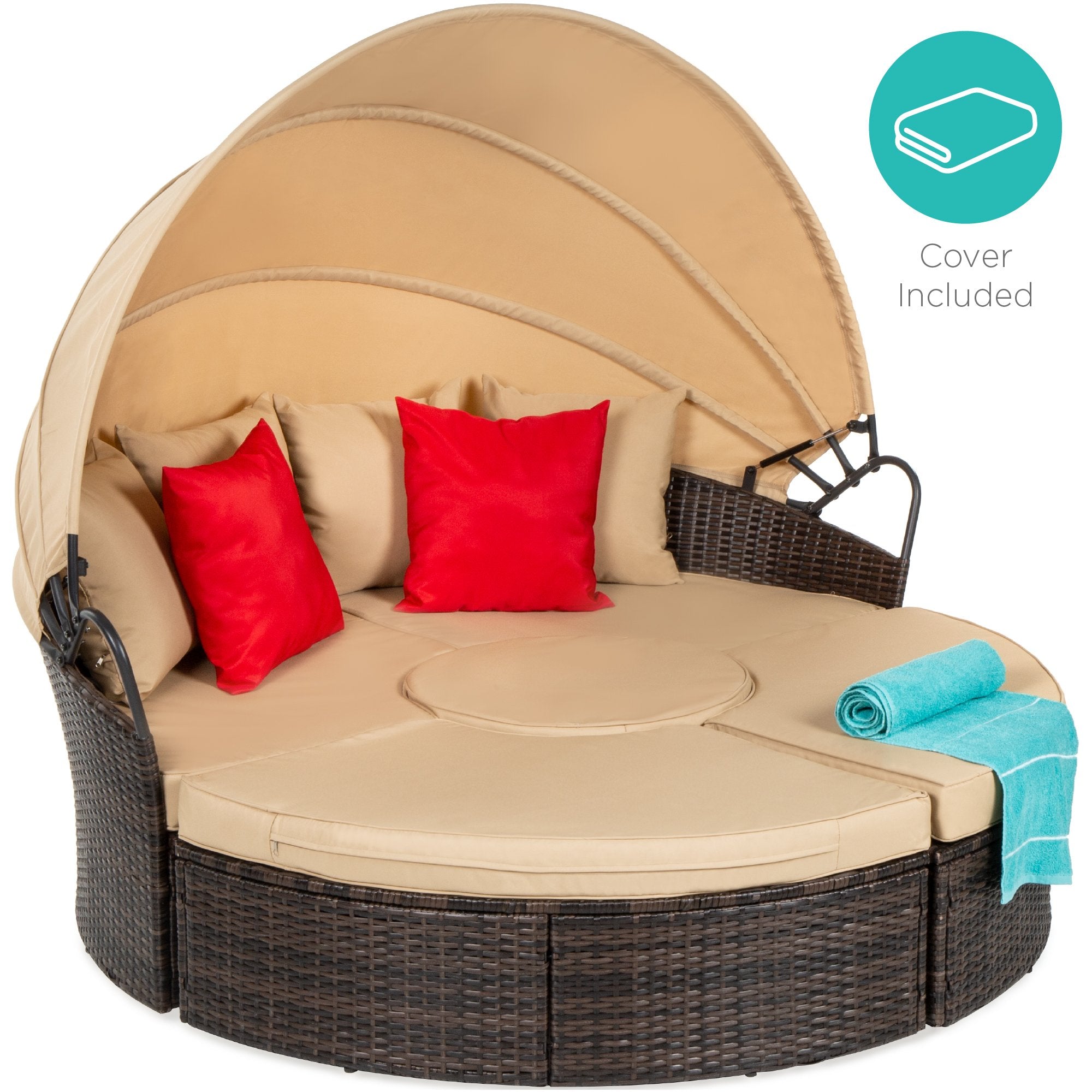 2-IN-1 DESIGN: A daybed lounger and conversation set all in one, perfect for lounging in the sun, reading a book in the shade, or hanging out with friends; find added functionality in a small round table that doubles as an ottoman
