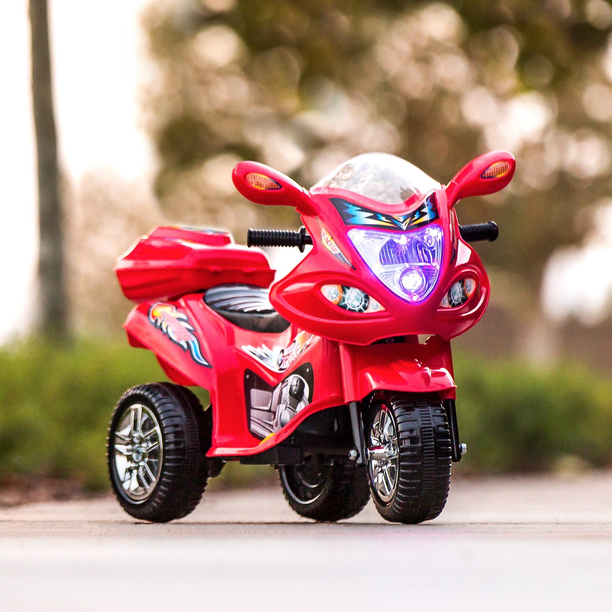 EXTRA SAFE RIDE: Ride-on motorcycle is made with a durable, non-toxic plastic body and a 3-wheel design for added safety