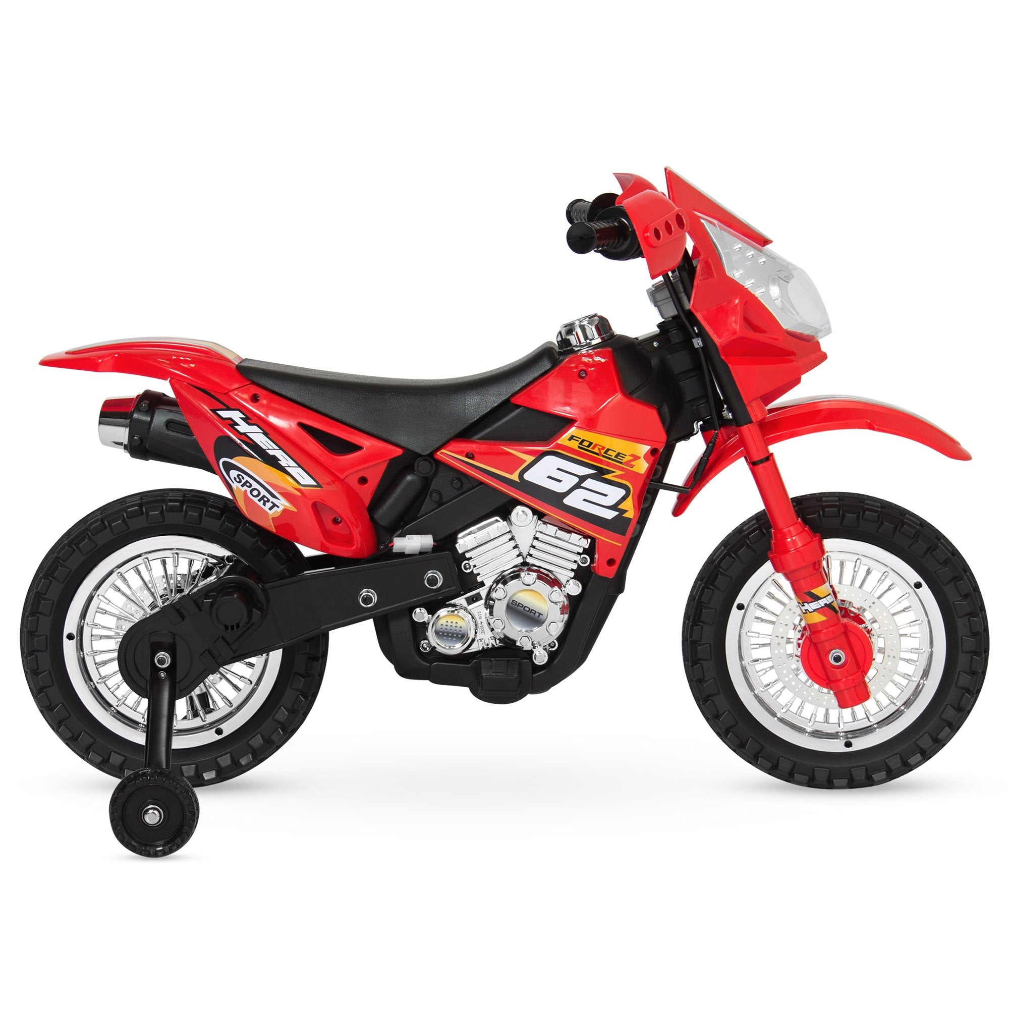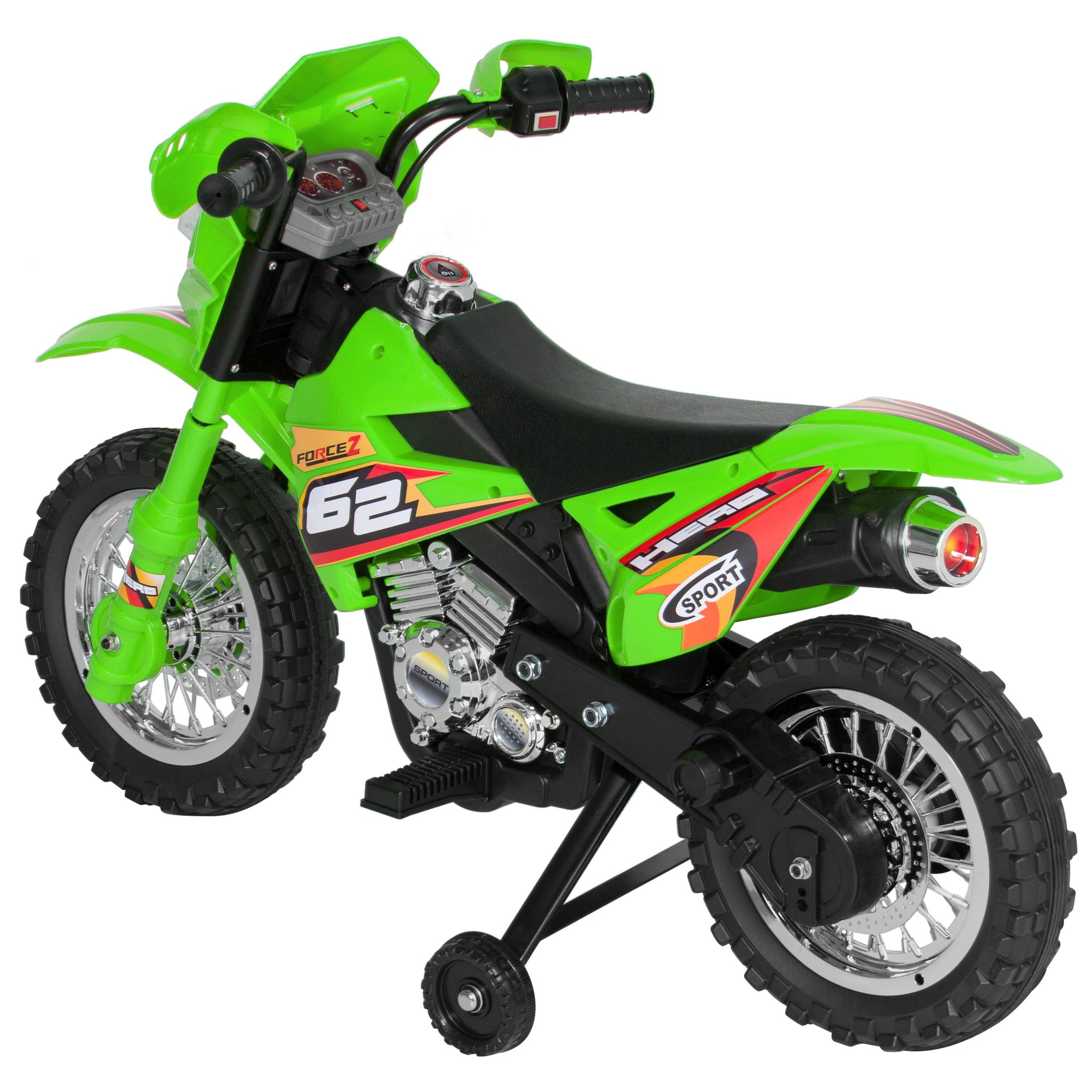 • 2MPH MAX SPEED: Ride up to 2 mph with realistic features like treaded tires, an exhaust pipe, and sports engine