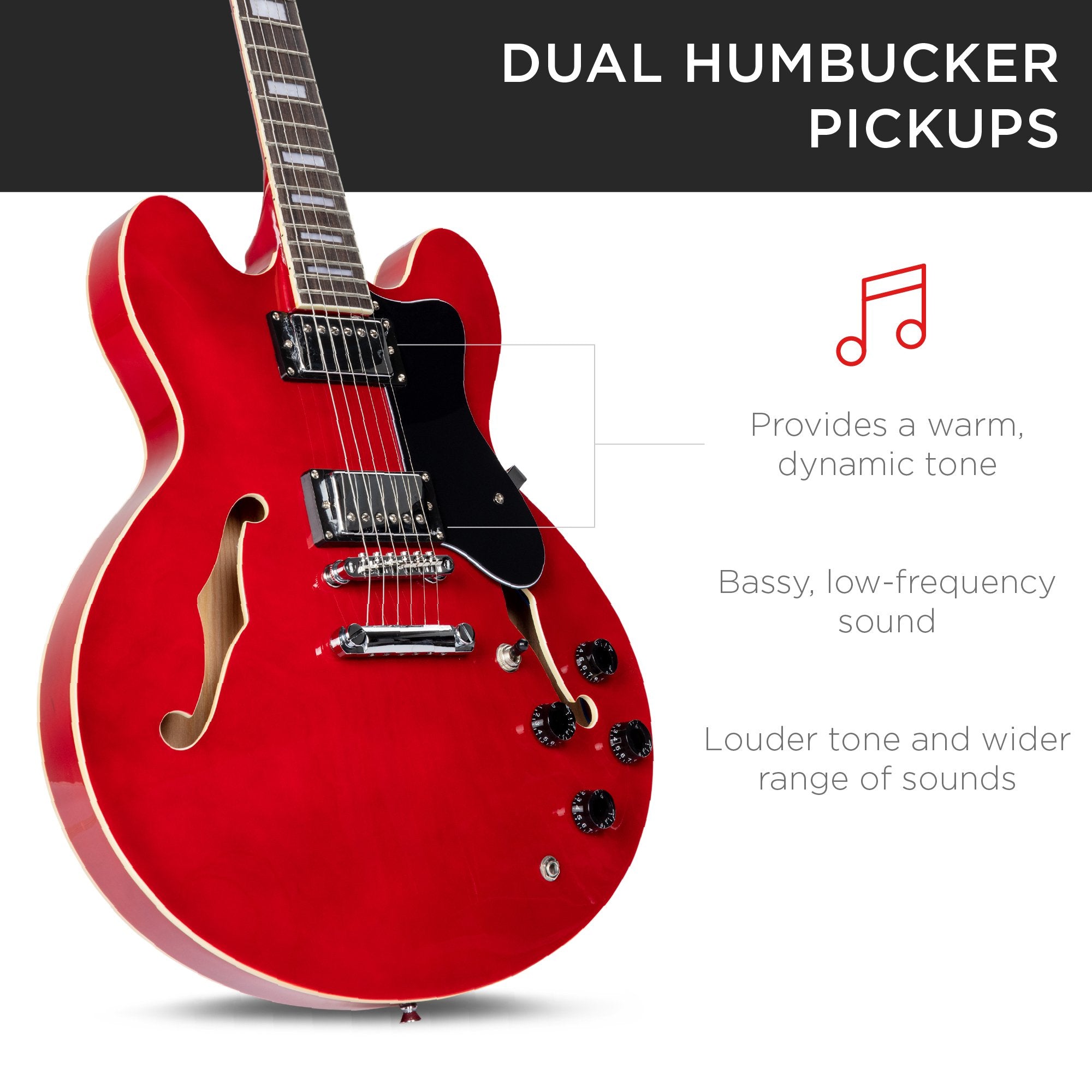 DUAL HUMBUCKER PICKUPS: Enjoy a warm tone, and low, bassy sound for a wide range of music
