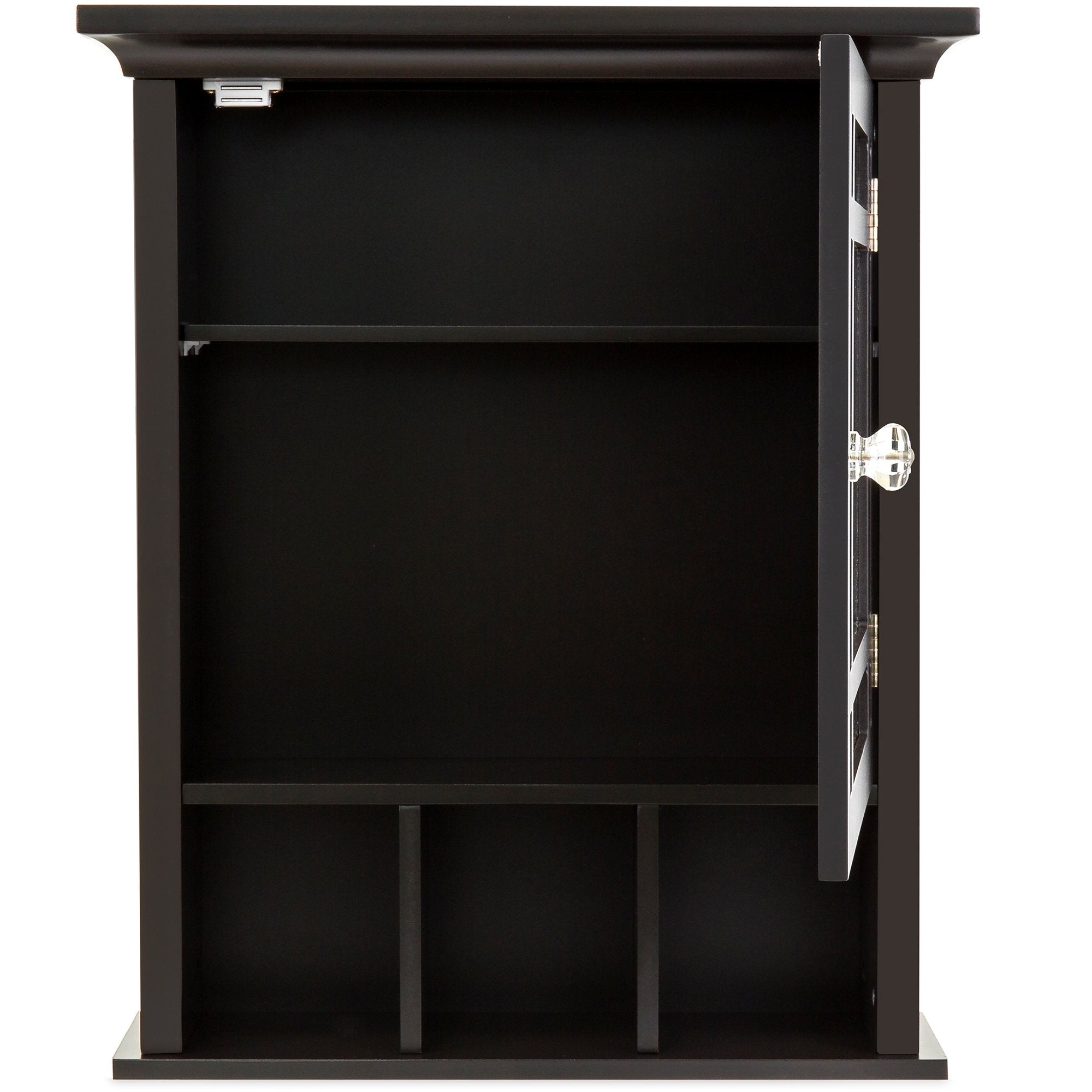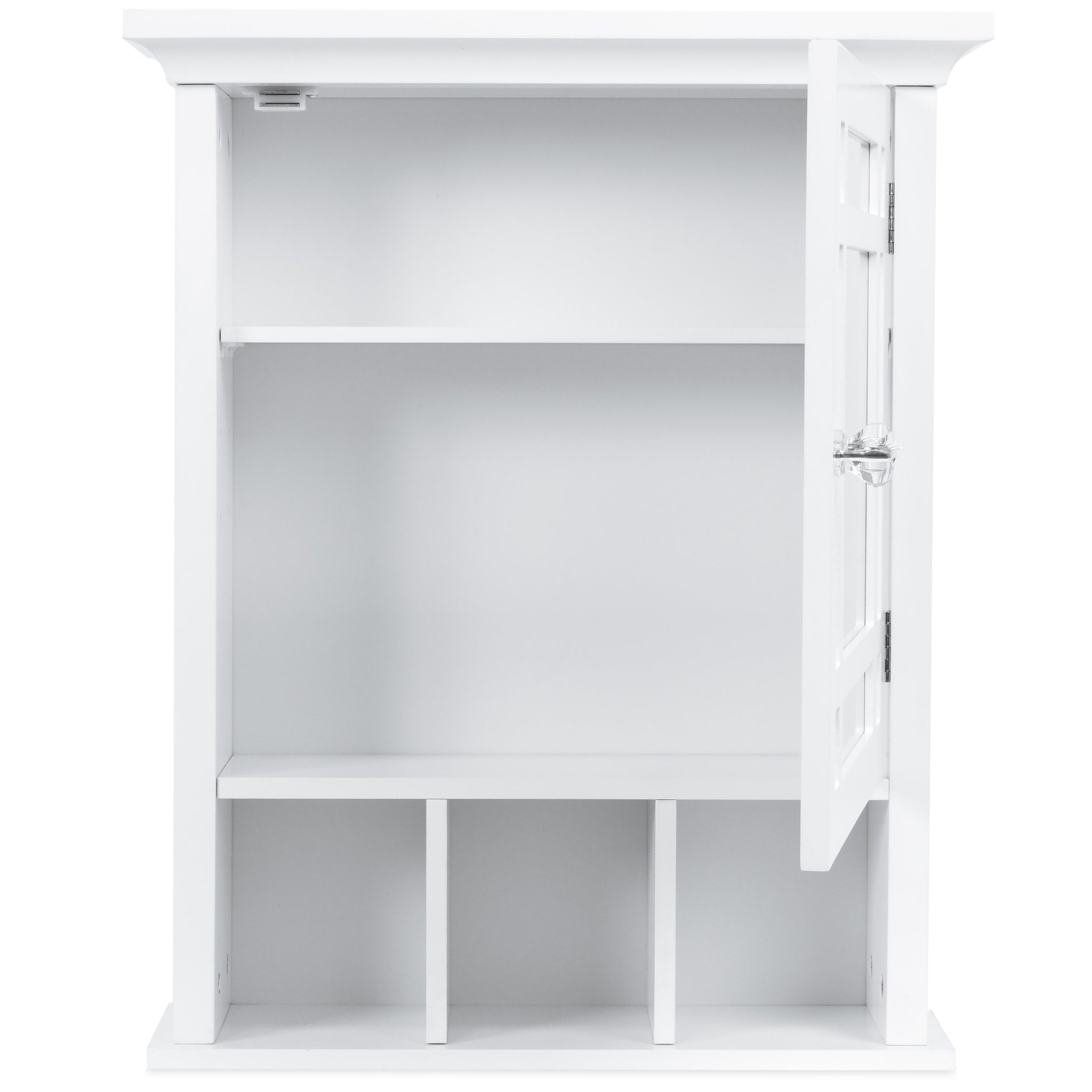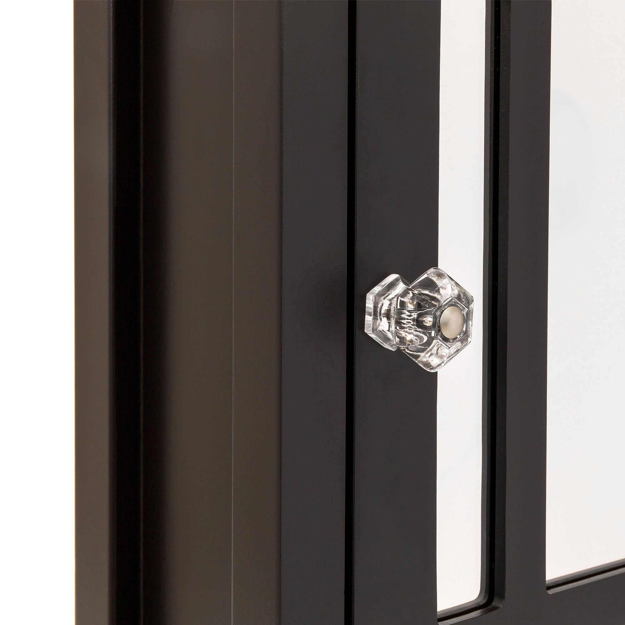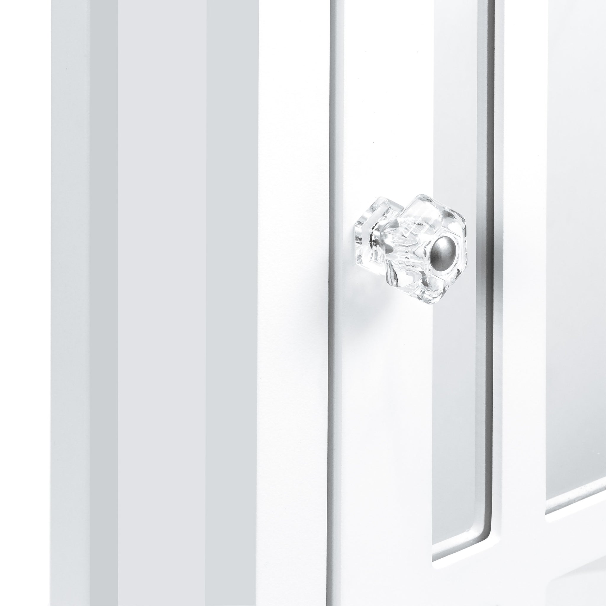 MODERN DESIGN: Bring style and function to your bathroom with a modern grid design, crown molding, and a crystal knob