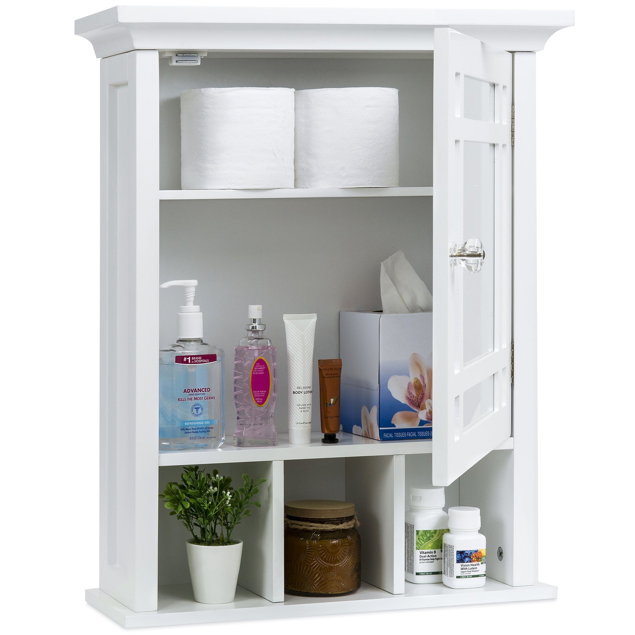MULTIFUNCTIONAL: Convenient and beautiful mirrored door adds everyday function to this medicine storage cabinet