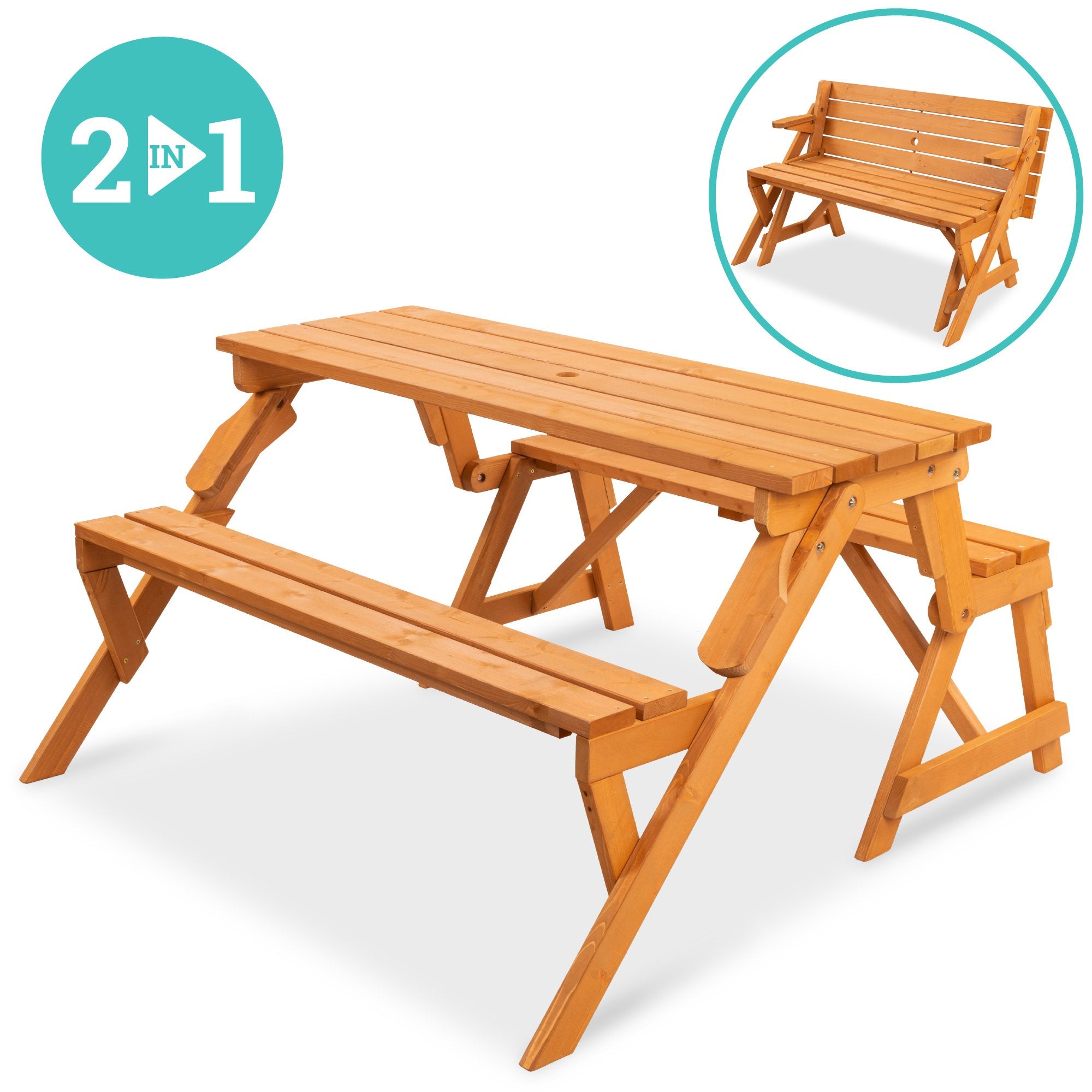• 2-IN-1 TRANSFORMING CAPABILITY: Unique furniture starts as a picnic table and transforms to a garden bench in seconds, allowing you and guests to enjoy lunch or simply lounge outside