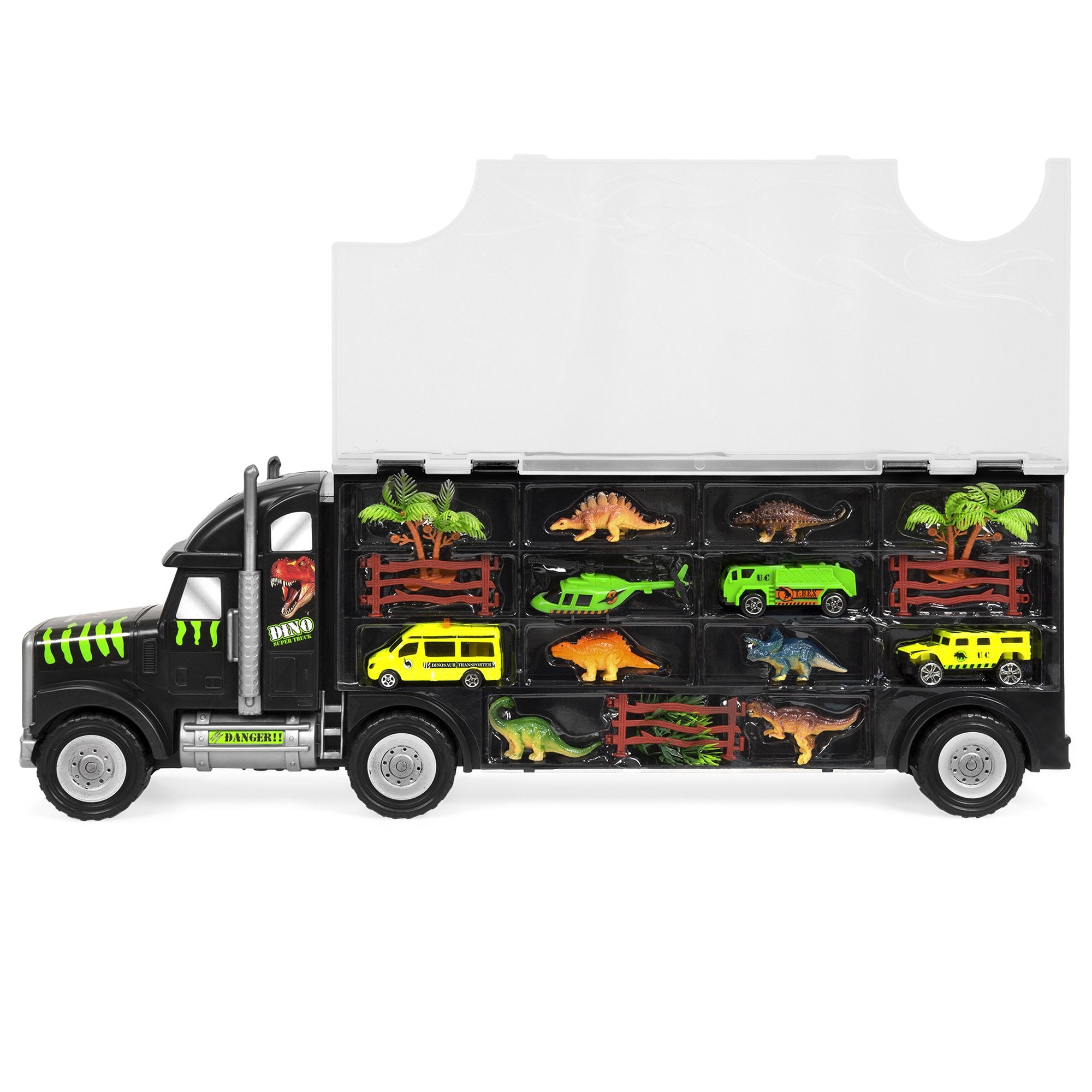 PORTABLE DESIGN: Built-in, kid-friendly carrying handle makes transporting cars and dinosaurs quick and easy for on-the-go fun