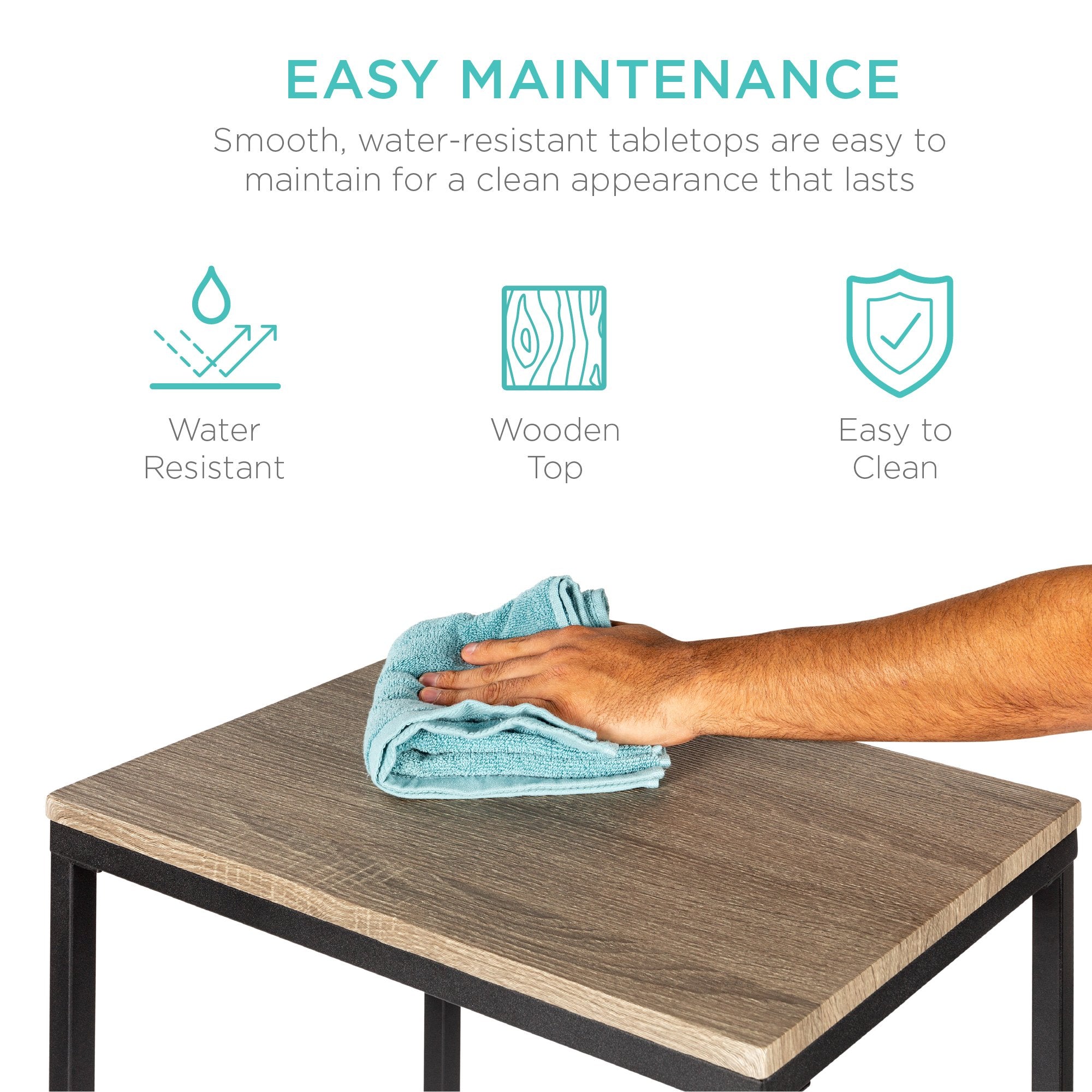 EASY MAINTENANCE: Water-resistant, wood tabletops provide smooth surfaces for easy cleaning, so you can keep this set looking its best for an extended period