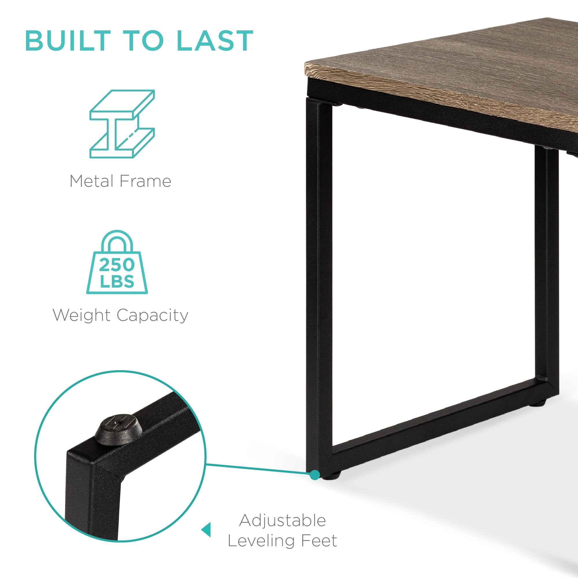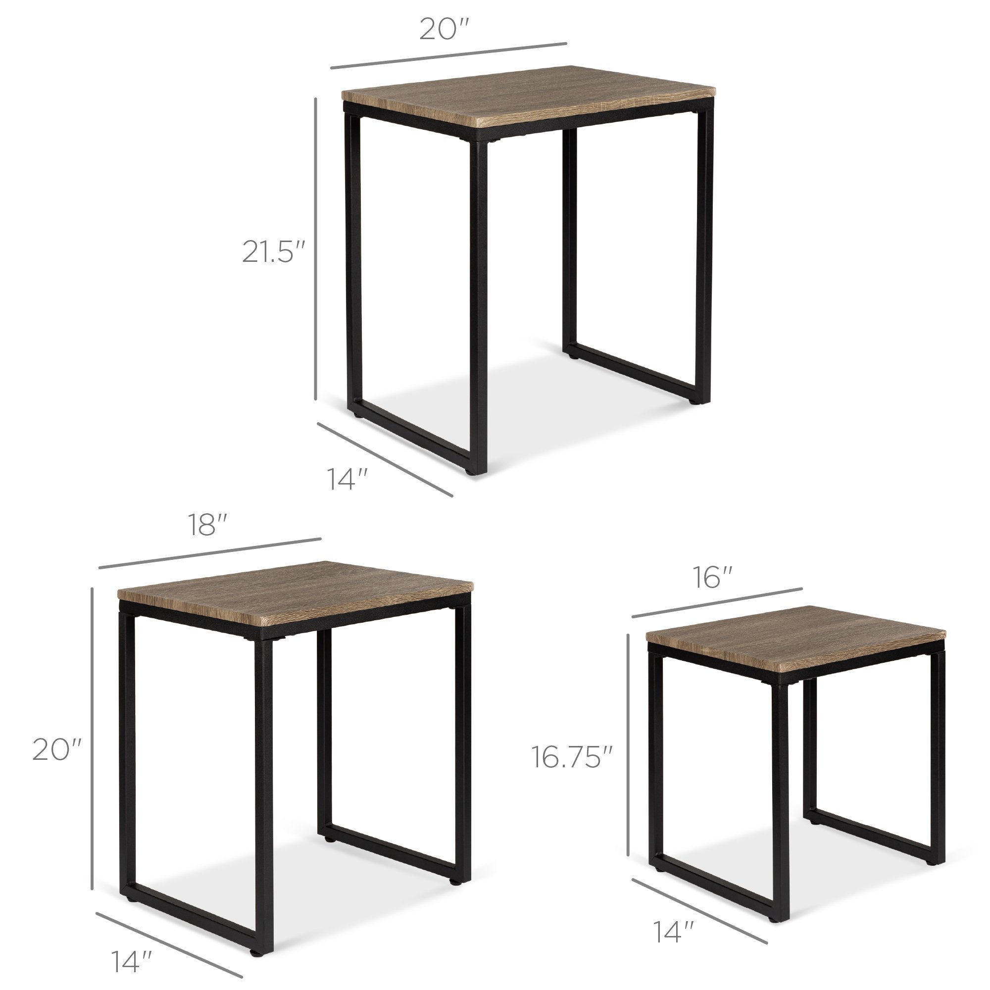 BUILT TO LAST: This convenient, decorative end table trio is durably crafted with sturdy metal framing, medium-density fiberboard surfaces, and leveling feet to ensure years of reliable use