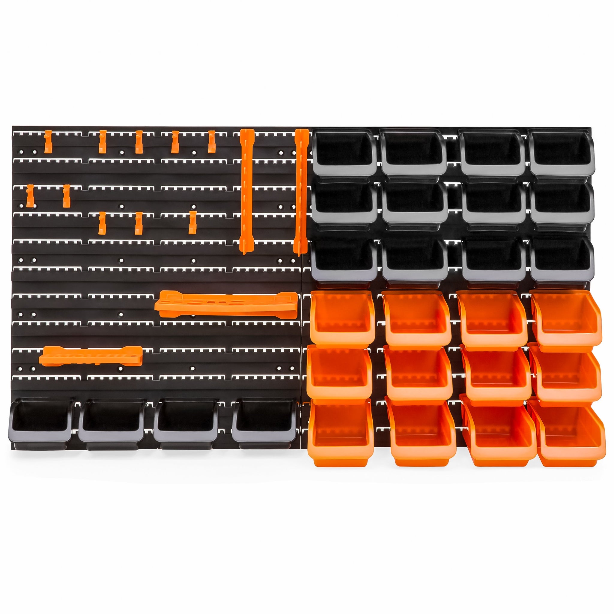 3 BIN SIZES: 44-piece storage unit fits everything, including 4 large bins, 12 medium bins, 12 small bins, and 14 tool storage accessories
