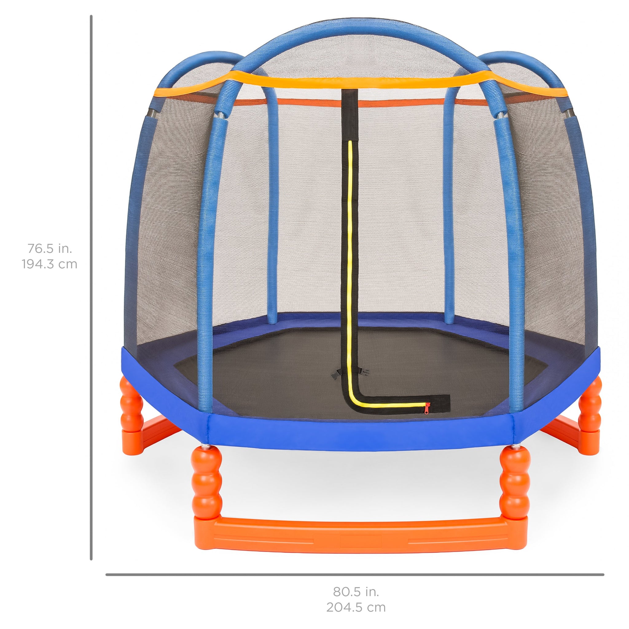 EASY ZIPPER ENTRANCE: Convenient zipper makes it easy for any child to safely enter and exit; OVERALL DIMENSIONS: 80.5"(Dia.) x 76.5"(H); Weight Capacity: 110 lbs.