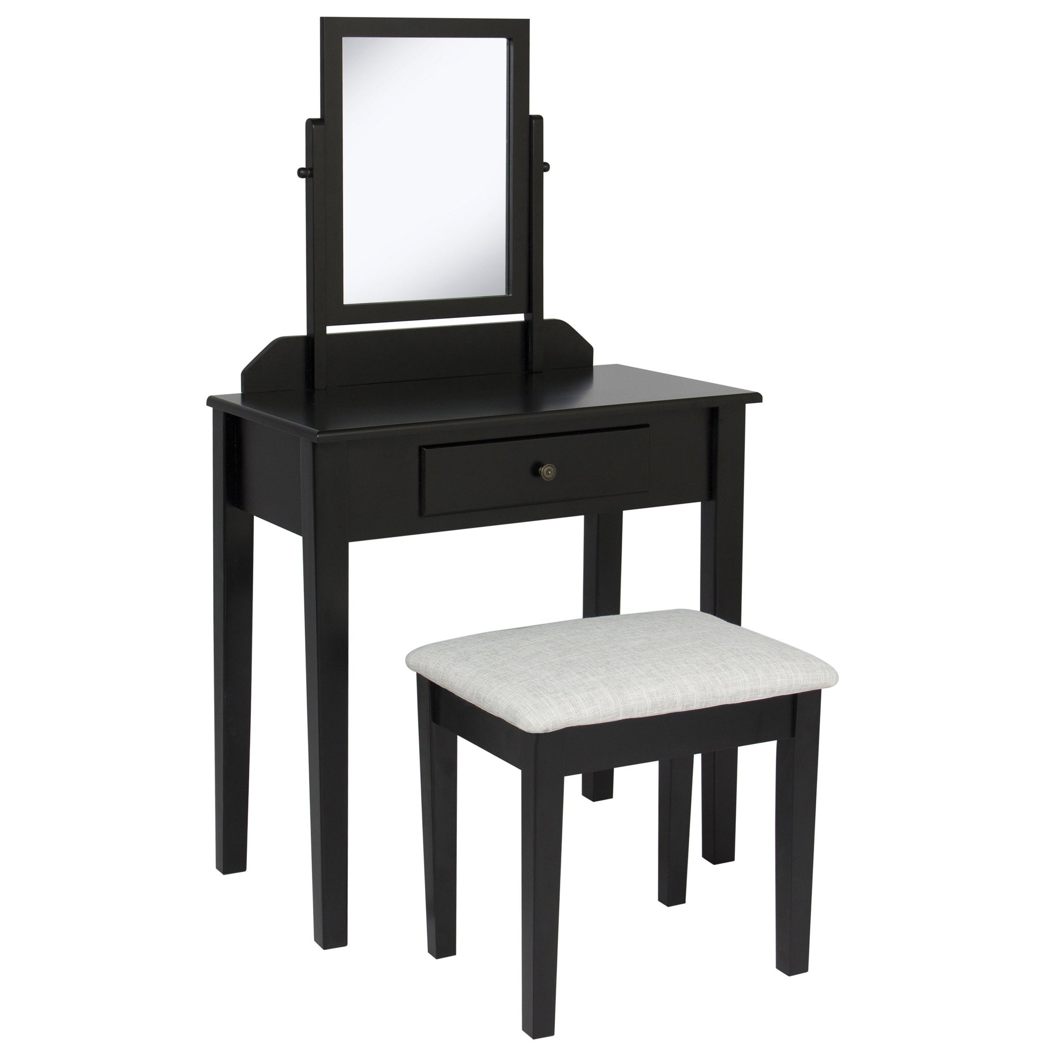 CONTEMPORARY VANITY SET- Vanity table and stool set is crafted of solid wood and features a stylish contemporary style
