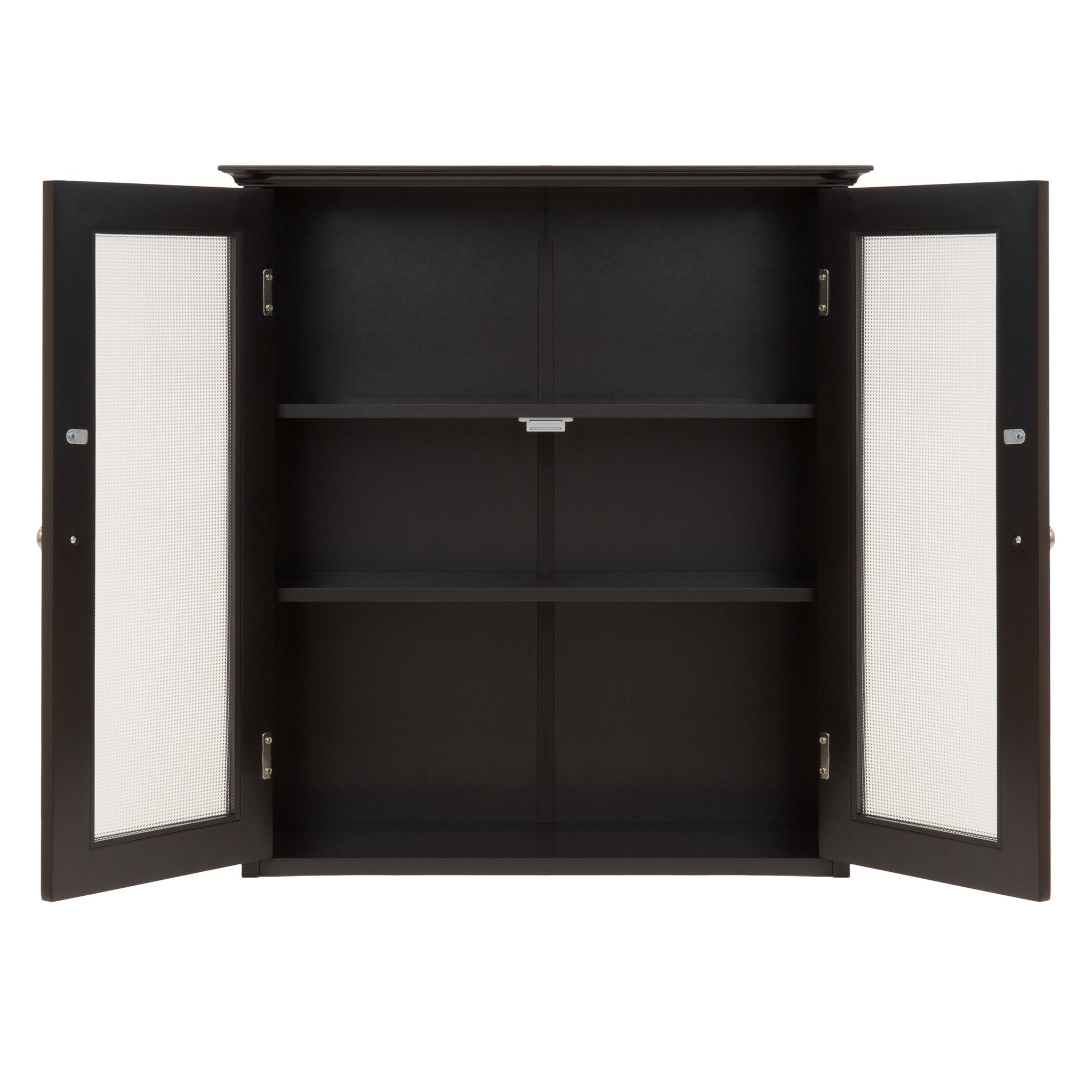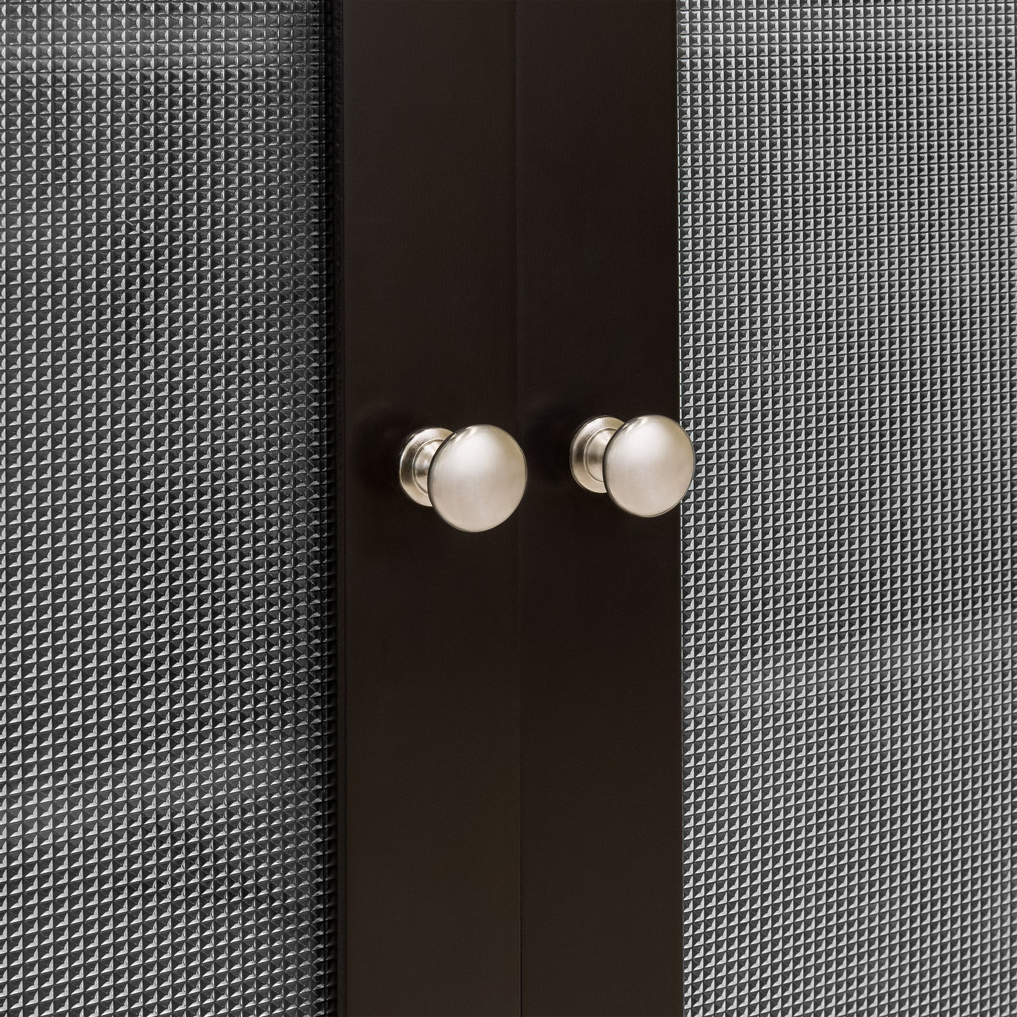 WAFFLE-PATTERN DOORS: Cabinet doors are designed with waffle-pattern glass windows and double-plated knobs for easy opening