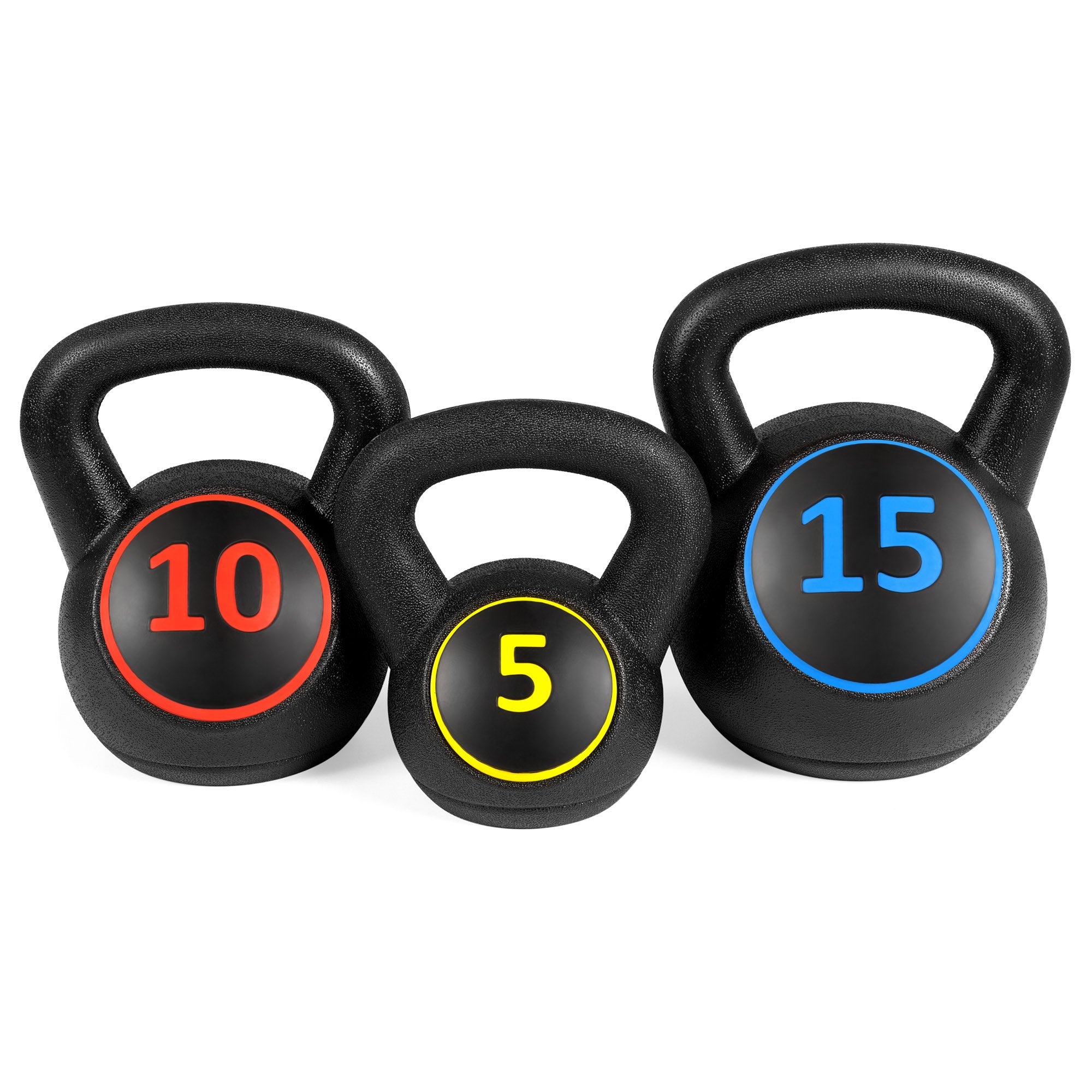SET OF 3 KETTLEBELLS: Weights of 5, 10, and 15 pounds are included in this set to help you target all major muscle groups in a variety of exercise options