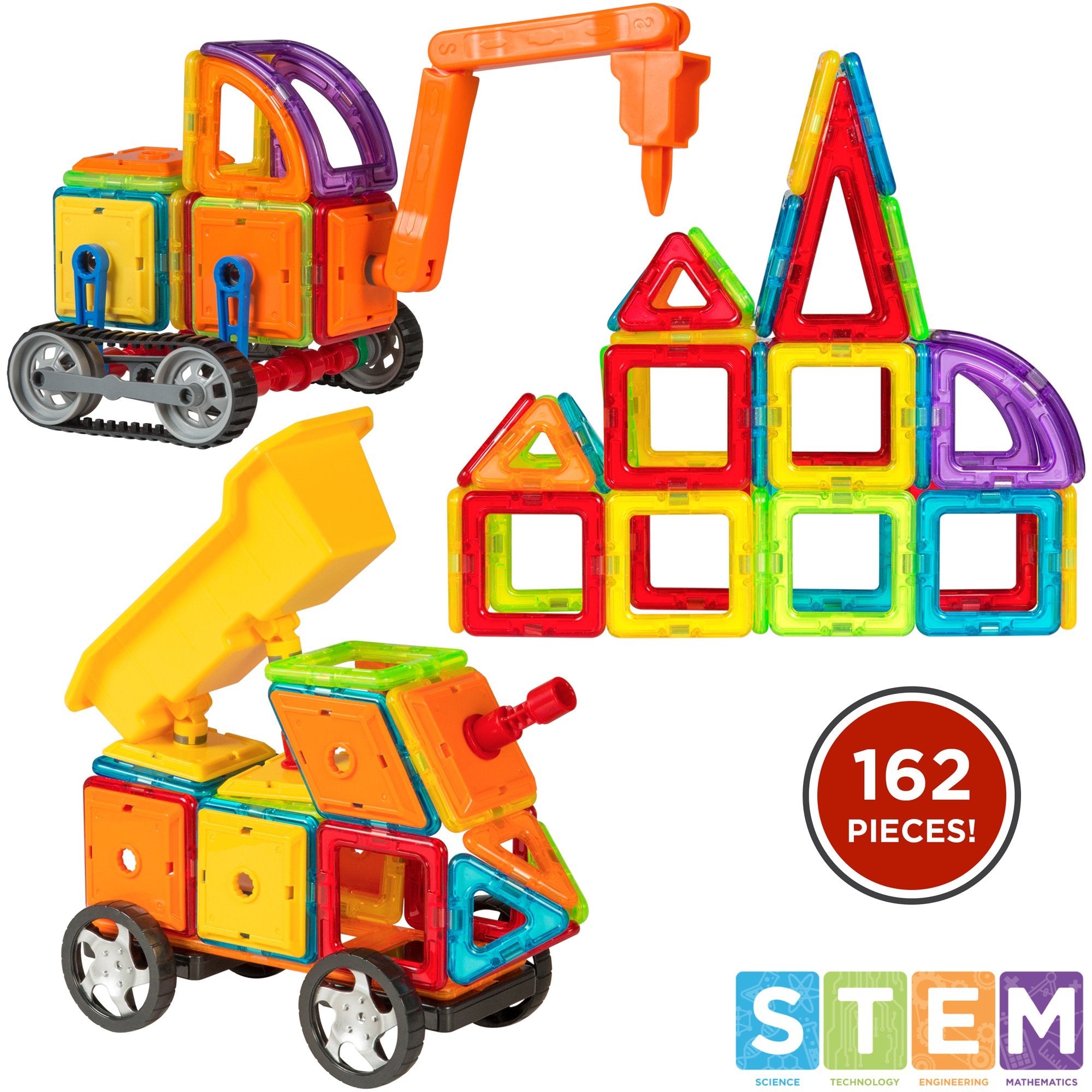 162-Piece Magnetic Building Block Tile Toy Set w/ Excavator Dump Truck