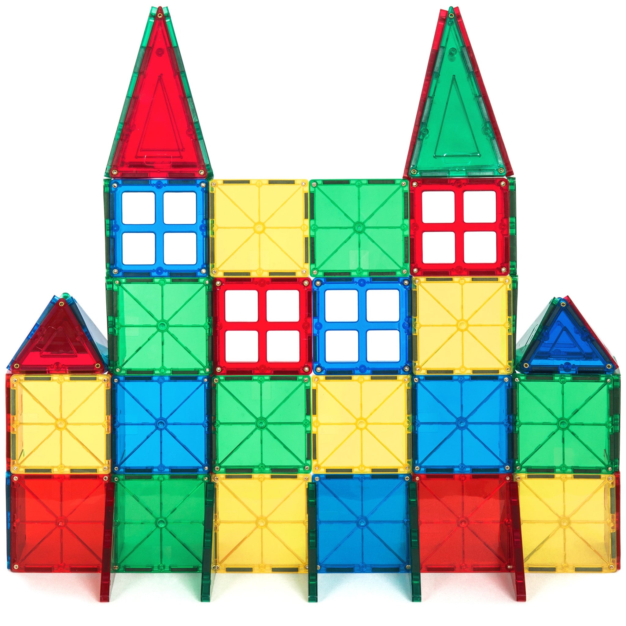 60 MAGNETIC TILES: Create cool 3D buildings, towers, and structures with 60 colorful mini tiles that connect via magnets