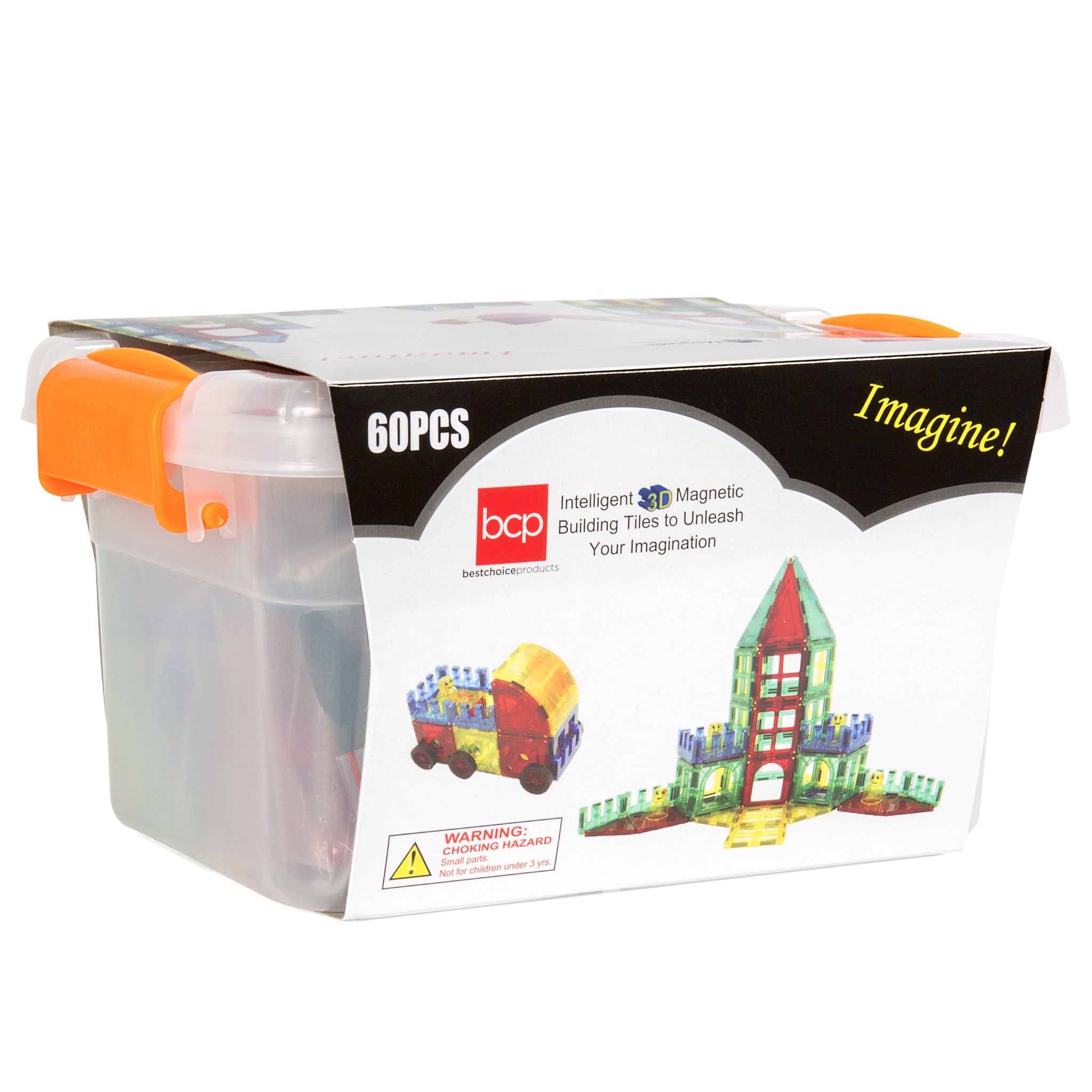 60-Piece Kids Magnetic Building Tiles Toy Set w/ Carrying Case