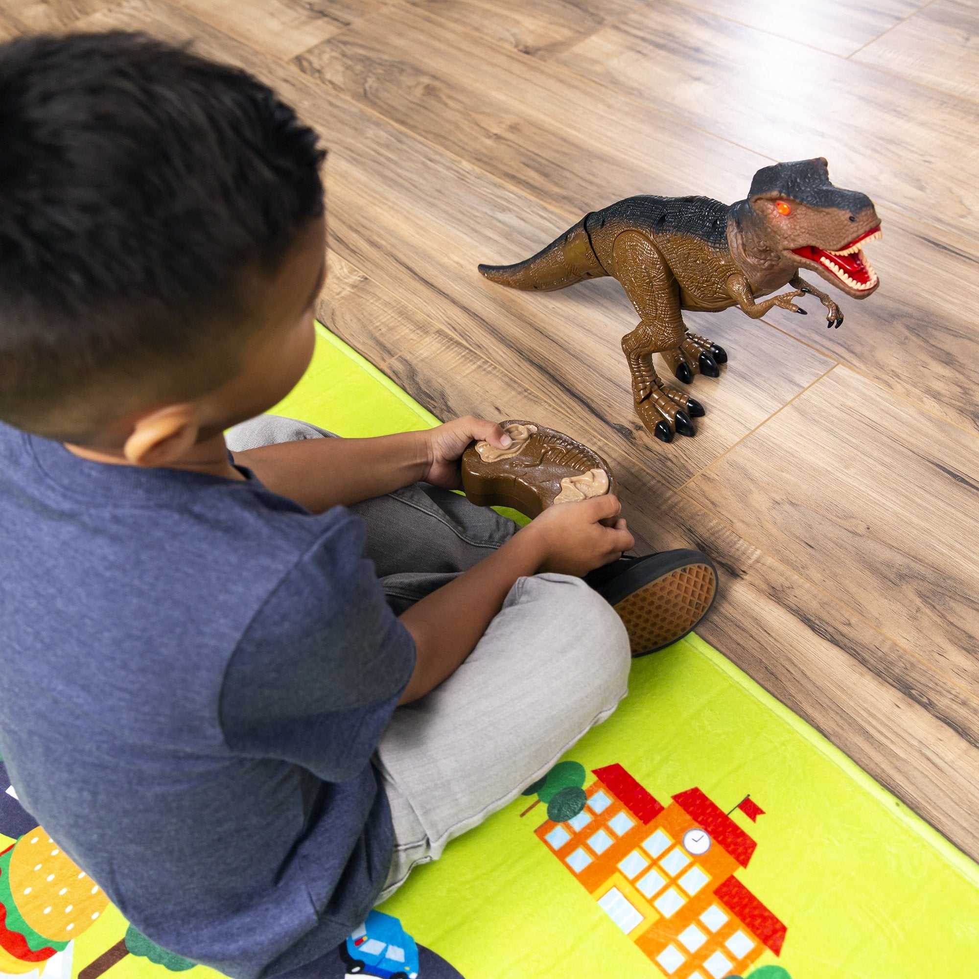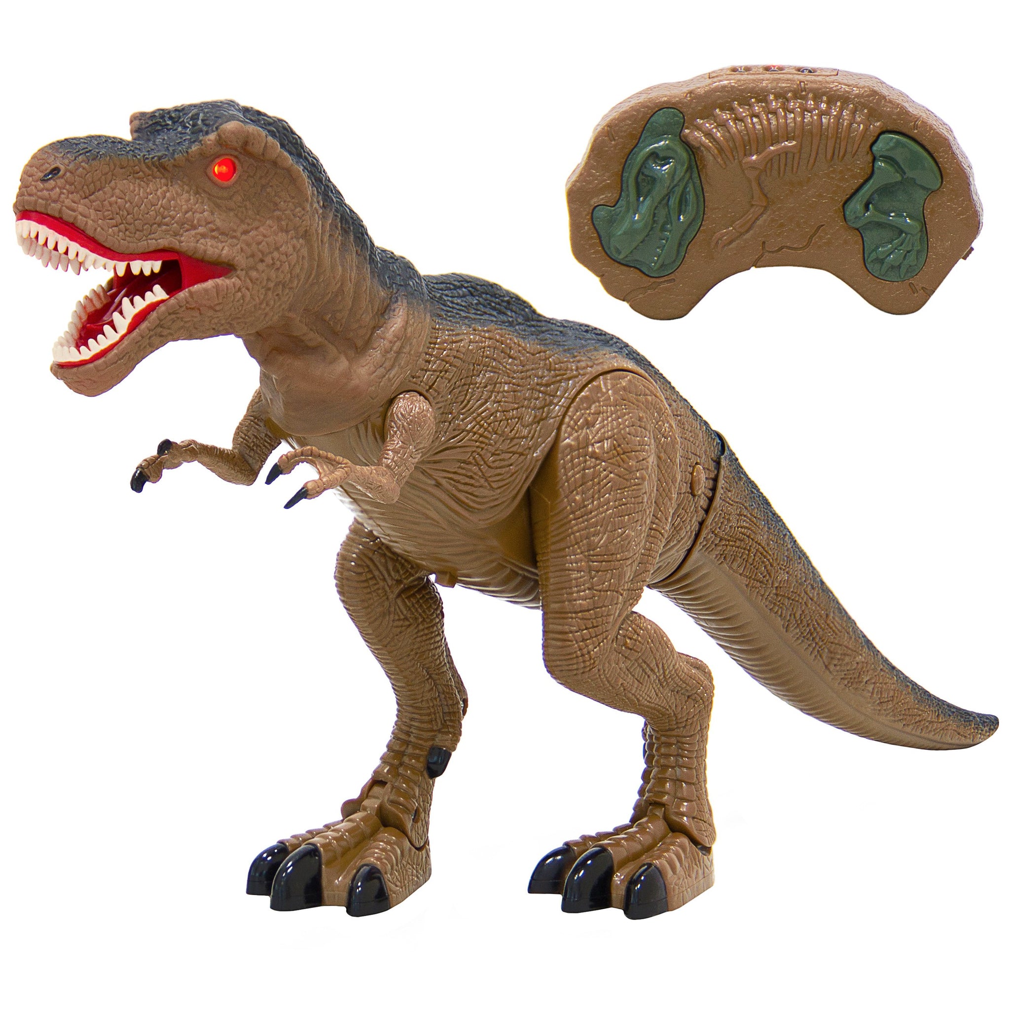 INTERACTIVE FUNCTIONS: Light-up eyes, ferocious roaring sounds, and daunting stomping noises allow the dinosaur to come to life and engage children