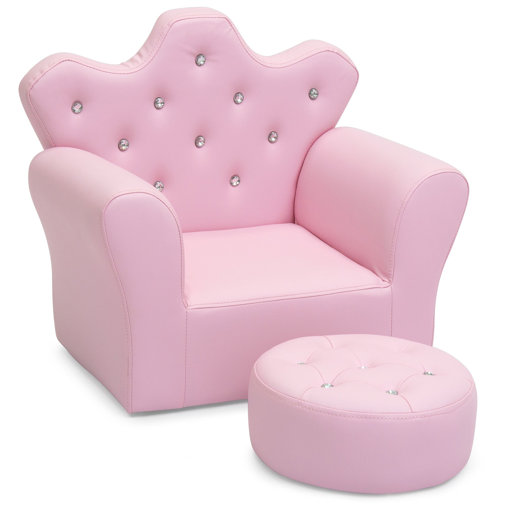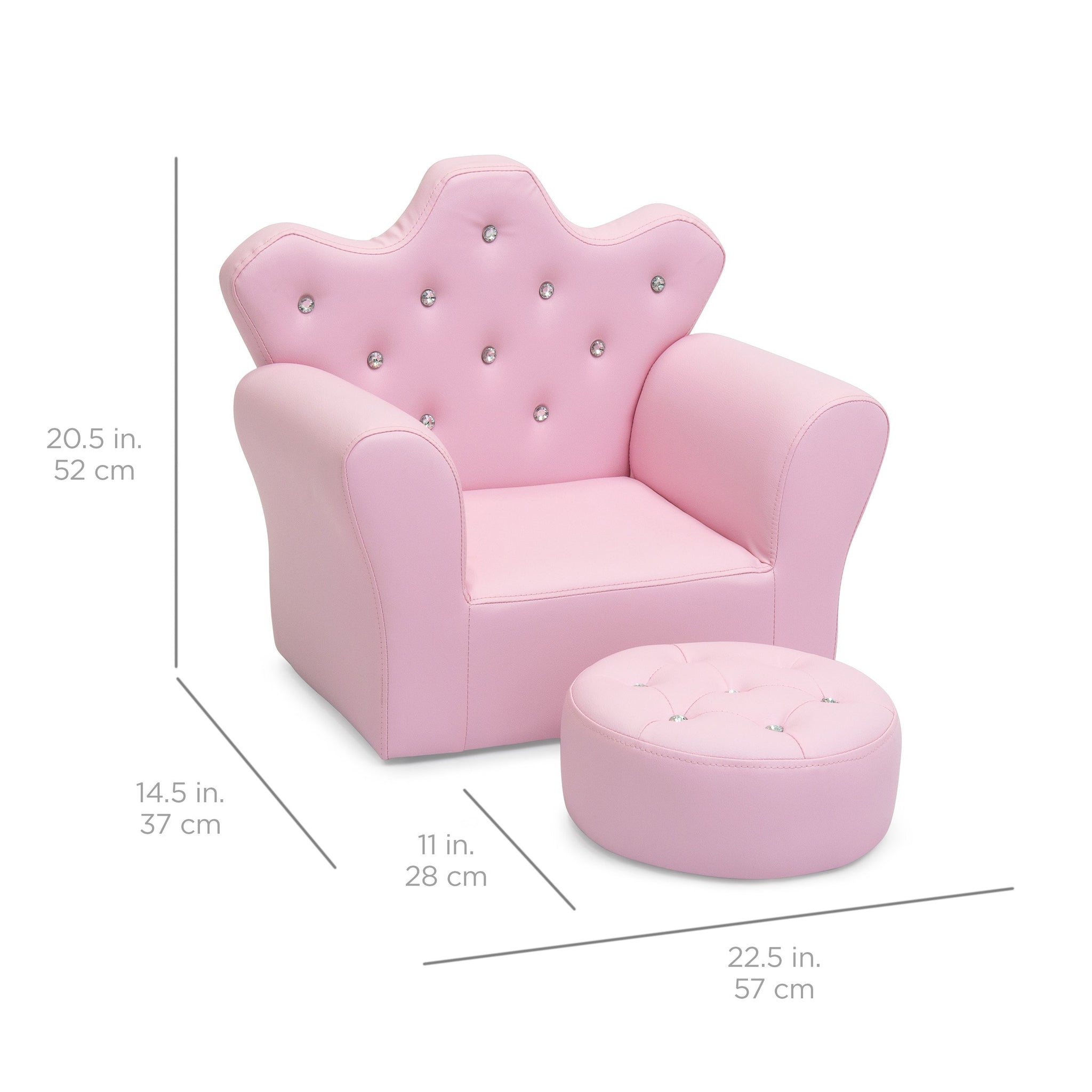 Kids Upholstered Tufted Bejeweled Mini Chair Seat w/ Ottoman