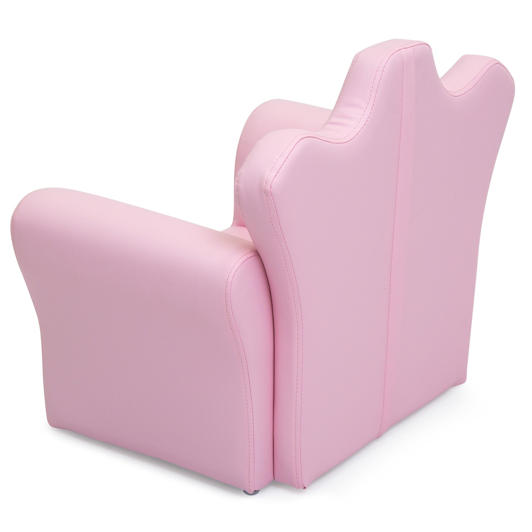 DURABLE: Small but mighty, this chair is fully able to withstand the wear and tear of a multiple child home as firmly padded faux leather resists stains and rips, all while looking like royalty.