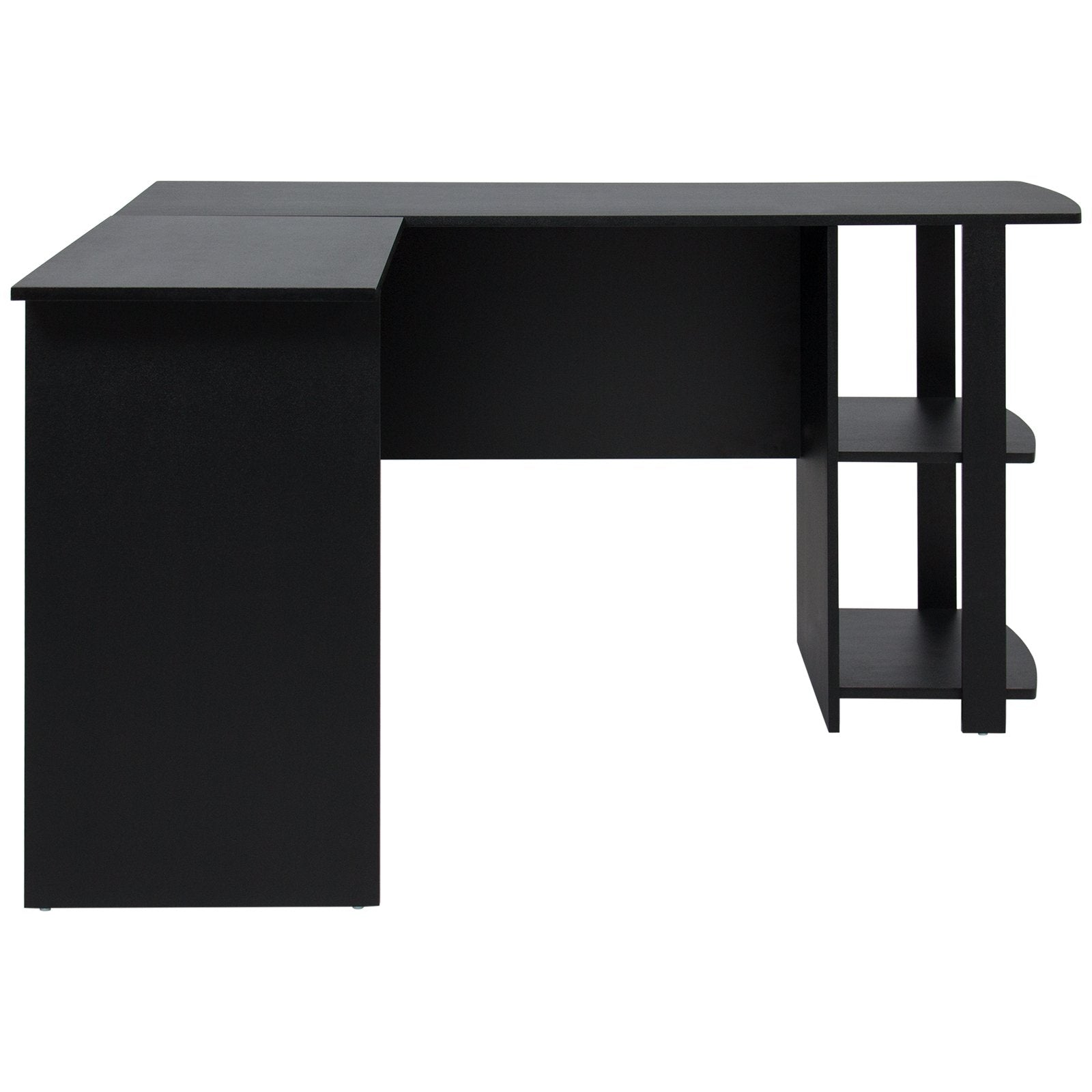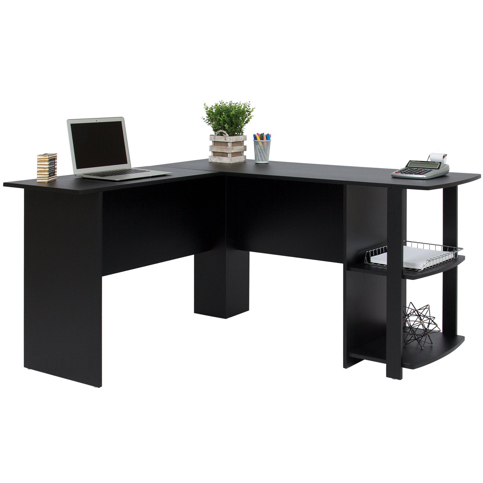 Space-saving and functional desk features an L-shaped design, providing plenty of work space