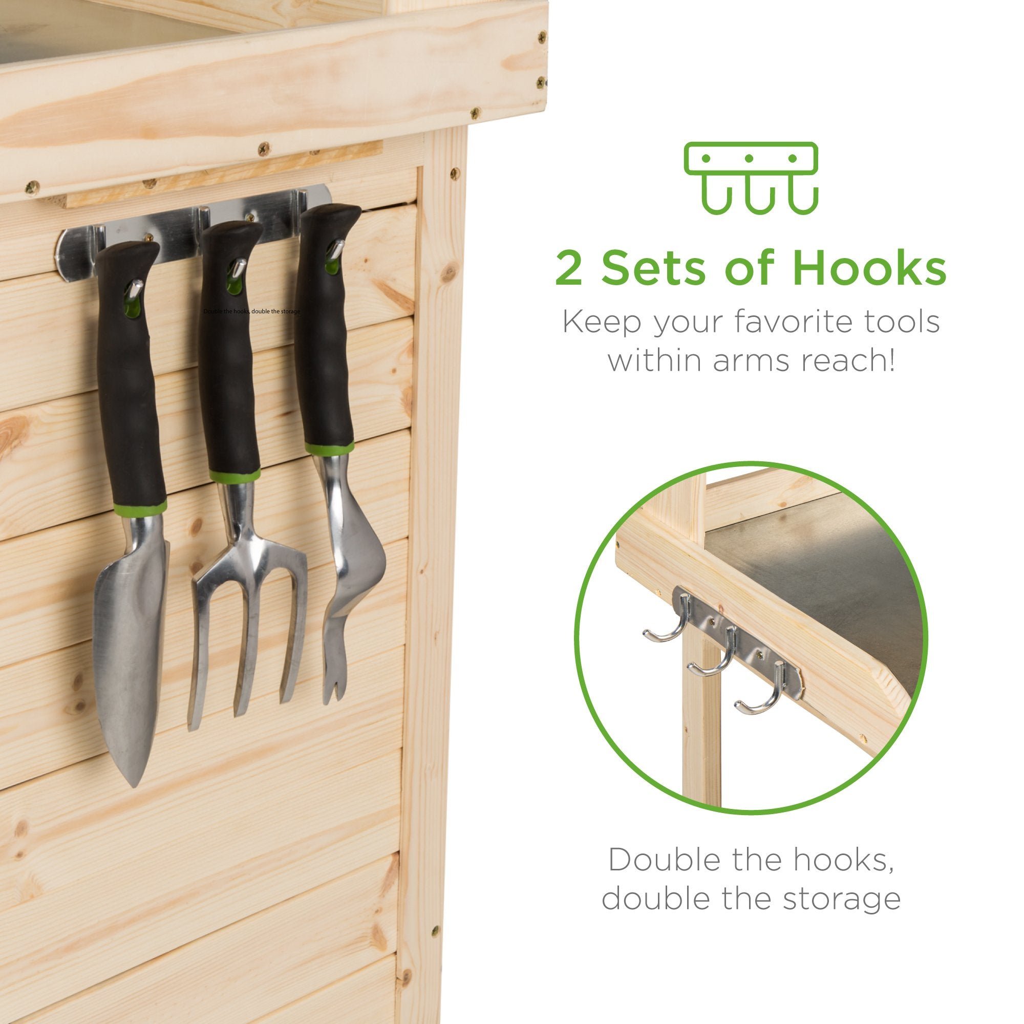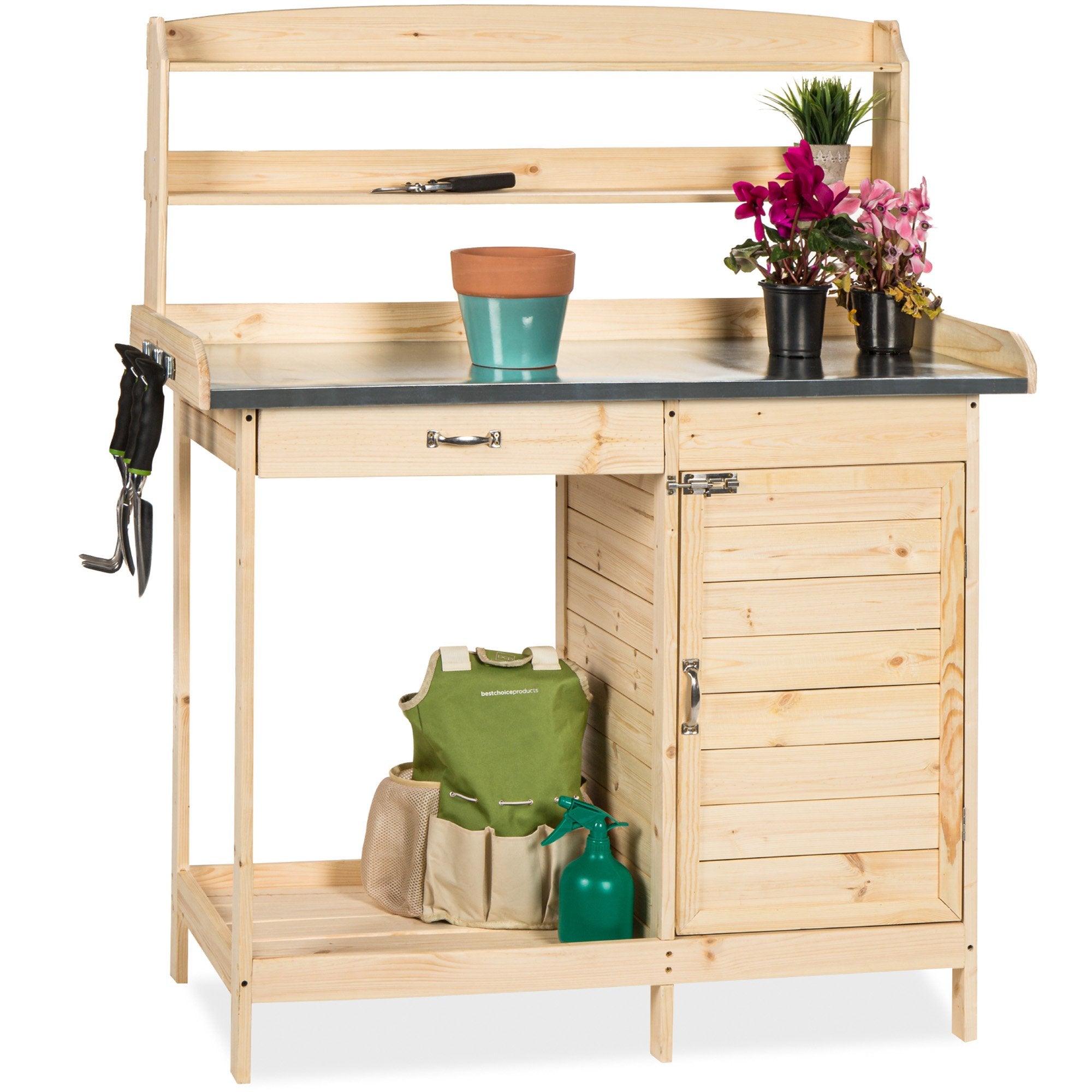 Garden Wooden Potting Bench w/ Metal Tabletop - Natural