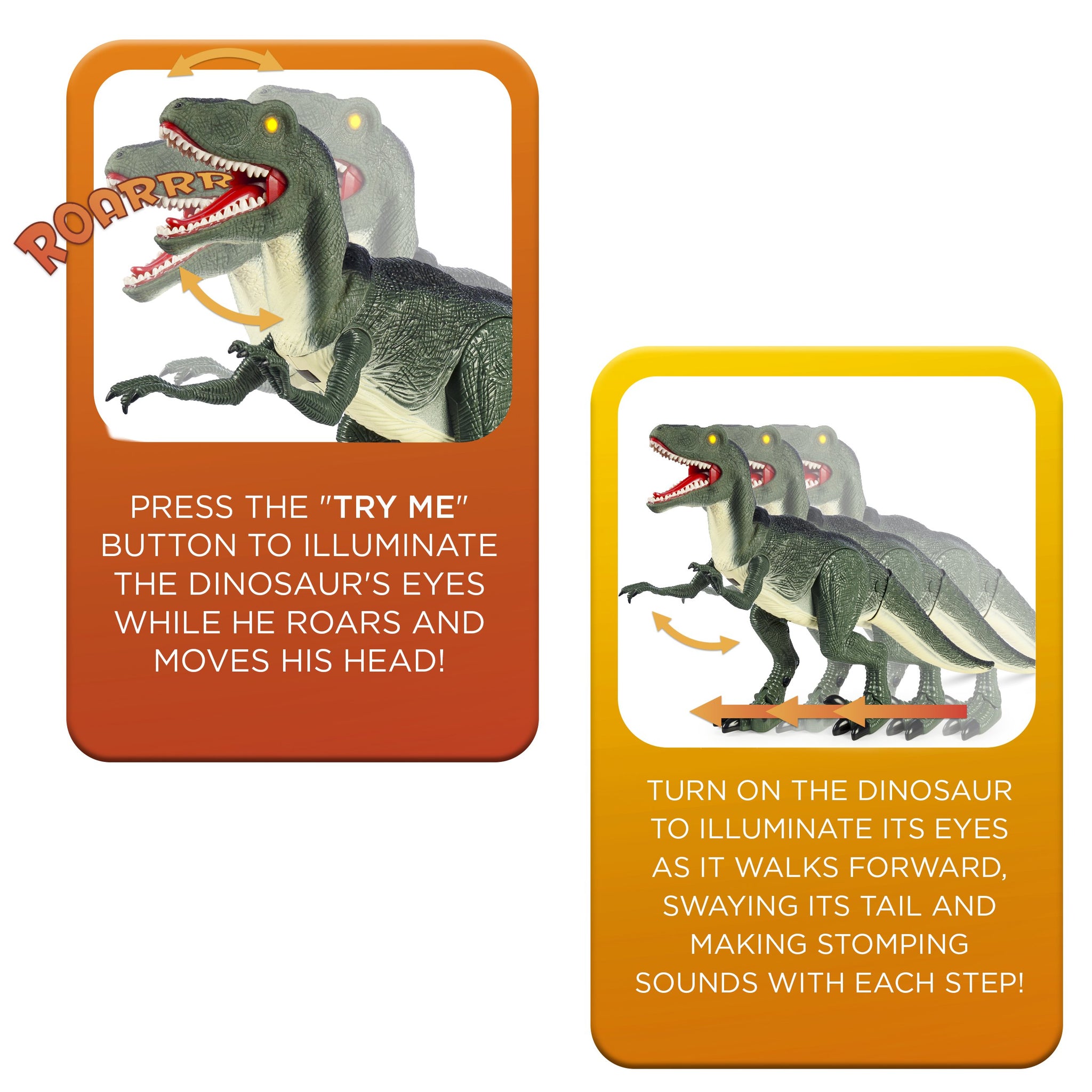 EXCITING EXPERIENCE: Light-up eyes, ferocious roaring sounds, and daunting stomping noises allow the dinosaur to come to life and engage children