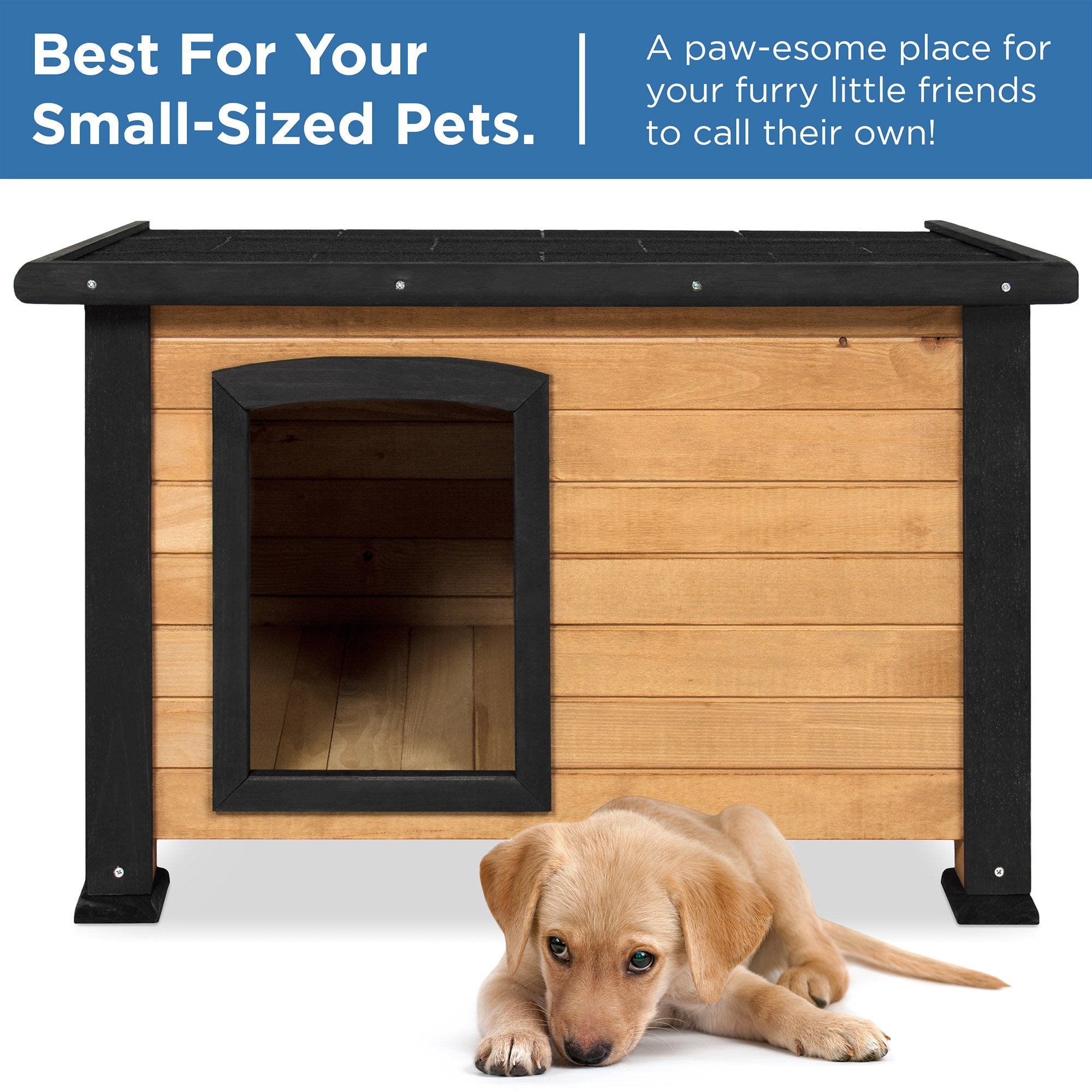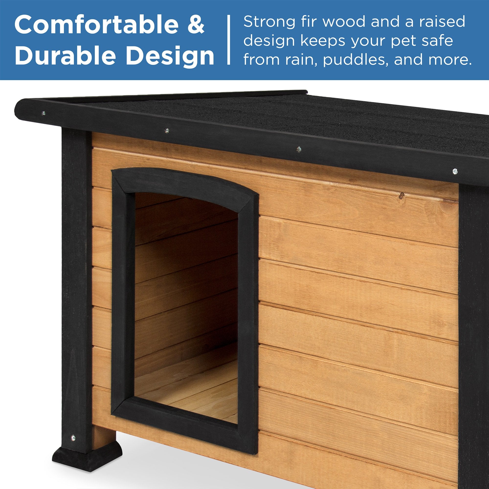 DURABLE CONSTRUCTION: A lasting gift for your little pooch, made weather- and water-resistant with solid fir wood and an asphalt shingle roof