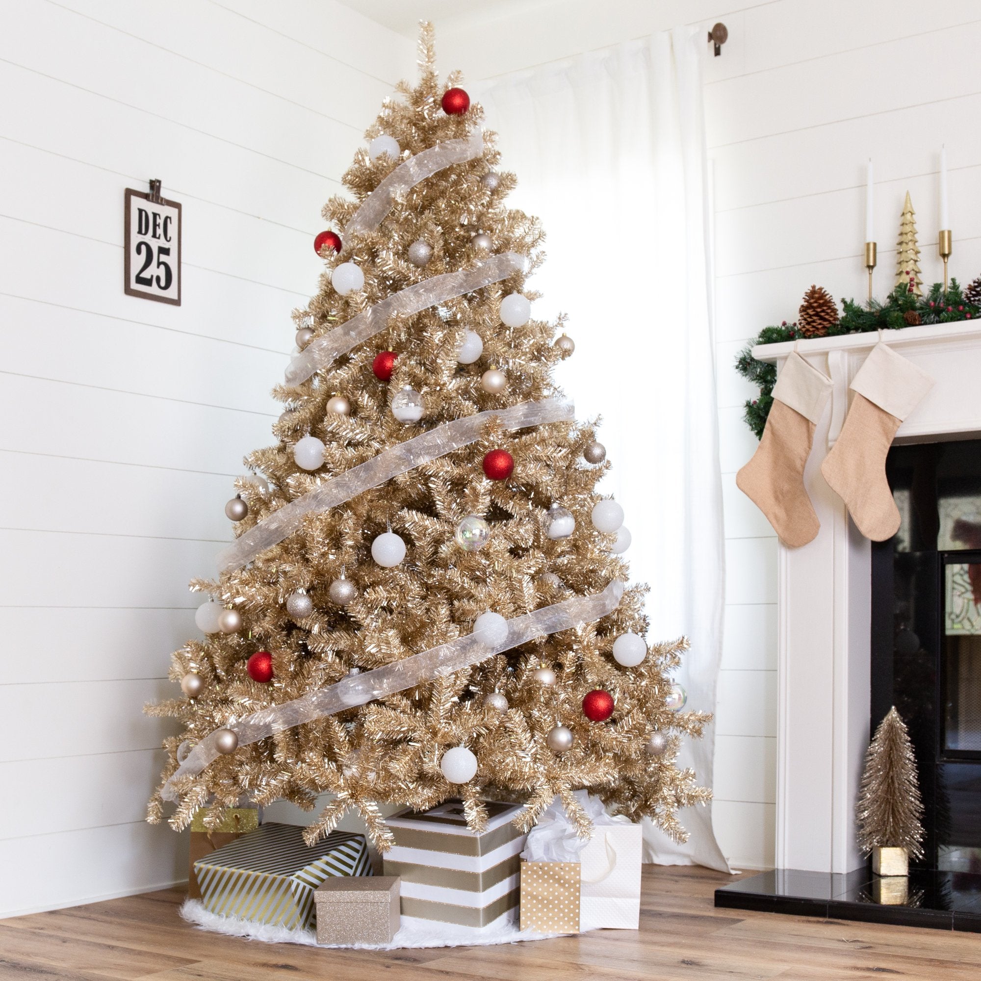 UNIQUE CHAMPAGNE TREE: Guaranteed to be an immediate eye-catcher in any setting, with a shiny tinsel champagne design that breaks free from the traditional tree